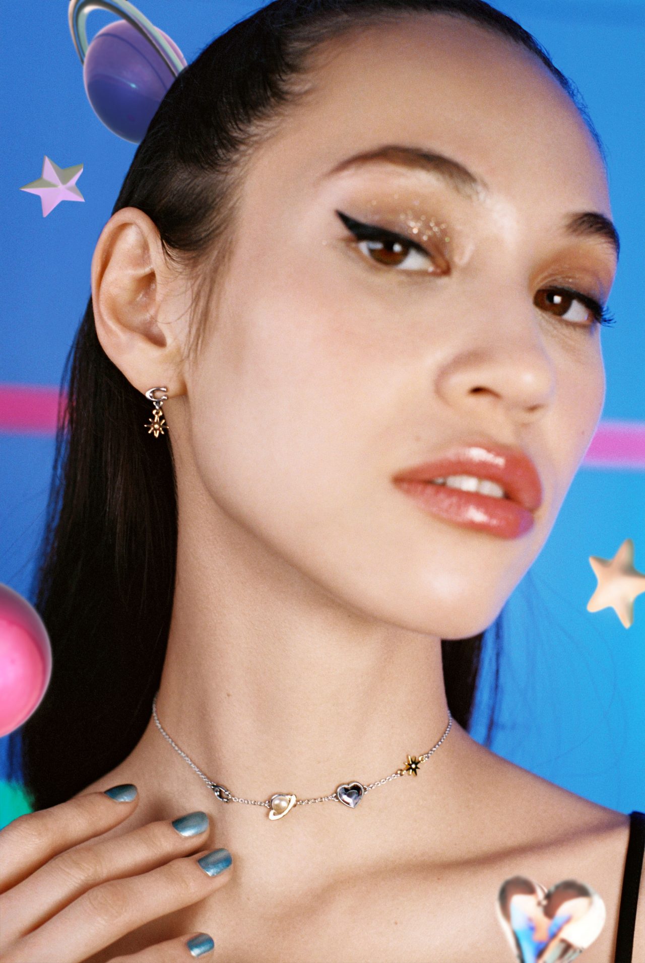 Coach のクリエイティブ・ディレクター Stuart Vevers (スチュアート・ヴィヴァース) とタッグを組み水原希子がデザインしたのは、ジャケットやスリップドレス、Tシャツといったレディ トゥ ウェアをはじめ、バッグ、フットウェア、スモールレザーグッズなど。水原希子らしい宇宙やスピリチュアルなモチーフにインスパイアされ、カラフルなリベットや空想上のバタフライモチーフなど個性的なディテールが多数お目見えした。