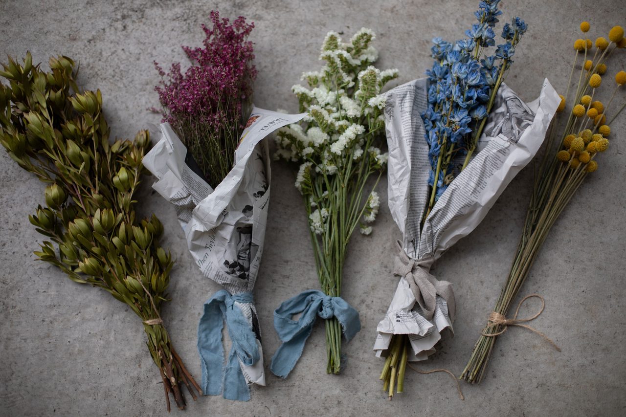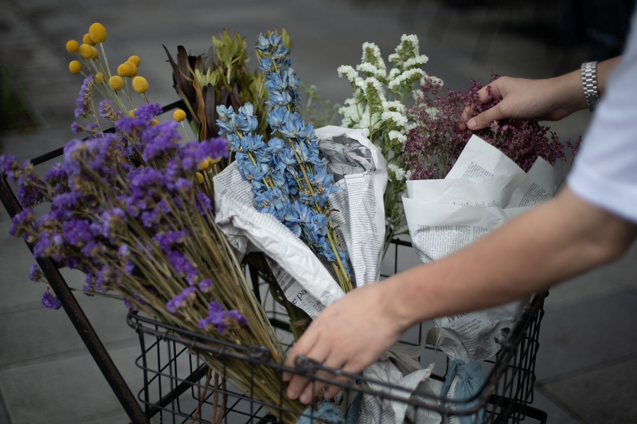 本イベントでは、TRUNK(LOUNGE) 内のインスタレーションで使用したドライフラワーを販売。通常では破棄されてしまう花を自宅用にもギフトにもぴったりな花束へ生まれ変わらせる。
