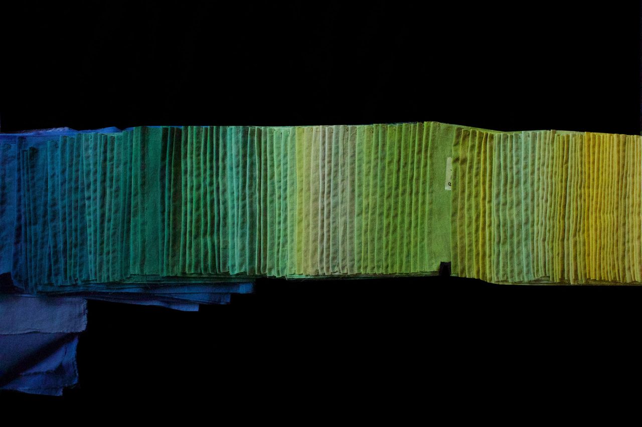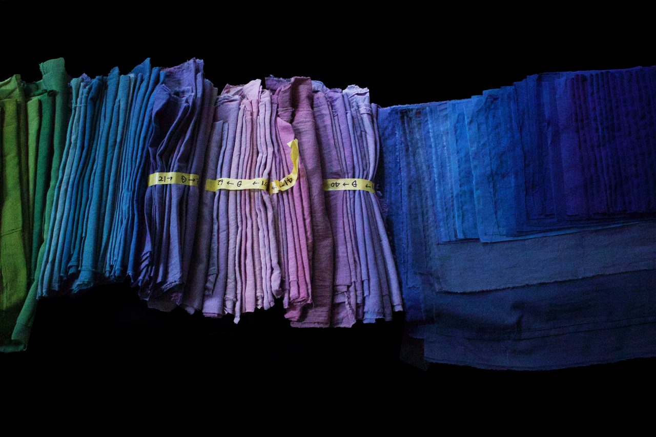 TRUNK(HOTEL) のラウンジスペースとなる TRUNK(LOUNGE) では、季節ごとにアートワークを変更している。今シーズンは沖縄県北部のヤンバルに拠点を置く植物染色作家 kitta をパートナーに迎え、染色した布を用いて、自然から抽出した色と色の連続性を表現したインスタレーションを展示する。