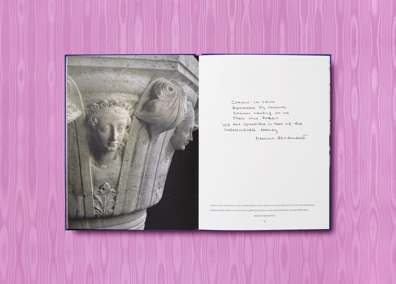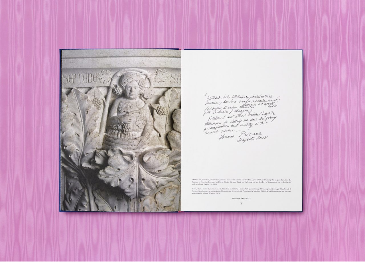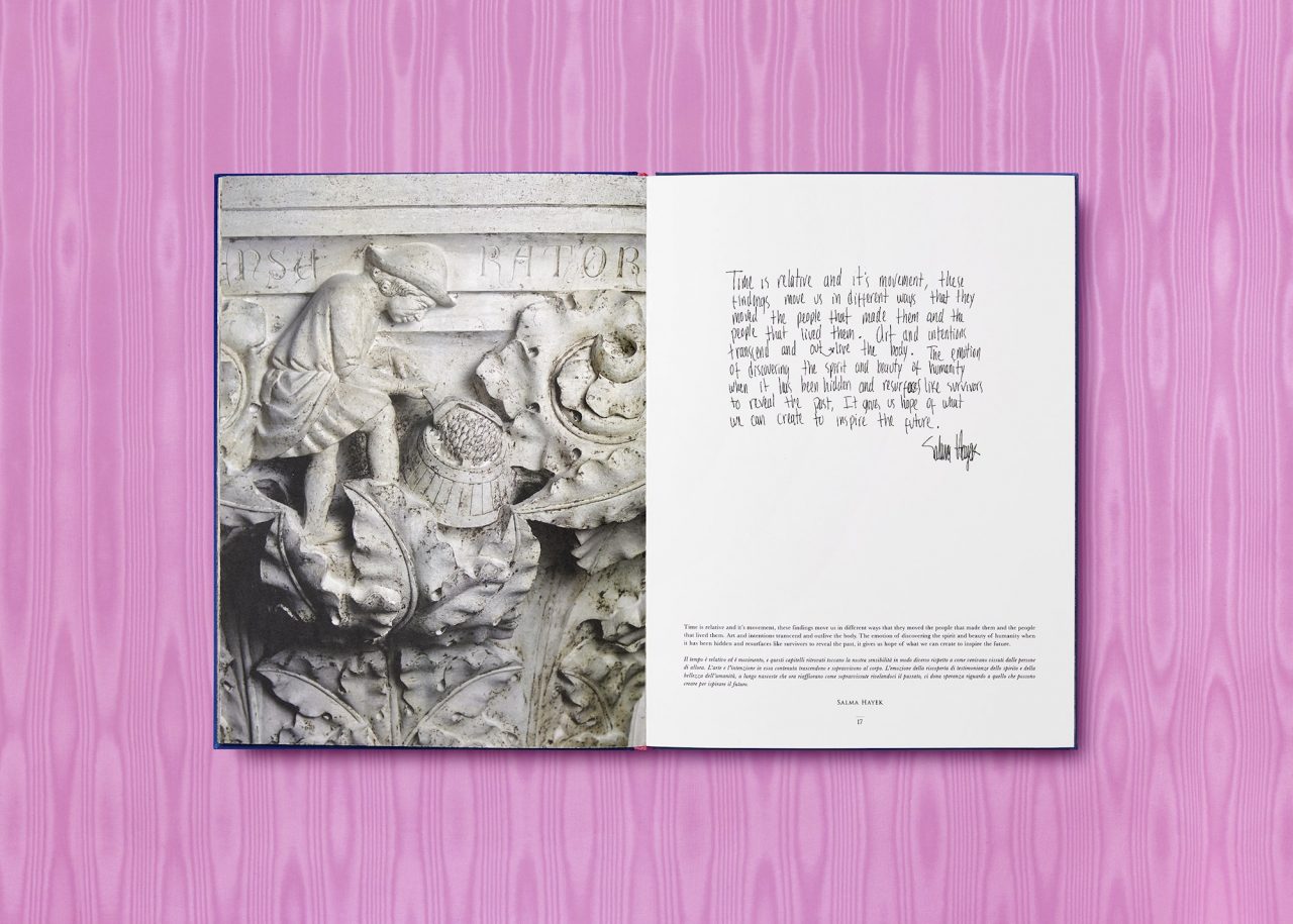 ヴィクトリア期を代表する美術評論家である John Ruskin (ジョン・ラスキン) がかつて「冷酷な支配と忍耐強い心によって、自然の過酷さと人間の激しい感情を克服しつつ刻まれた」と評した柱頭は、1世紀以上の時を経て映画監督の Pierluigi Martini (ピエル・ルイジ・ピッツィ) によって再拝見され、Marina Cicogna に引き継がれたことが本プロジェクトの発端。Marina Cicogna が CameraphotoArt (カメラフォトアート) のアーカイブから選んだ写真と彼女自身が撮影した写真が収録され、Marina Abramovic (マリーナ・アブラモヴィッチ) や Diane von Fürstenberg (ダイアン・フォン・ファステンバーグ)、Salma Hayek (サルマ・ハエック)、Martin Parr (マーティン・パー)、そして Valentino (ヴァレンティノ) といった世界の著名人が寄稿している。