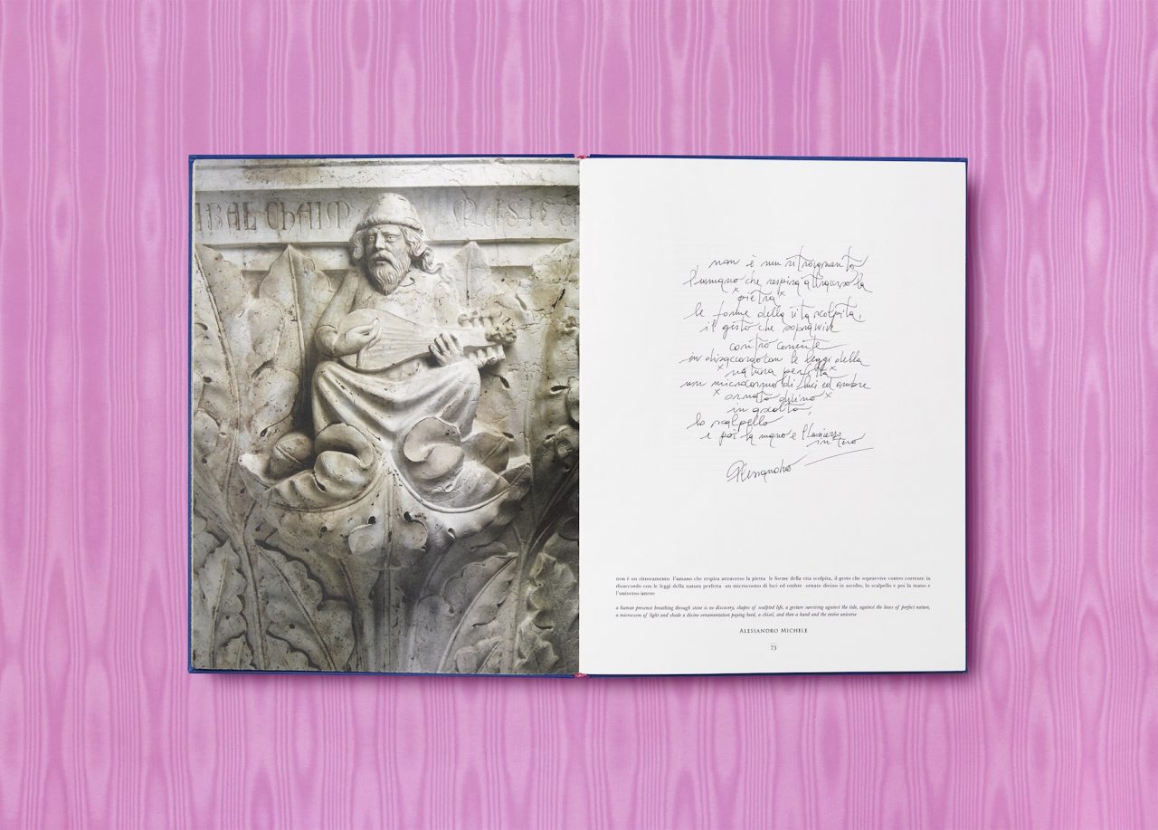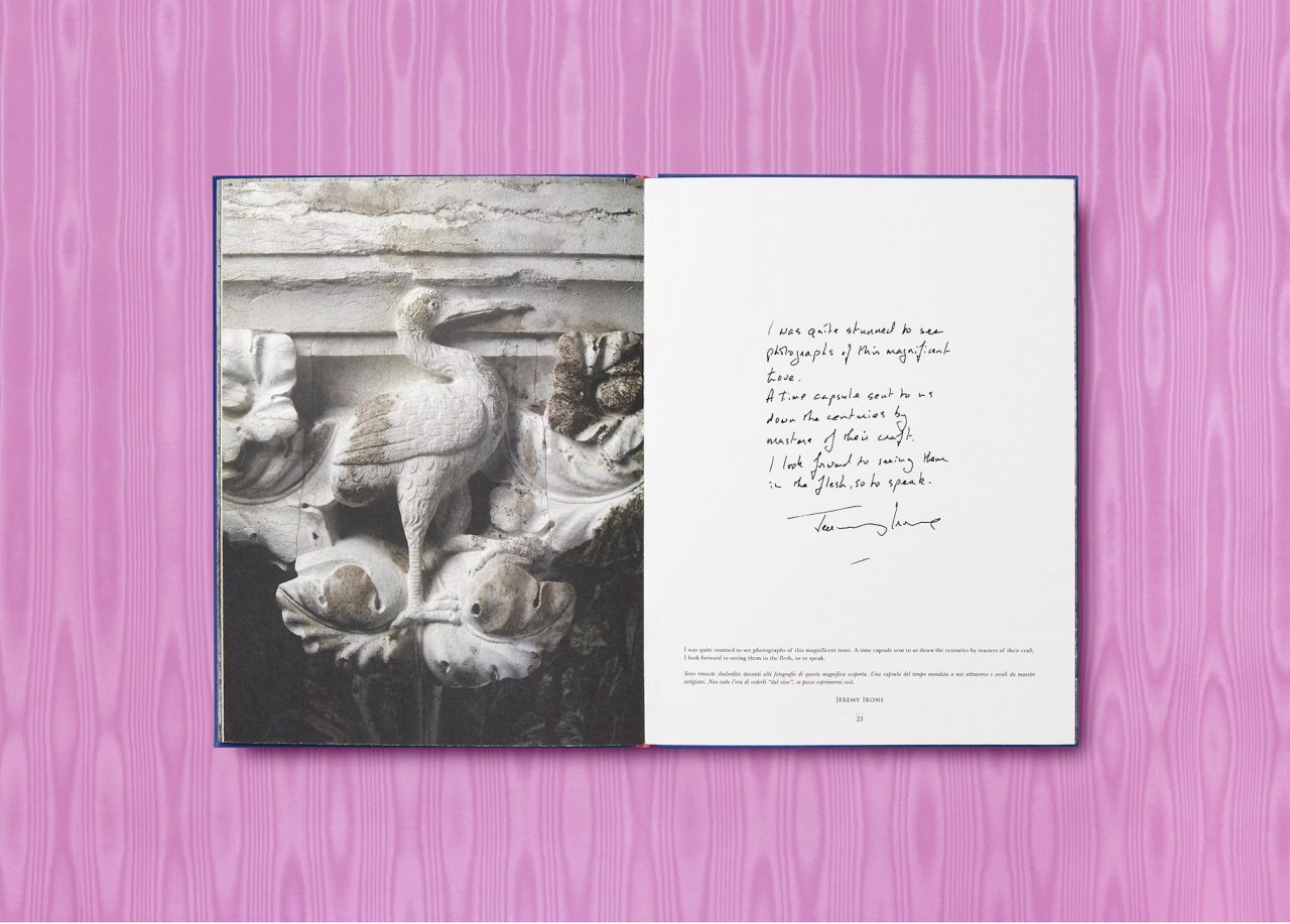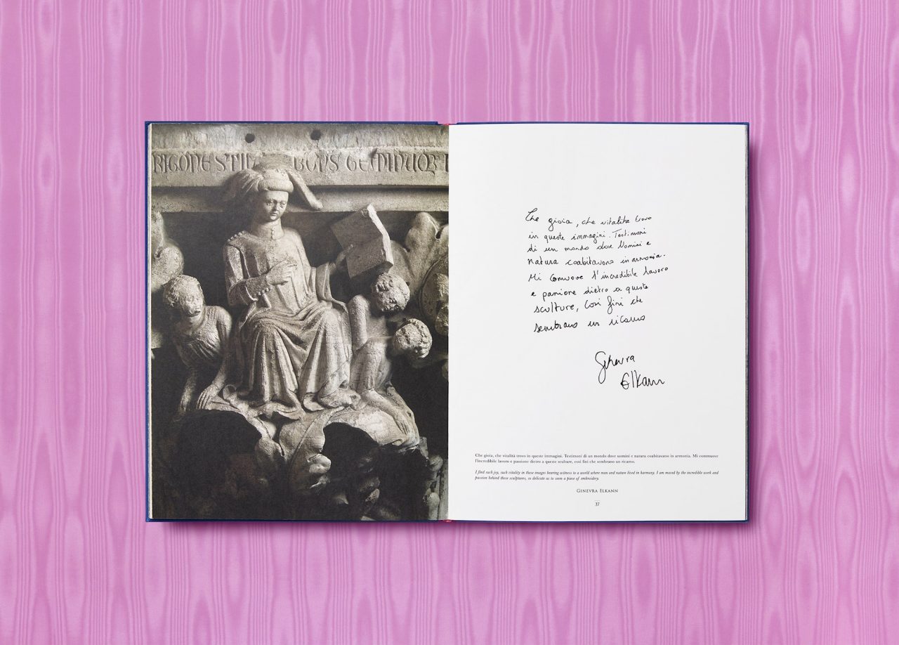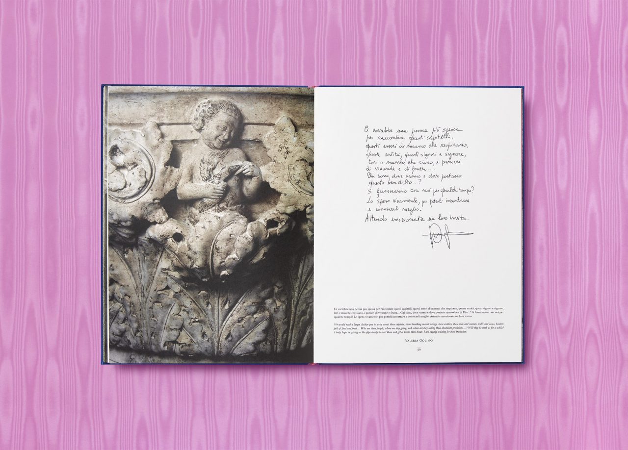 ヴィクトリア期を代表する美術評論家である John Ruskin (ジョン・ラスキン) がかつて「冷酷な支配と忍耐強い心によって、自然の過酷さと人間の激しい感情を克服しつつ刻まれた」と評した柱頭は、1世紀以上の時を経て映画監督の Pierluigi Martini (ピエル・ルイジ・ピッツィ) によって再拝見され、Marina Cicogna に引き継がれたことが本プロジェクトの発端。Marina Cicogna が CameraphotoArt (カメラフォトアート) のアーカイブから選んだ写真と彼女自身が撮影した写真が収録され、Marina Abramovic (マリーナ・アブラモヴィッチ) や Diane von Fürstenberg (ダイアン・フォン・ファステンバーグ)、Salma Hayek (サルマ・ハエック)、Martin Parr (マーティン・パー)、そして Valentino (ヴァレンティノ) といった世界の著名人が寄稿している。
