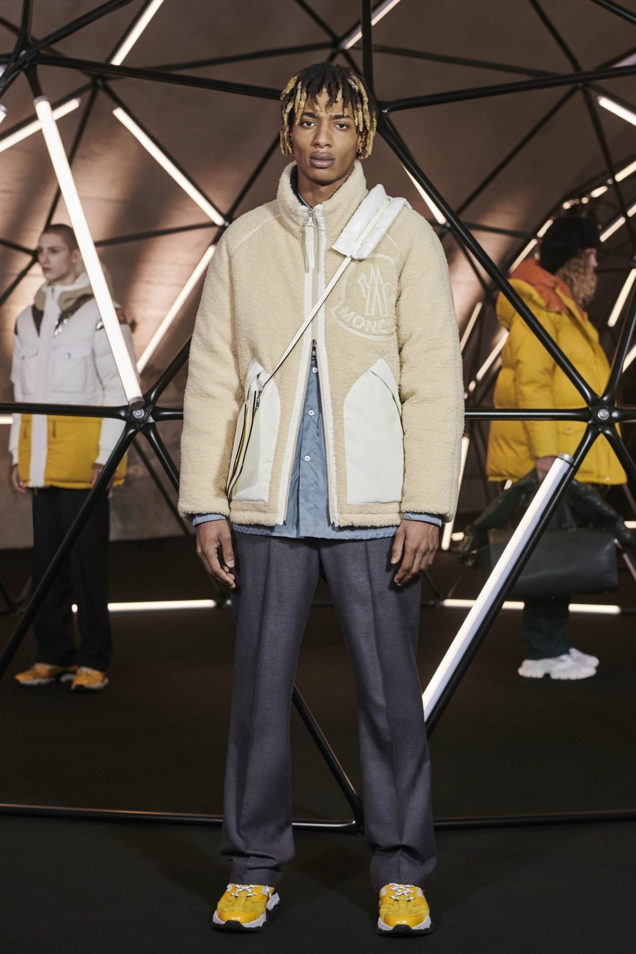 今回、Sergio Zambon はユースカルチャーに根付いた MONCLER のヘリテージを再解釈し、リラックスしたスピリットをメンズコレクションで表現。21世紀のクールなクライマーをイメージし、ボリュームのあるパーカーやジップアップブルゾンを中心にタイダイ柄やヒッピーなフリンジなどのディテールでアクセントを効かせている。