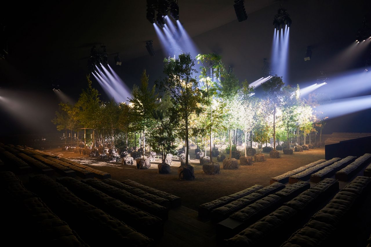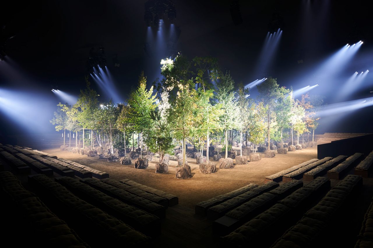 今シーズンも多くのラグジュアリーブランドがサスティナビリティを意識している。今回、ガーデンを実現したのは環境デザインを手がけるアーティスト集団。コレクションで集められた木々はこの後いくつかの長期プロジェクトに参加するそうだ。