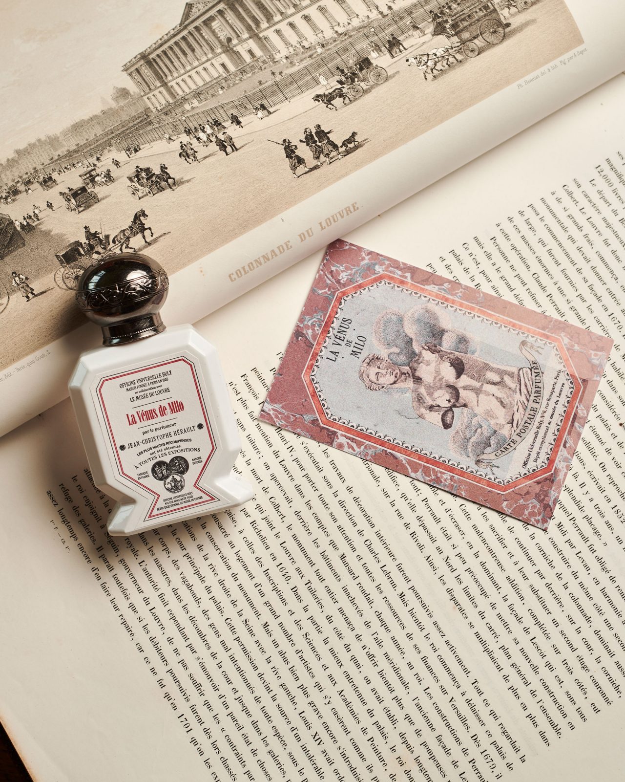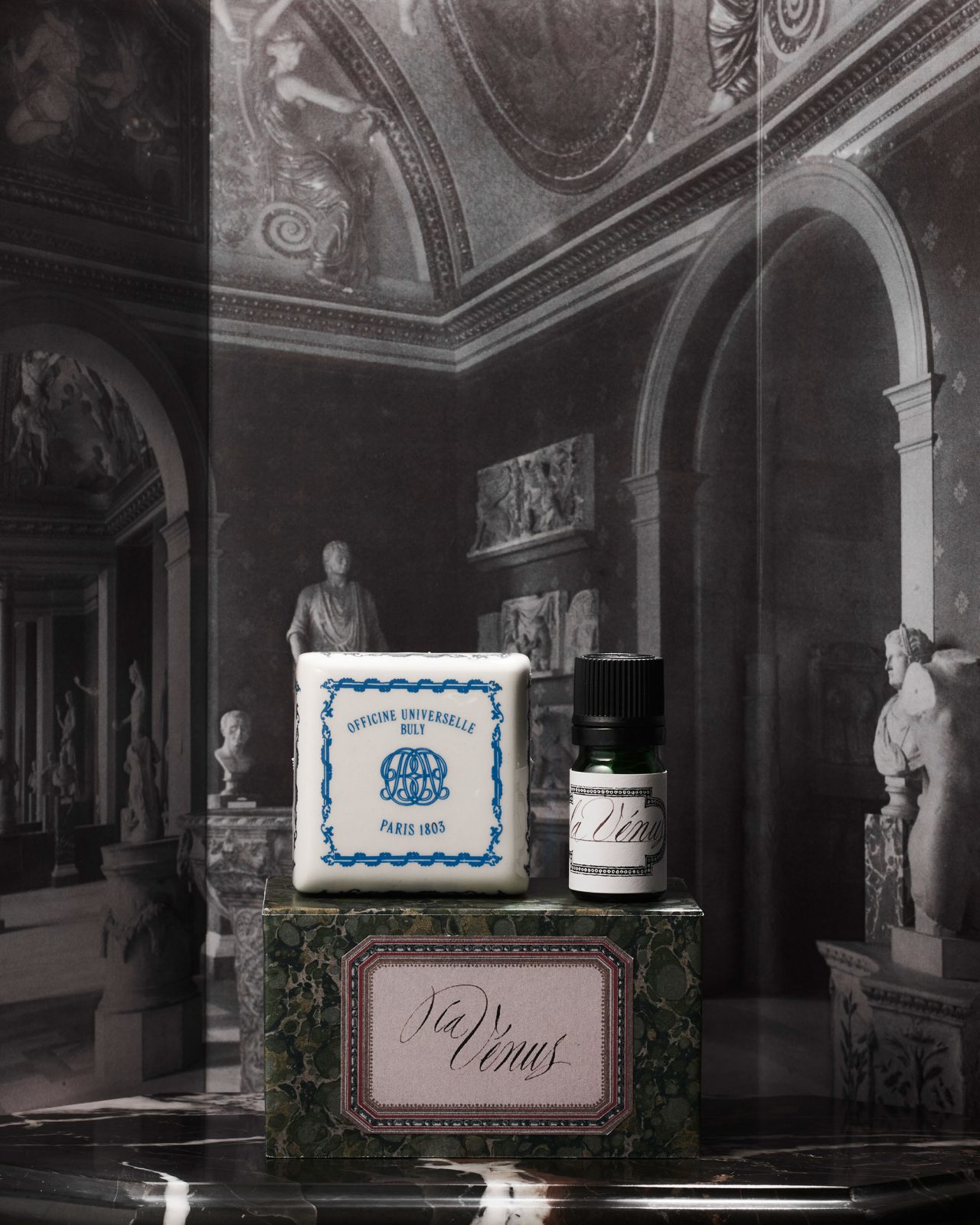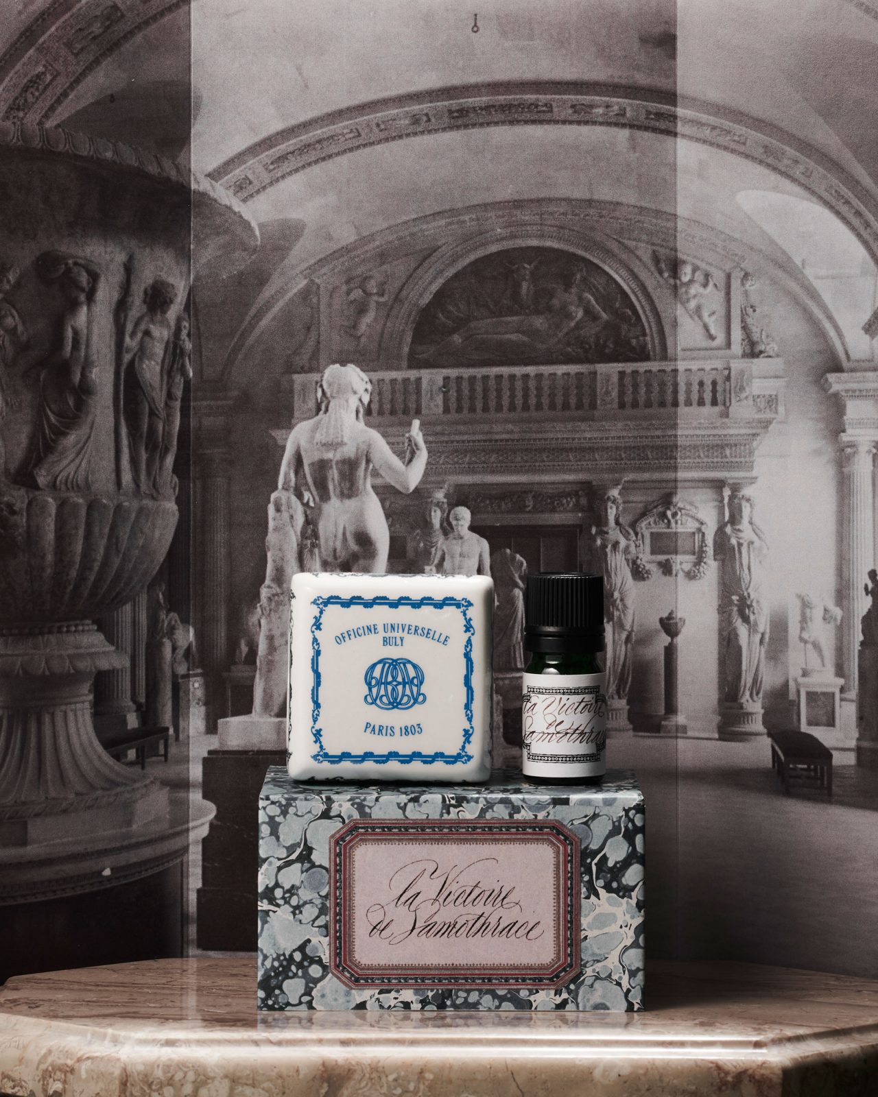 フランス・パリのランドマークであり世界最高峰のルーブル美術館とのこれまでに類をみないコラボレーションとなった本コレクションでは、フランスの著名な調香師たちがルーブル美術館所蔵の代表的な作品にインスパイアされた香りを創作。ルーブル美術館から直々にオファーがあり実現したという本コラボレーションで、OFFICINE UNIVERSELLE BULY が選んだ調香師8人は美術館の休館日である火曜日に所蔵品とゆっくり向き合い、それぞれが”自由”に作品を解釈したという。