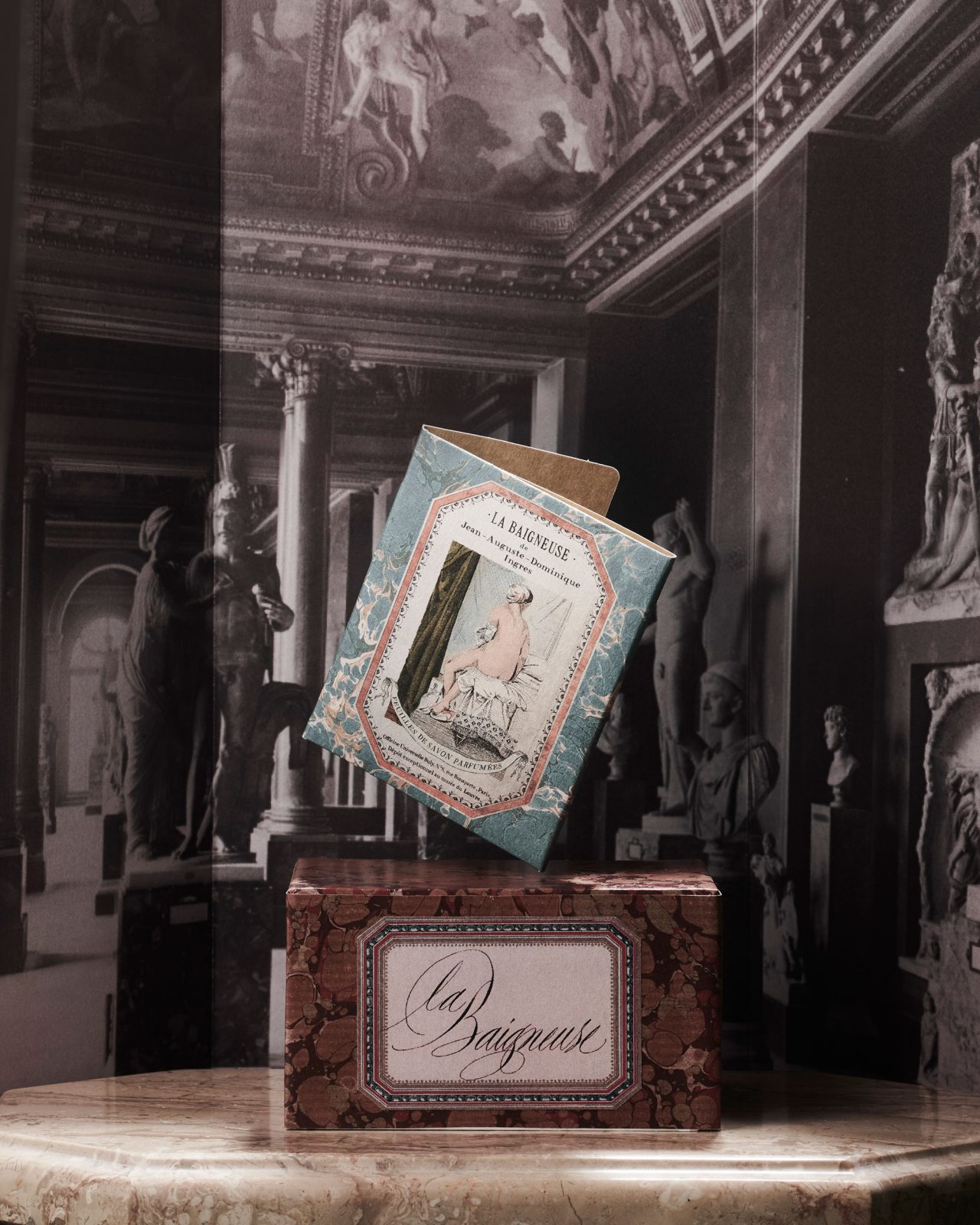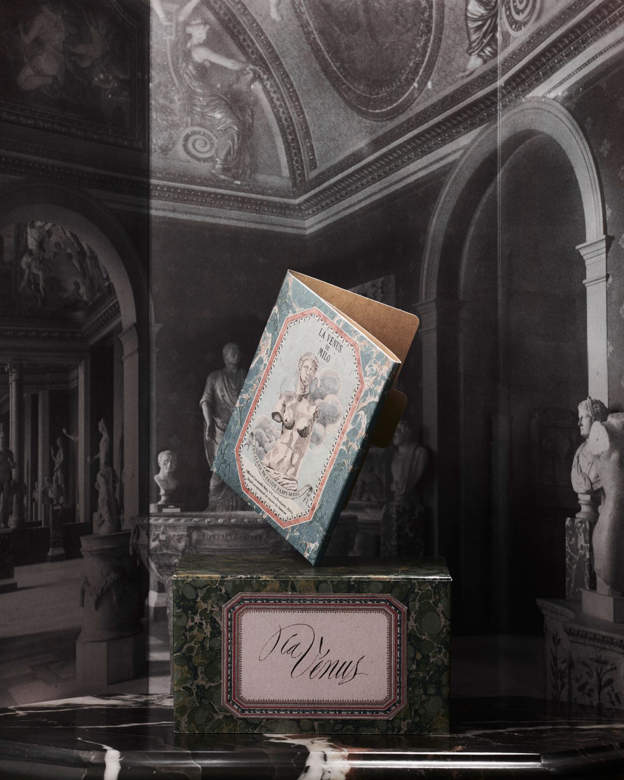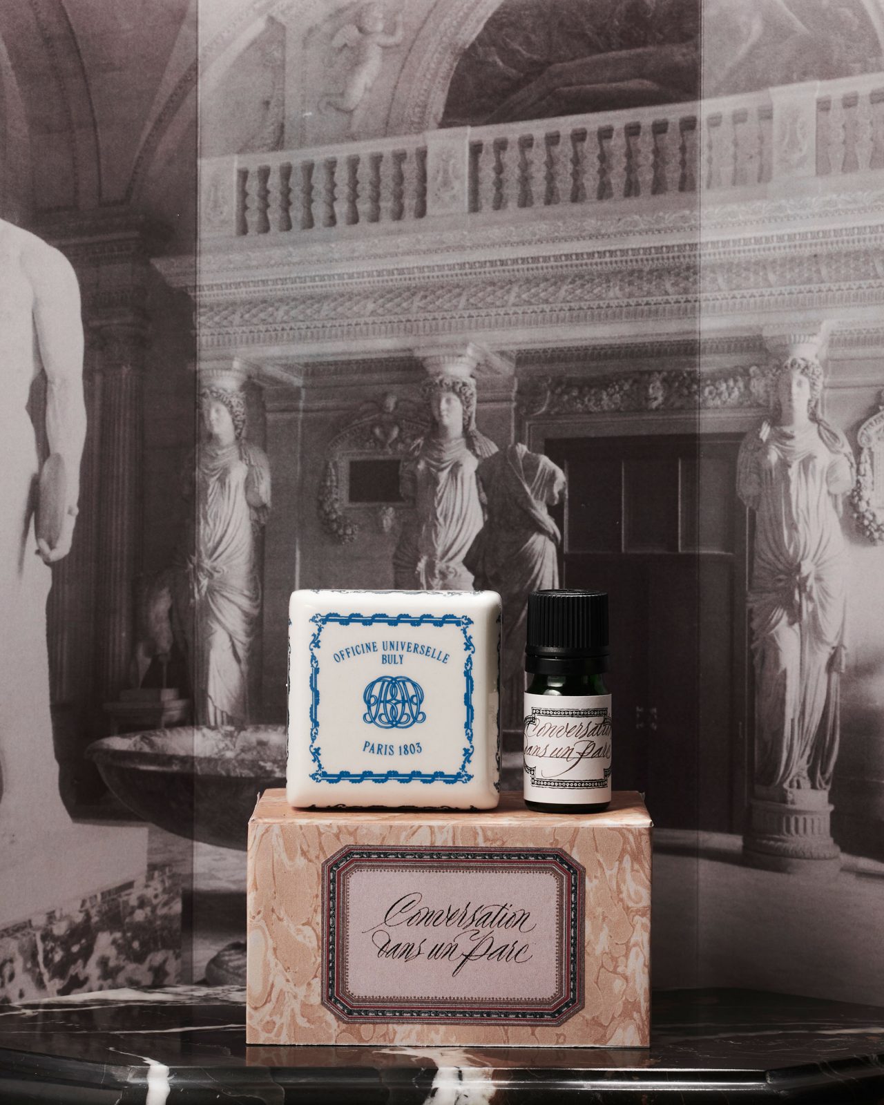 フランス・パリのランドマークであり世界最高峰のルーブル美術館とのこれまでに類をみないコラボレーションとなった本コレクションでは、フランスの著名な調香師たちがルーブル美術館所蔵の代表的な作品にインスパイアされた香りを創作。ルーブル美術館から直々にオファーがあり実現したという本コラボレーションで、OFFICINE UNIVERSELLE BULY が選んだ調香師8人は美術館の休館日である火曜日に所蔵品とゆっくり向き合い、それぞれが”自由”に作品を解釈したという。