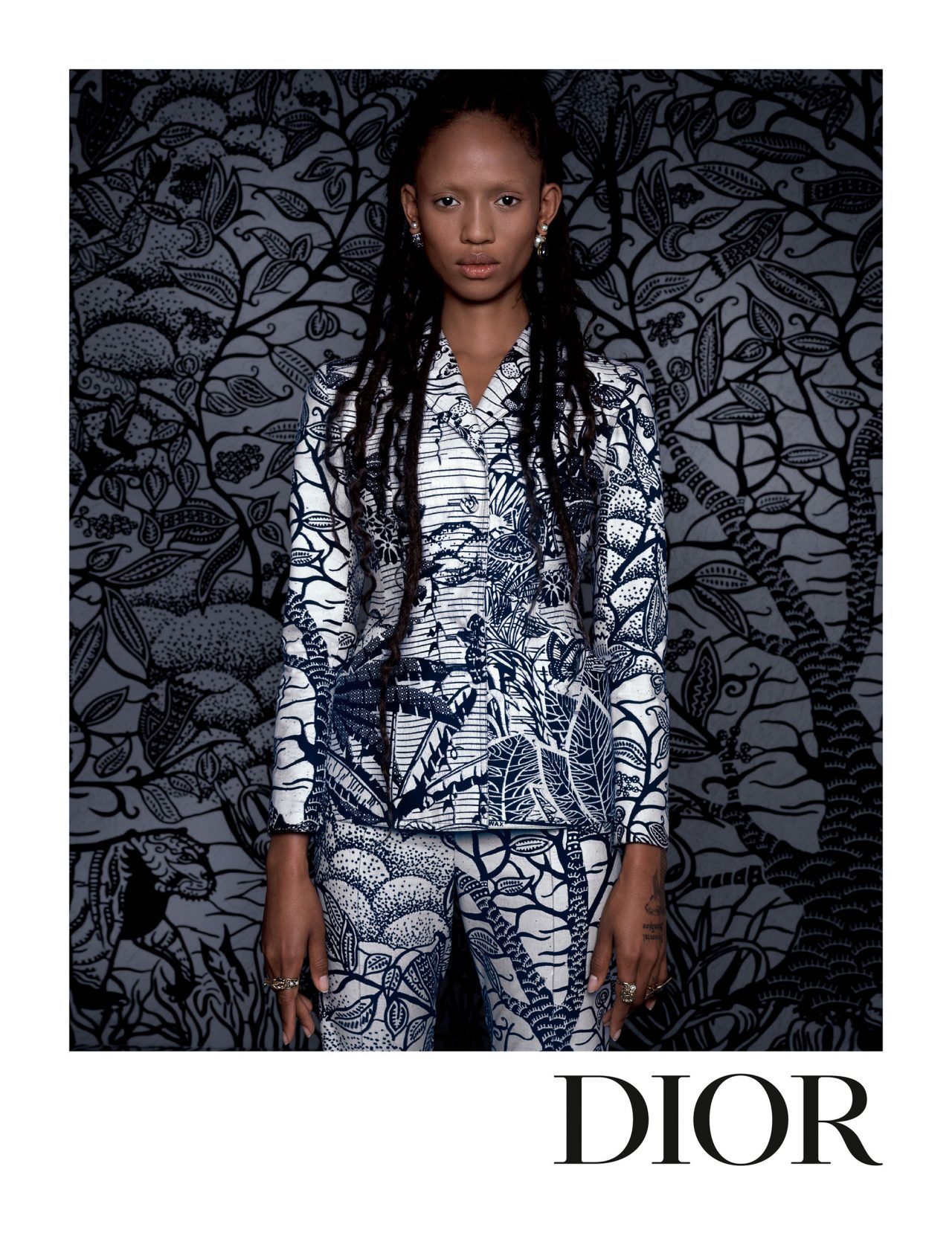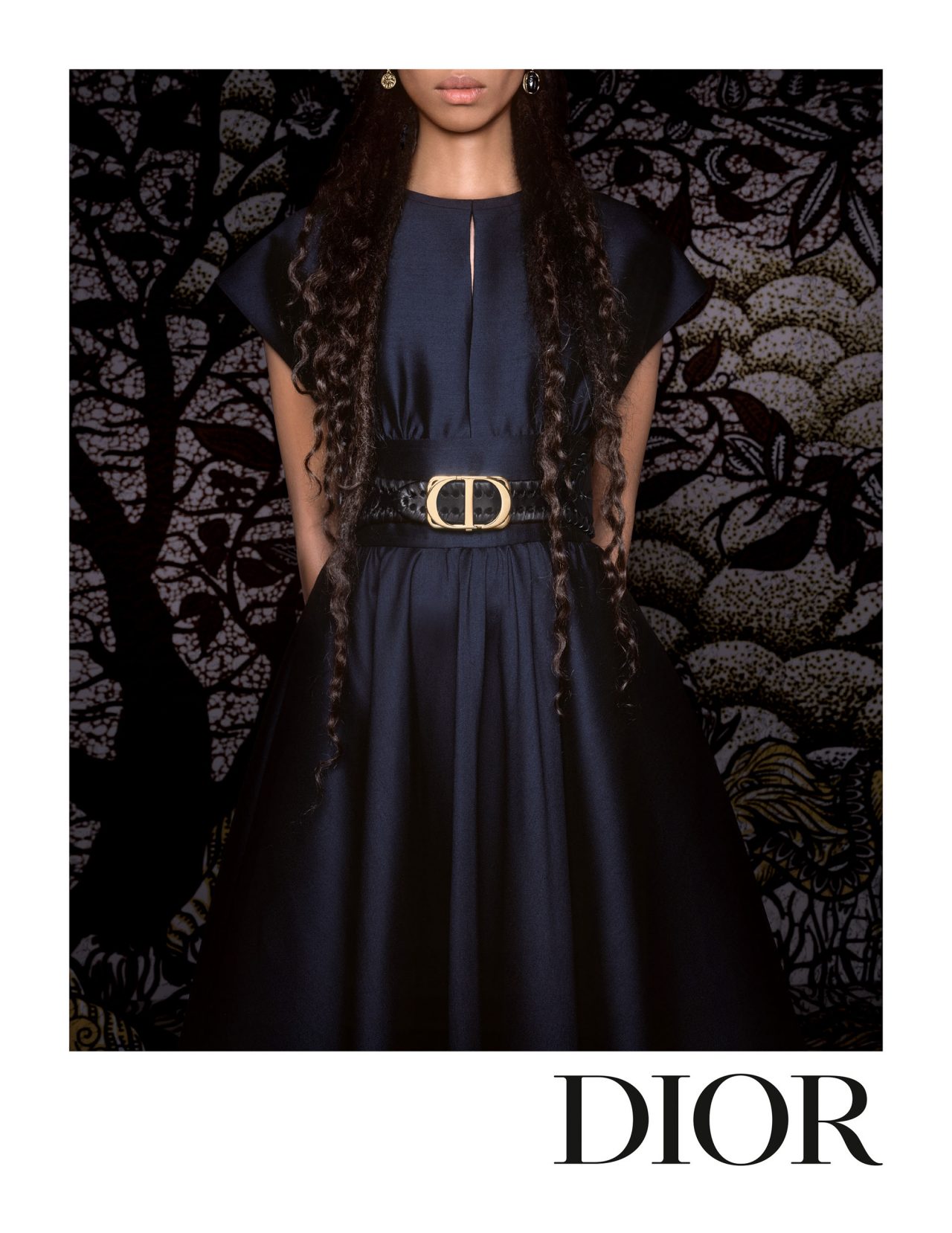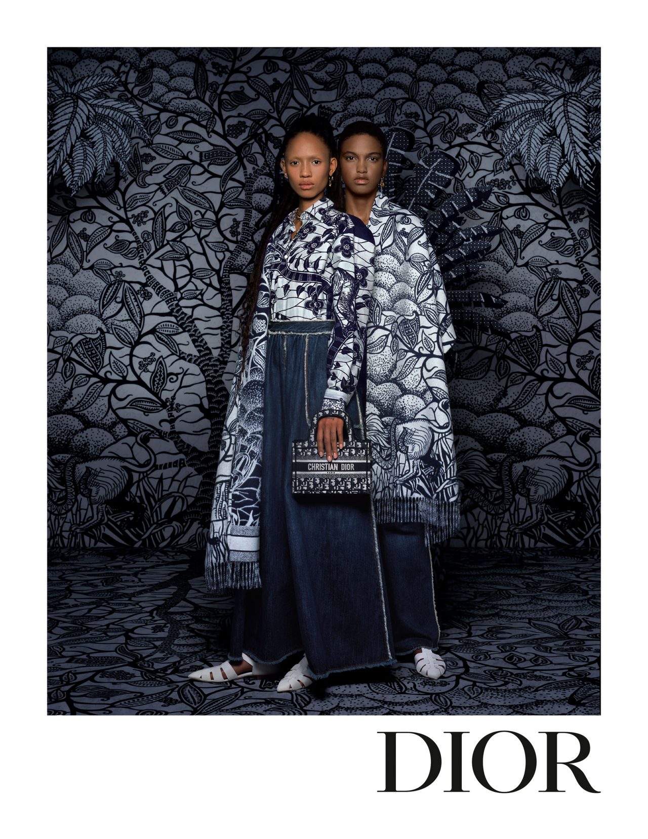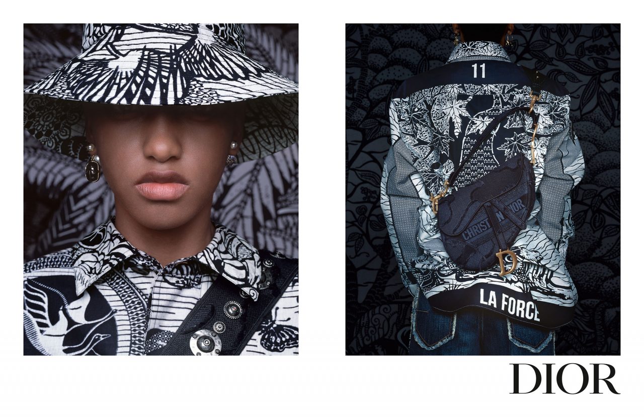 キャンペーンでは、本コレクションで大きな役割を果たしたアフリカンワックスを大々的にフィーチャー。アジア、アフリカと多元的な起源と発展を持つこの生地とメゾンのアイコンである「ディオール オブリーク」や「トワル ドゥ ジュイ」、人気バッグの「サドル」、「ブック トート」、そして「30 モンテーニュ」を見事に融合させている。