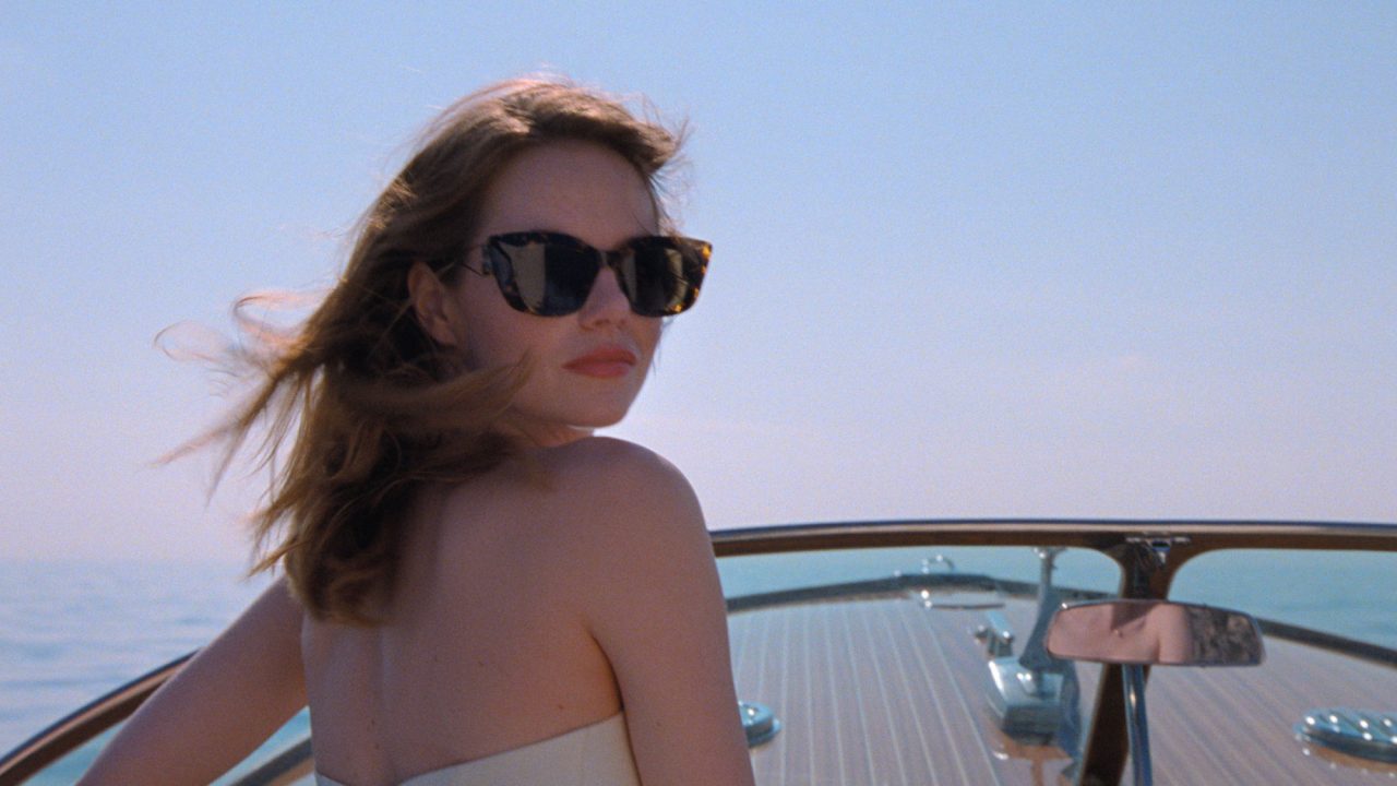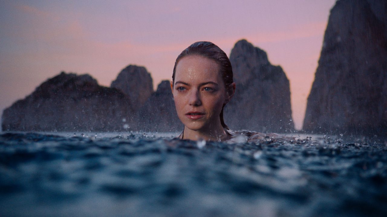 カプリ島のダイナミックな切り立つ崖の上やマラパルテ邸、今回の撮影のために特別に花々が敷き詰められたクール・カレ、まるで夢の中のように美しいロケーションの中で、力強く感情を開放する Emma Stone の姿に思わず惹き込まれるだろう。