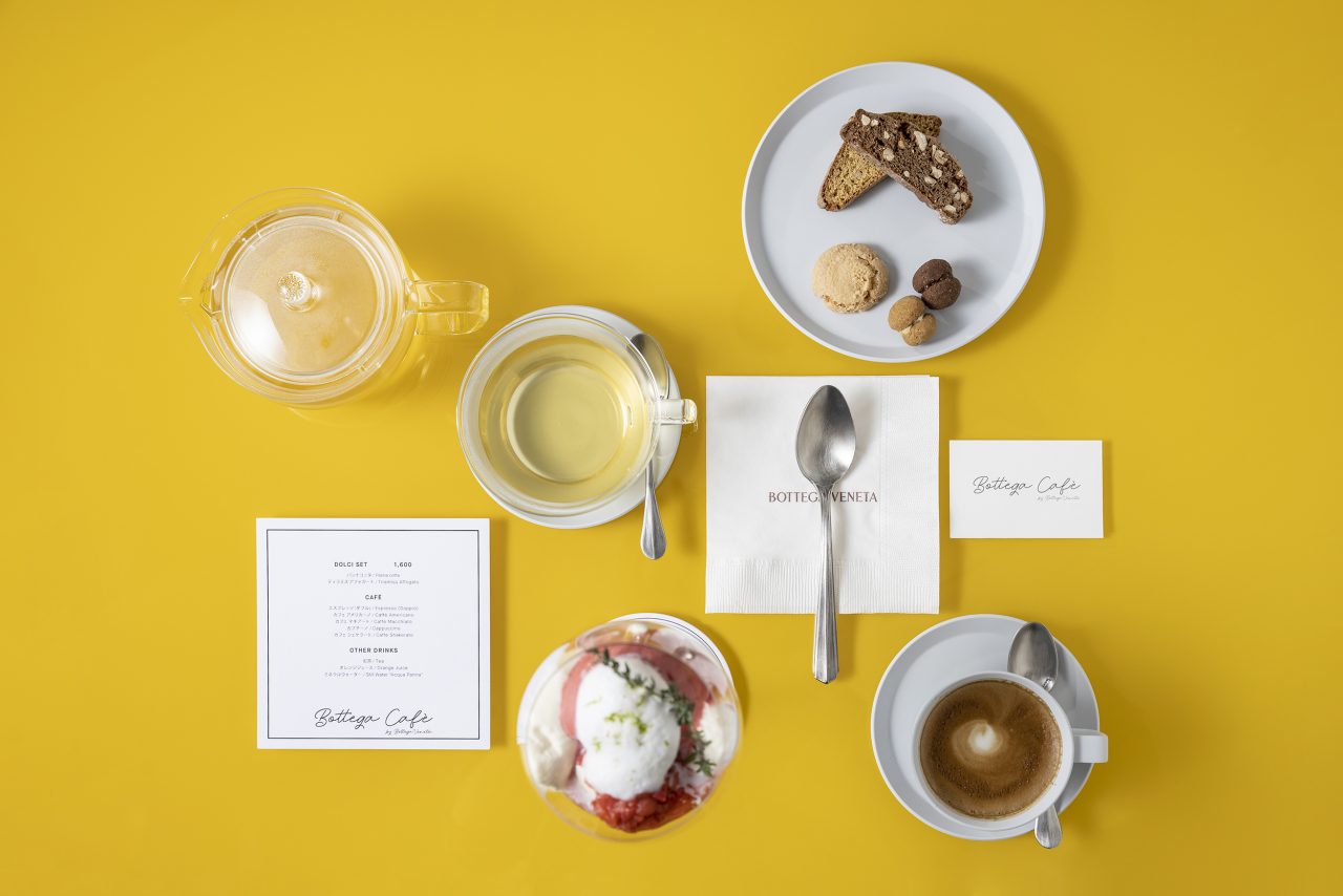 店内ではイタリアの伝統的なカフェメニューのほか、ティラミス アフォガートやパンナコッタなどのドルチェ、ブランド発祥の地であるヴェネト州から取り寄せたワインとアペリティーボにぴったりのスナックを展開する。今なら、ホリデーシーズン限定のドルチェ「苺とピスタチオのトルタ」もおすすめ。伝統に敬意を払いながら、よりモダンにアップデートしてゆく新生 Bottega Veneta の世界観を心ゆくまで堪能することのできる最新スポット、ぜひ一度足を運んでみてほしい。
