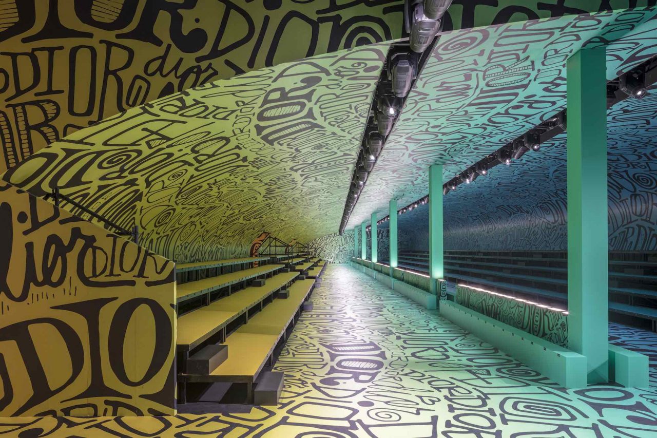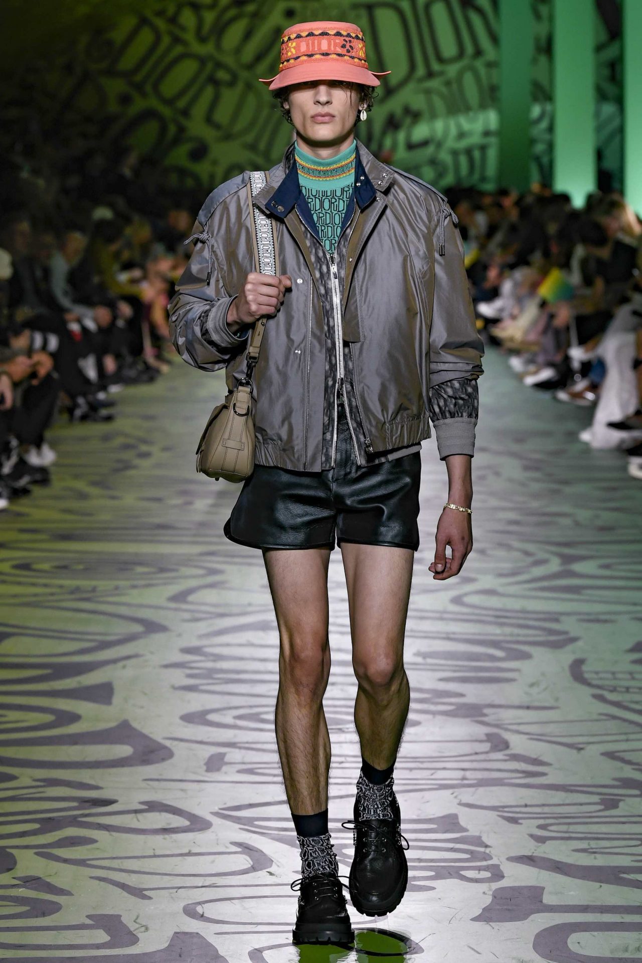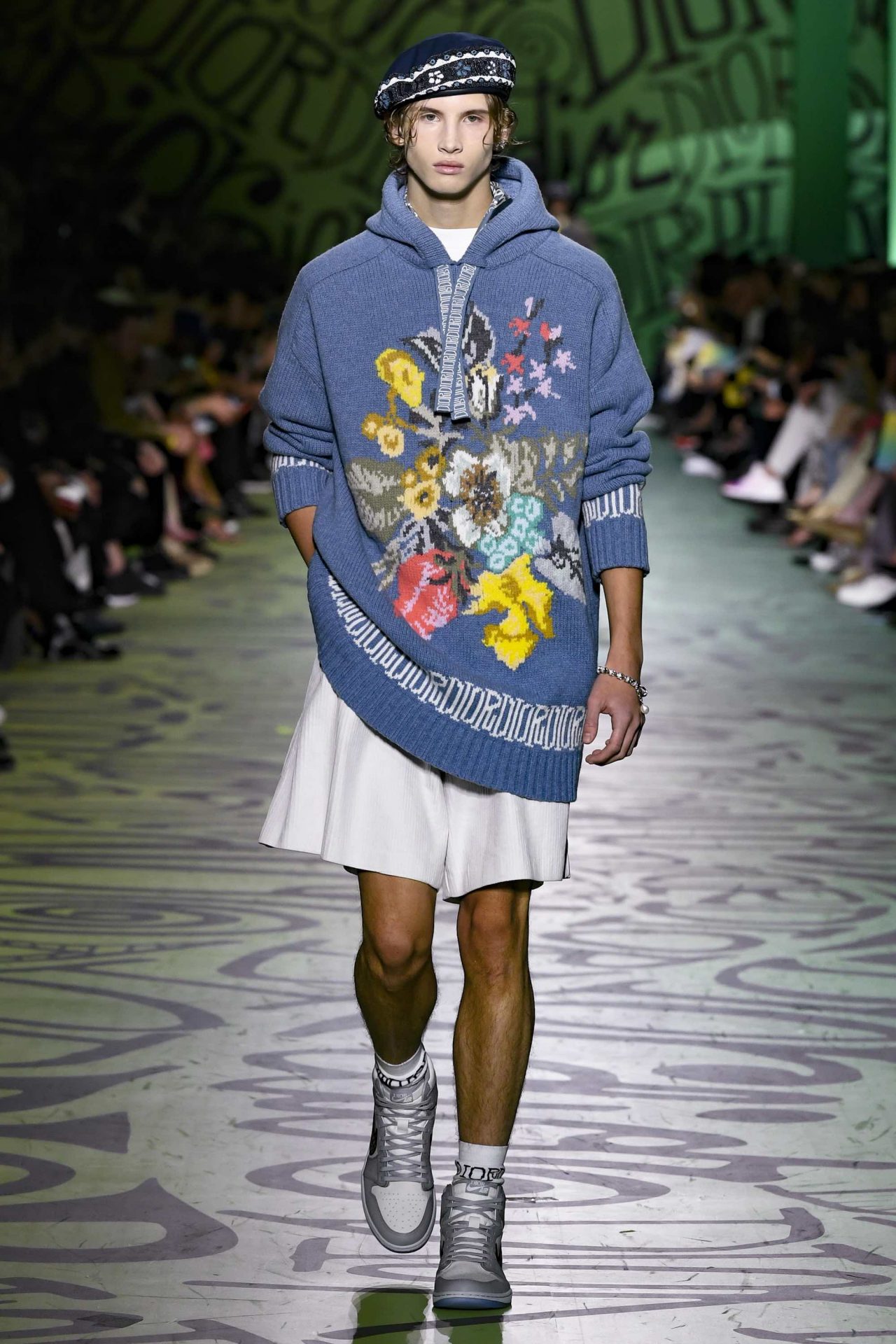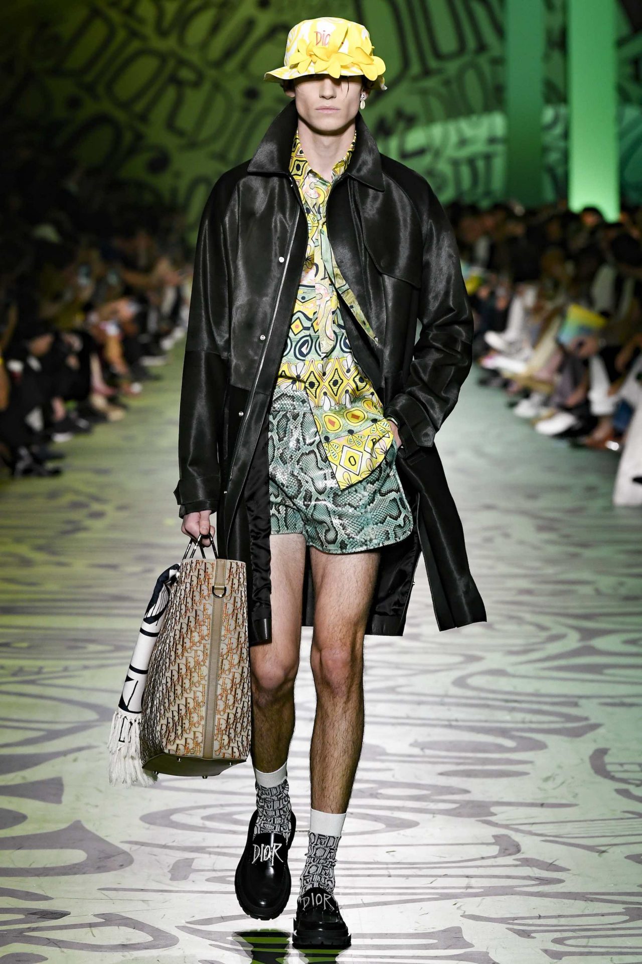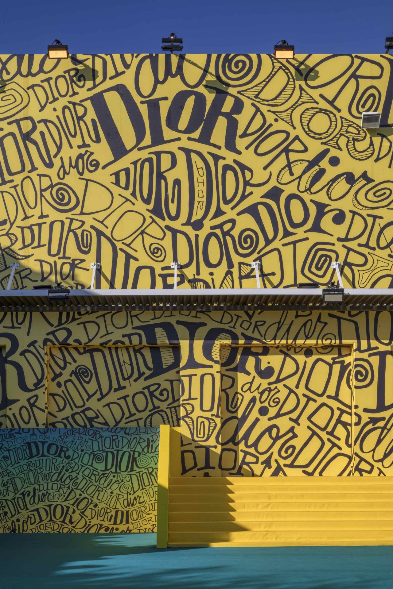 「アート・バーゼル マイアミビーチ」の開幕前夜に開催されたショーはルベルミュージアムを舞台に、没入型のインスタレーションとして考案されたという無数に繰り返される DIOR の文字に包まれた会場で開催。このグラフィティタグのようなプリントは、Stüssy (ステューシー) の創設者でありカウンターカルチャーとサーフィン界を牽引するトップアーティストの Sean Stüssy (ショーン・ステューシー) がデザイン。コレクションにもこのサイケデリックなプリントが様々なアイテムで登場した。