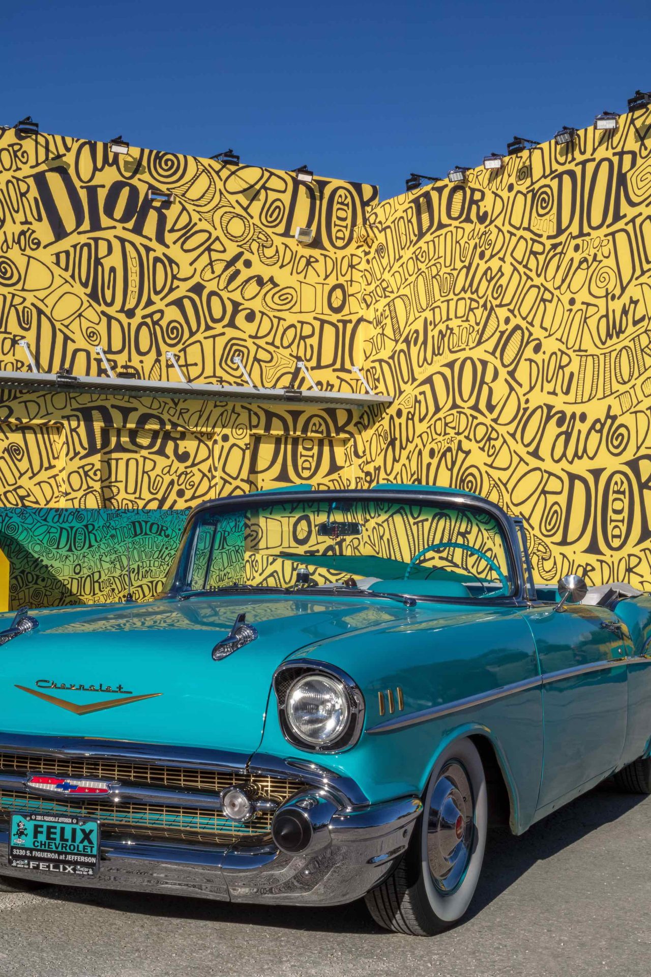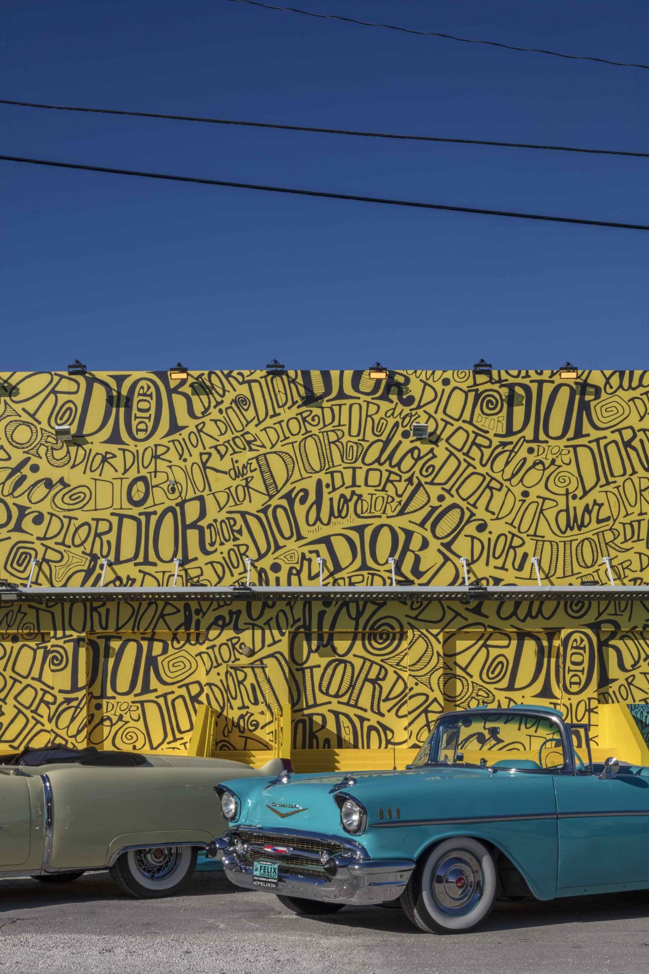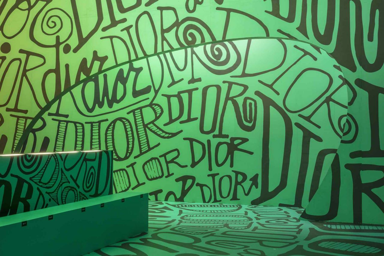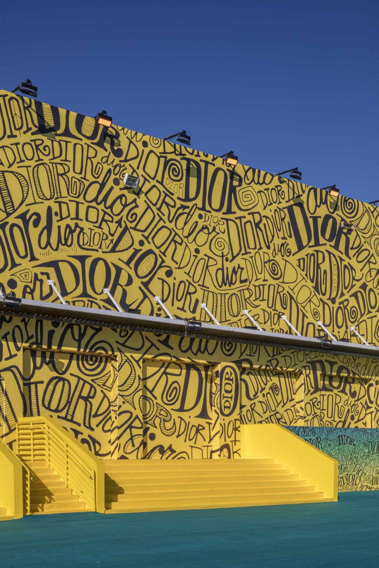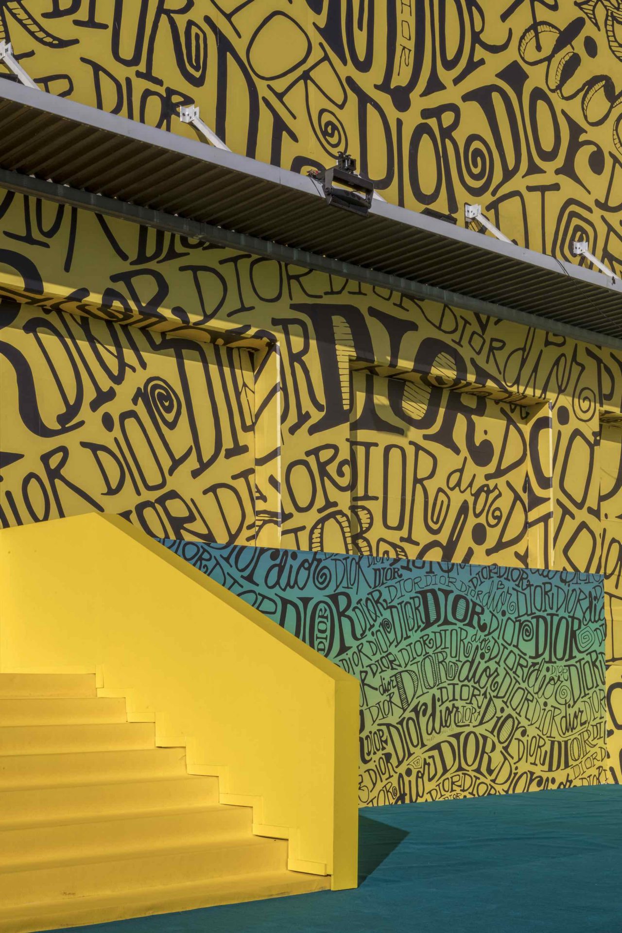 「アート・バーゼル マイアミビーチ」の開幕前夜に開催されたショーはルベルミュージアムを舞台に、没入型のインスタレーションとして考案されたという無数に繰り返される DIOR の文字に包まれた会場で開催。このグラフィティタグのようなプリントは、Stüssy (ステューシー) の創設者でありカウンターカルチャーとサーフィン界を牽引するトップアーティストの Sean Stüssy (ショーン・ステューシー) がデザイン。コレクションにもこのサイケデリックなプリントが様々なアイテムで登場した。