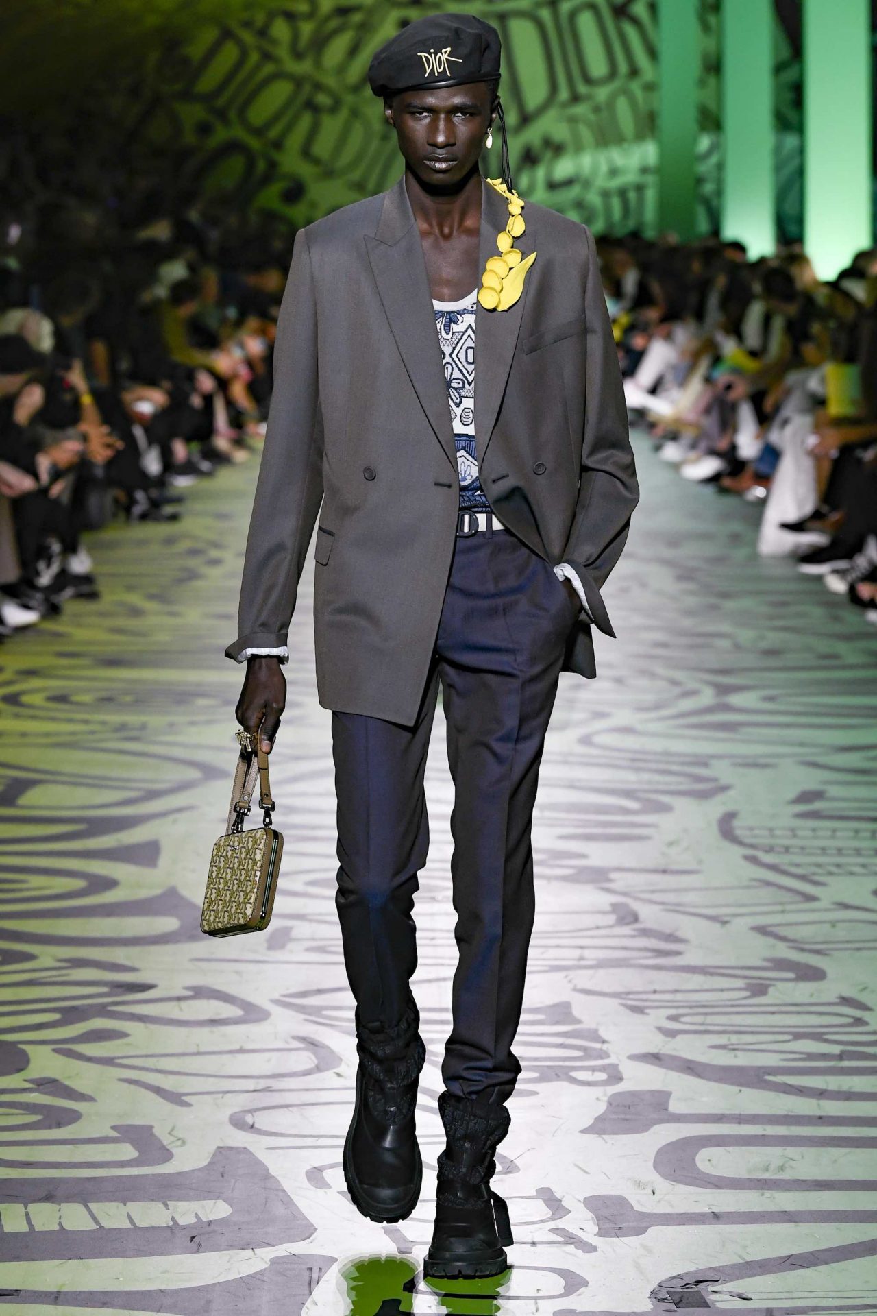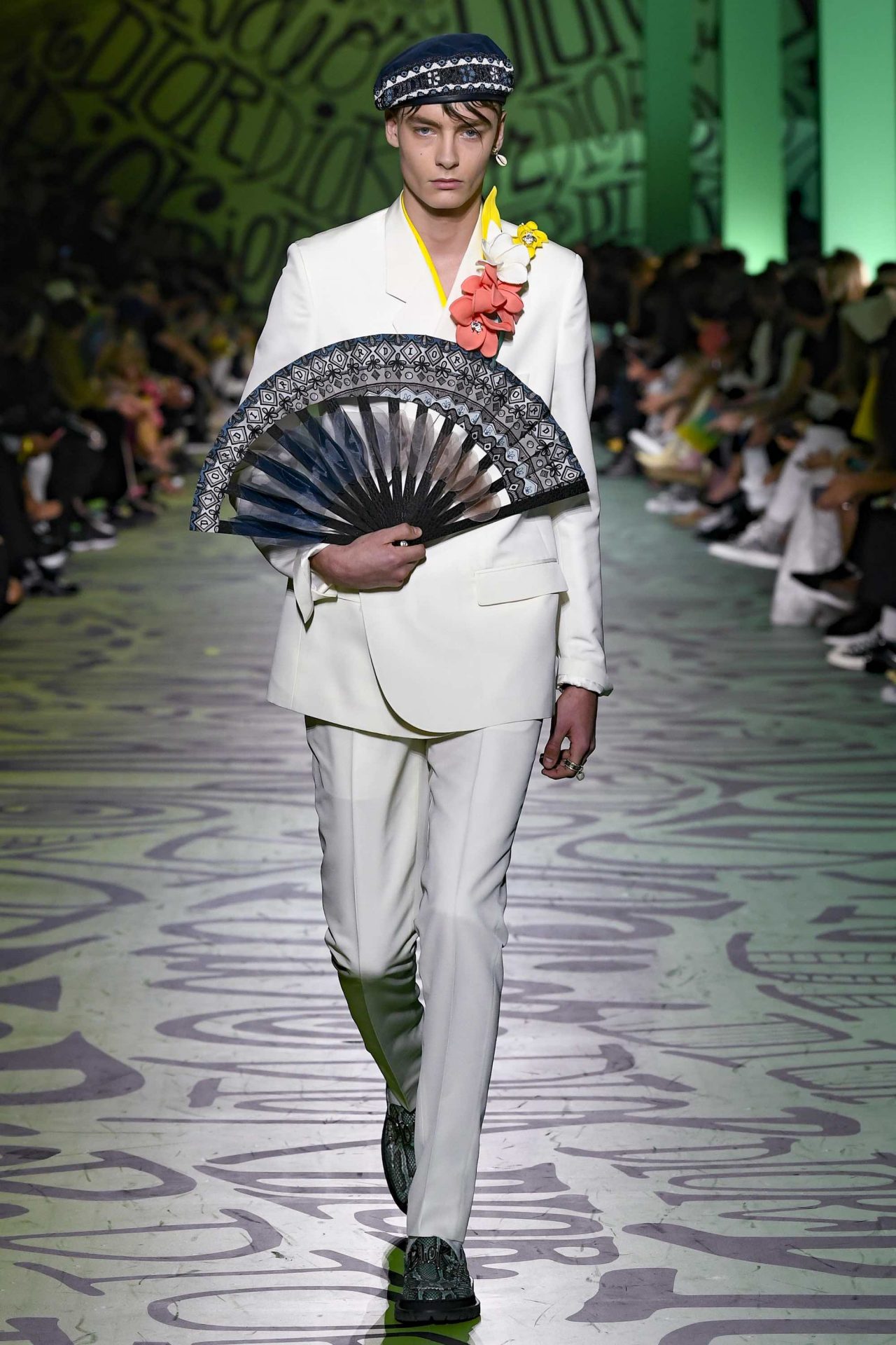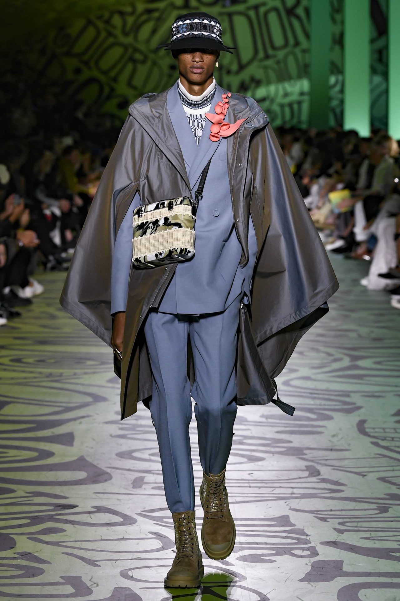 マイアミビーチのアールデコ建築を反映したというハイビスカスレッドやパシフィックブルー、サフランといった鮮やかなカラーパレットで彩られたコレクションは、ポジティブなムード全開。フローラルモチーフやパイソンプリント、チェック&ストライプがアクセントを加えている。エンブロイダリーやビーズ刺繍、そしてテーラリングのサヴォワールフェールといったオートクチュールとメゾンのヘリテージに捧げるオマージュが随所に散りばめられ、今回もまた Kim Jones のコンテンポラリーな感性と見事な融合を果たした。