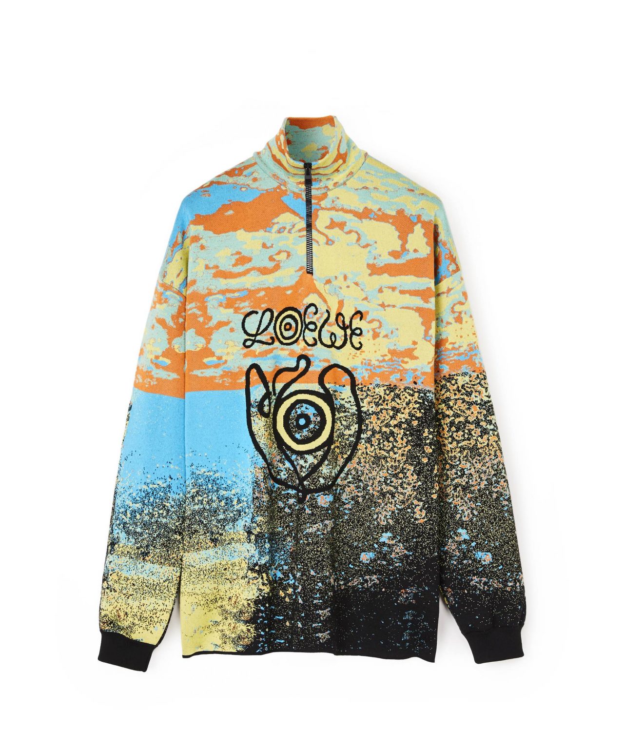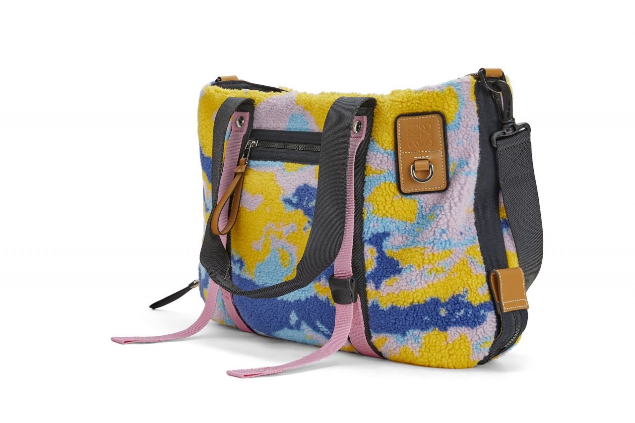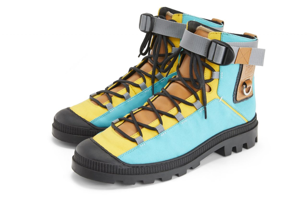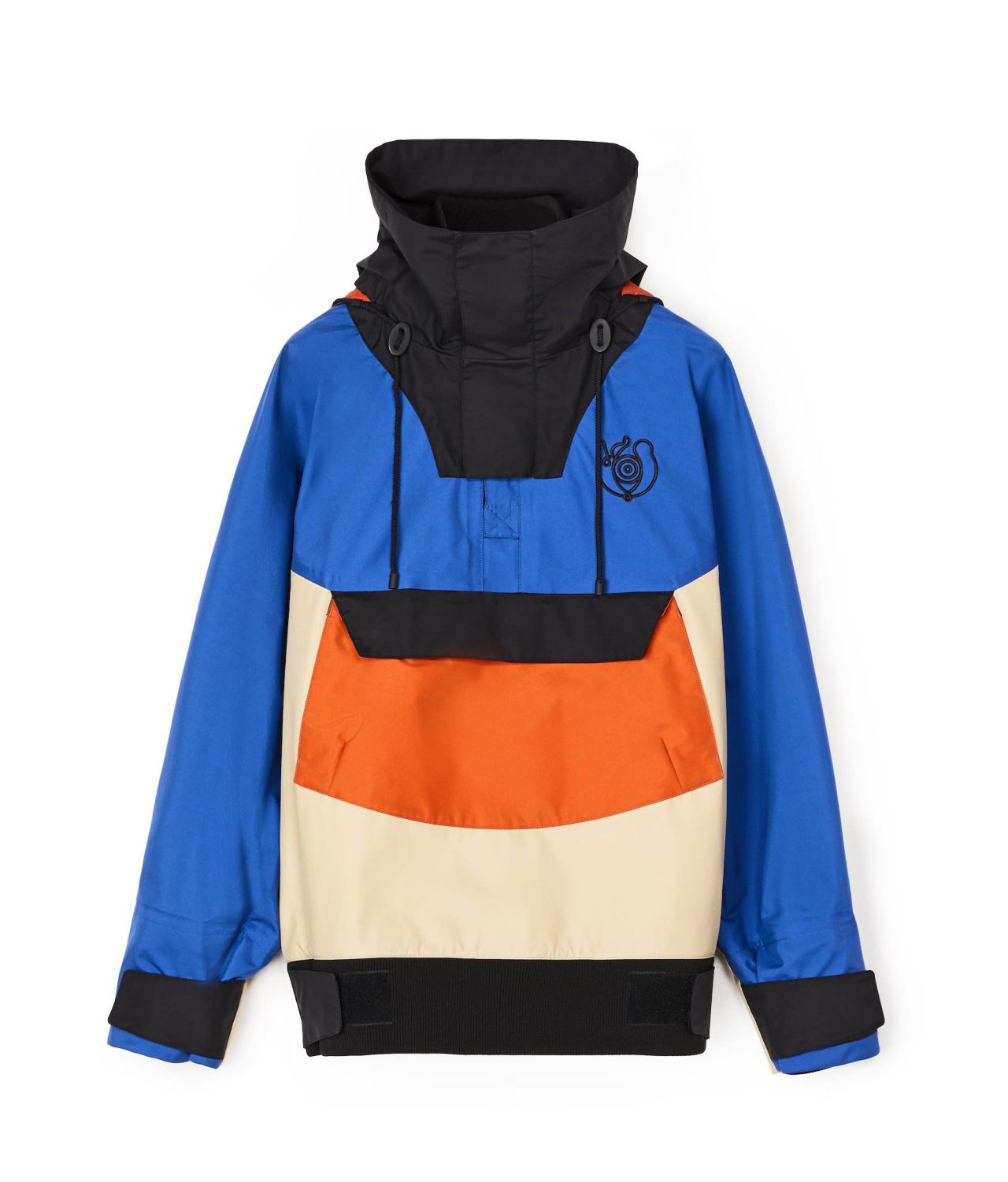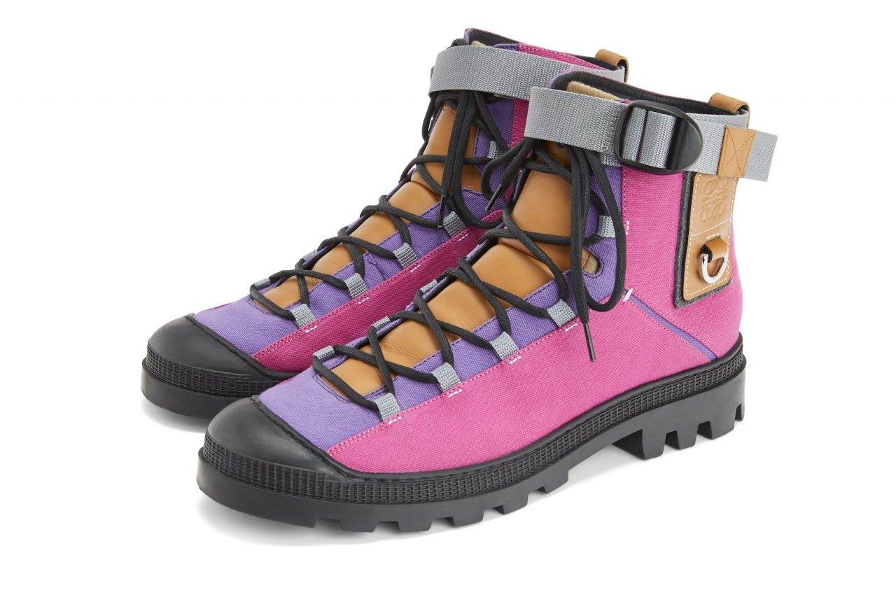 鮮やかなパープルやターコイズ、オレンジ、ピンク、そしてサイケデリックなマルチカラーに彩られた「Eye/LOEWE/Nature」2020年春夏コレクション。新たにプルオーバーパーカーや高耐久のワークウェアジャケット、カーフスキンのハイキングブーツなど、デイリーウェアでも着れるアウトドアウェアが目白押し。M/M(Paris) (エムエムパリス) がデザインした目のマークが胸元のワンポイントやTシャツのプリントと大活躍し、コレクションを特徴付けている。
