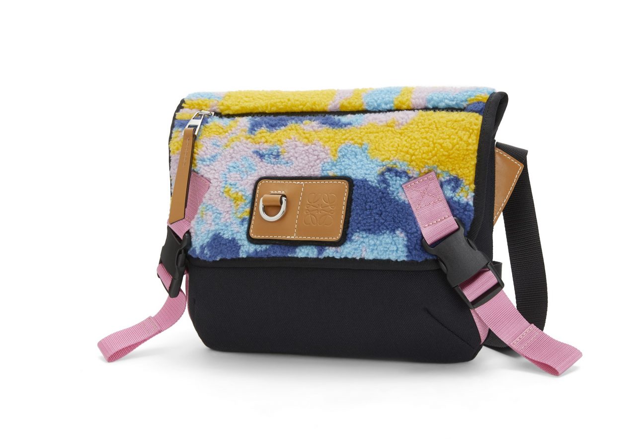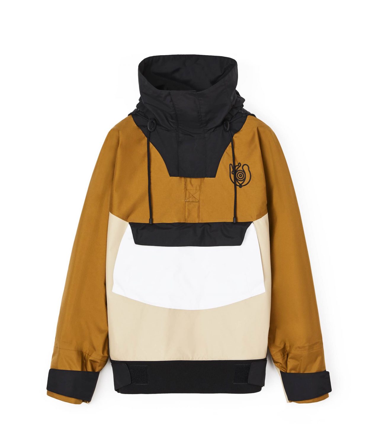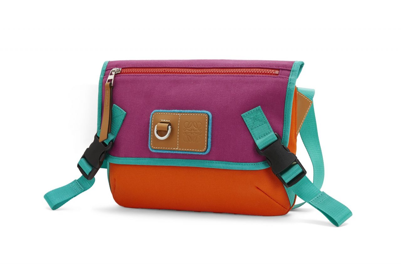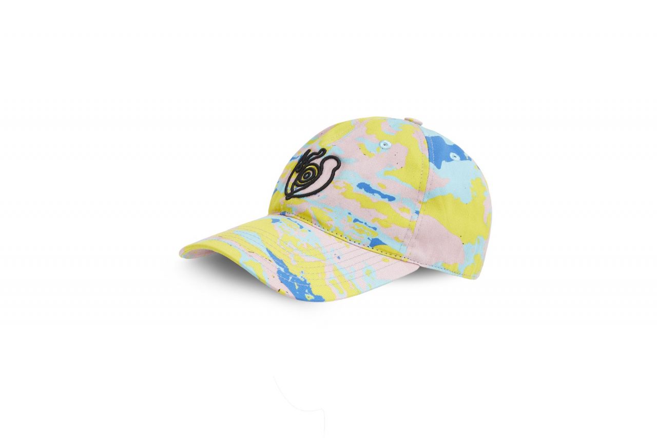 鮮やかなパープルやターコイズ、オレンジ、ピンク、そしてサイケデリックなマルチカラーに彩られた「Eye/LOEWE/Nature」2020年春夏コレクション。新たにプルオーバーパーカーや高耐久のワークウェアジャケット、カーフスキンのハイキングブーツなど、デイリーウェアでも着れるアウトドアウェアが目白押し。M/M(Paris) (エムエムパリス) がデザインした目のマークが胸元のワンポイントやTシャツのプリントと大活躍し、コレクションを特徴付けている。