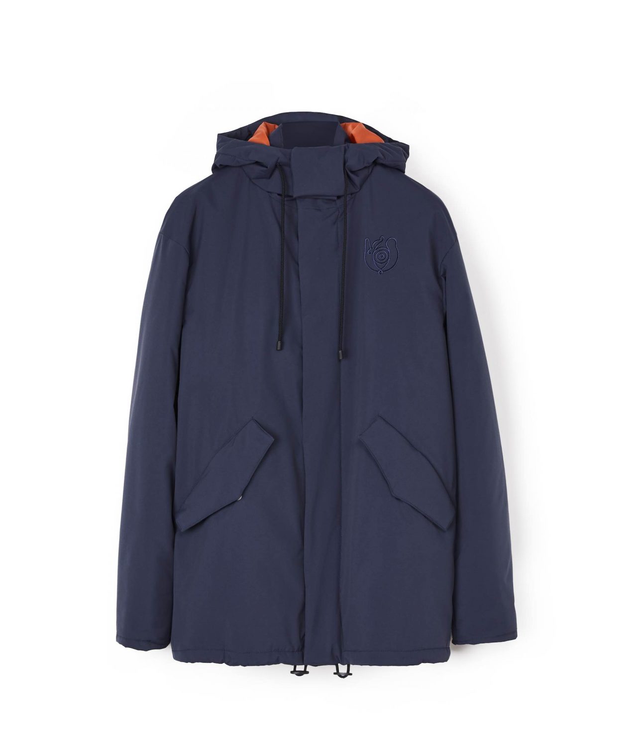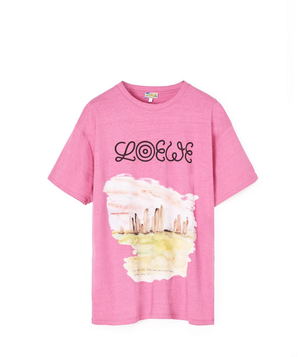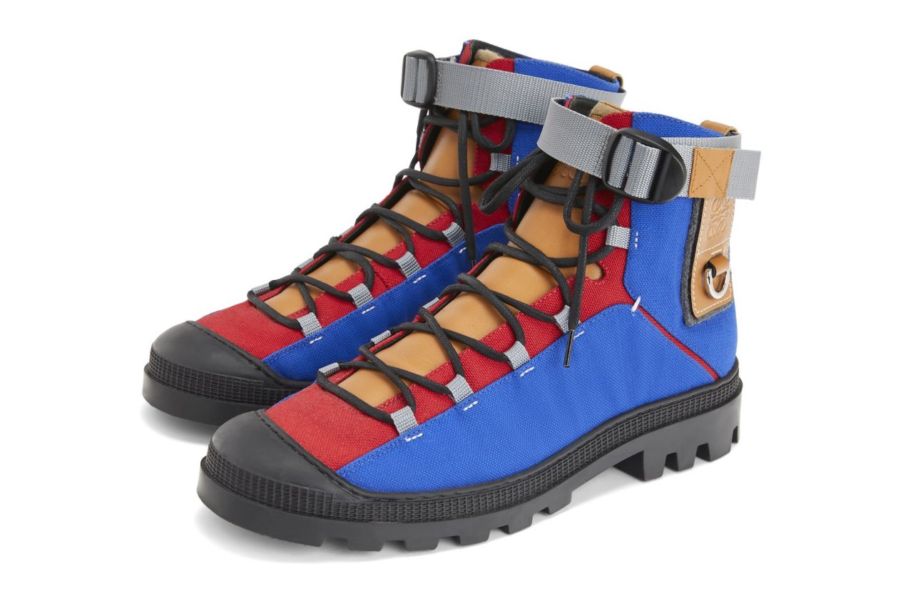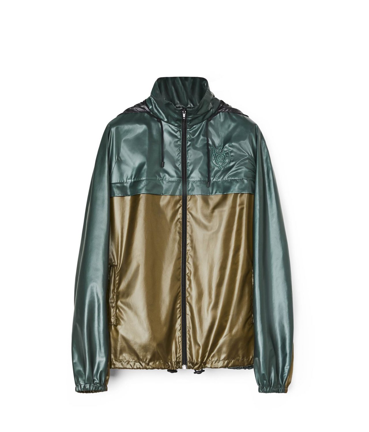 鮮やかなパープルやターコイズ、オレンジ、ピンク、そしてサイケデリックなマルチカラーに彩られた「Eye/LOEWE/Nature」2020年春夏コレクション。新たにプルオーバーパーカーや高耐久のワークウェアジャケット、カーフスキンのハイキングブーツなど、デイリーウェアでも着れるアウトドアウェアが目白押し。M/M(Paris) (エムエムパリス) がデザインした目のマークが胸元のワンポイントやTシャツのプリントと大活躍し、コレクションを特徴付けている。