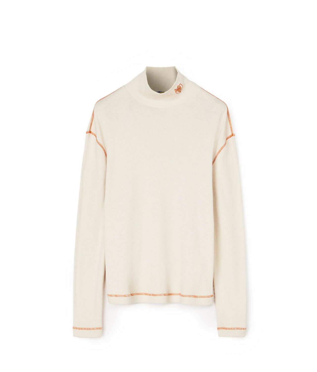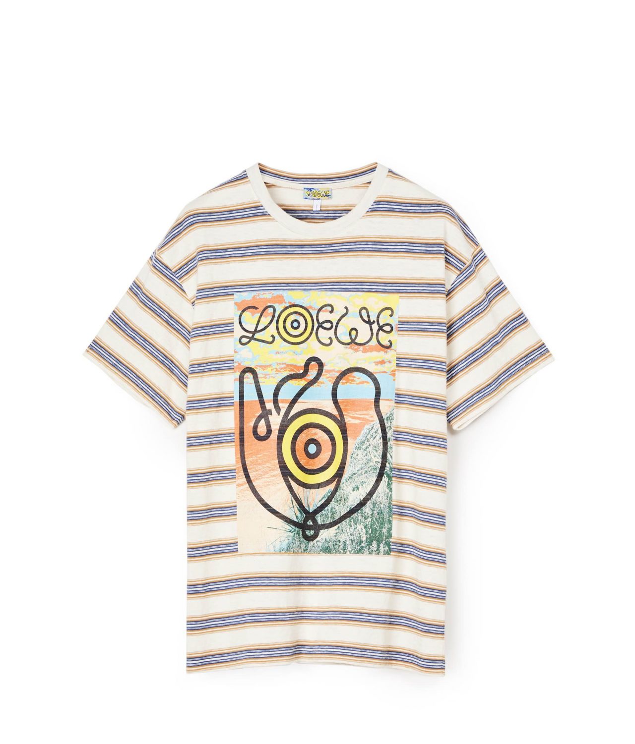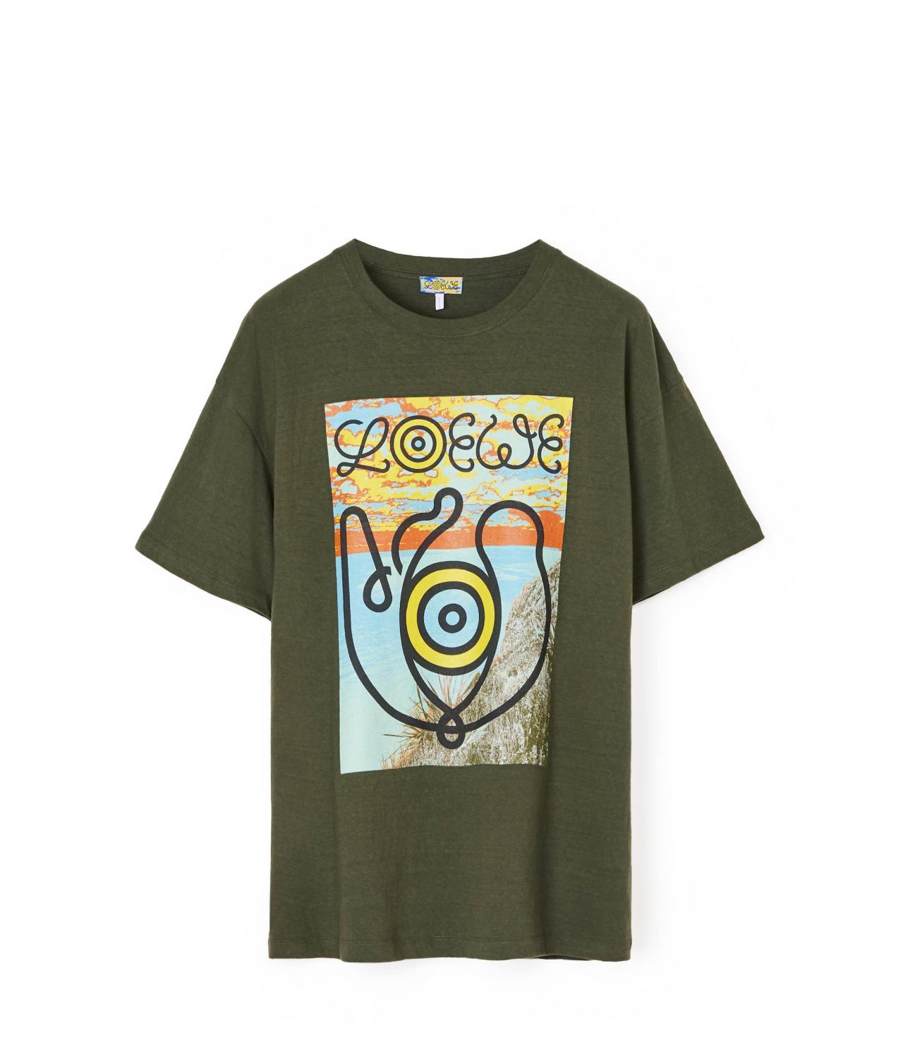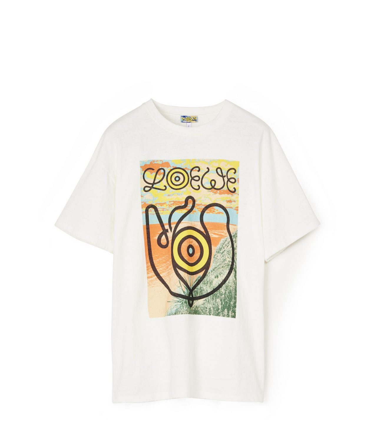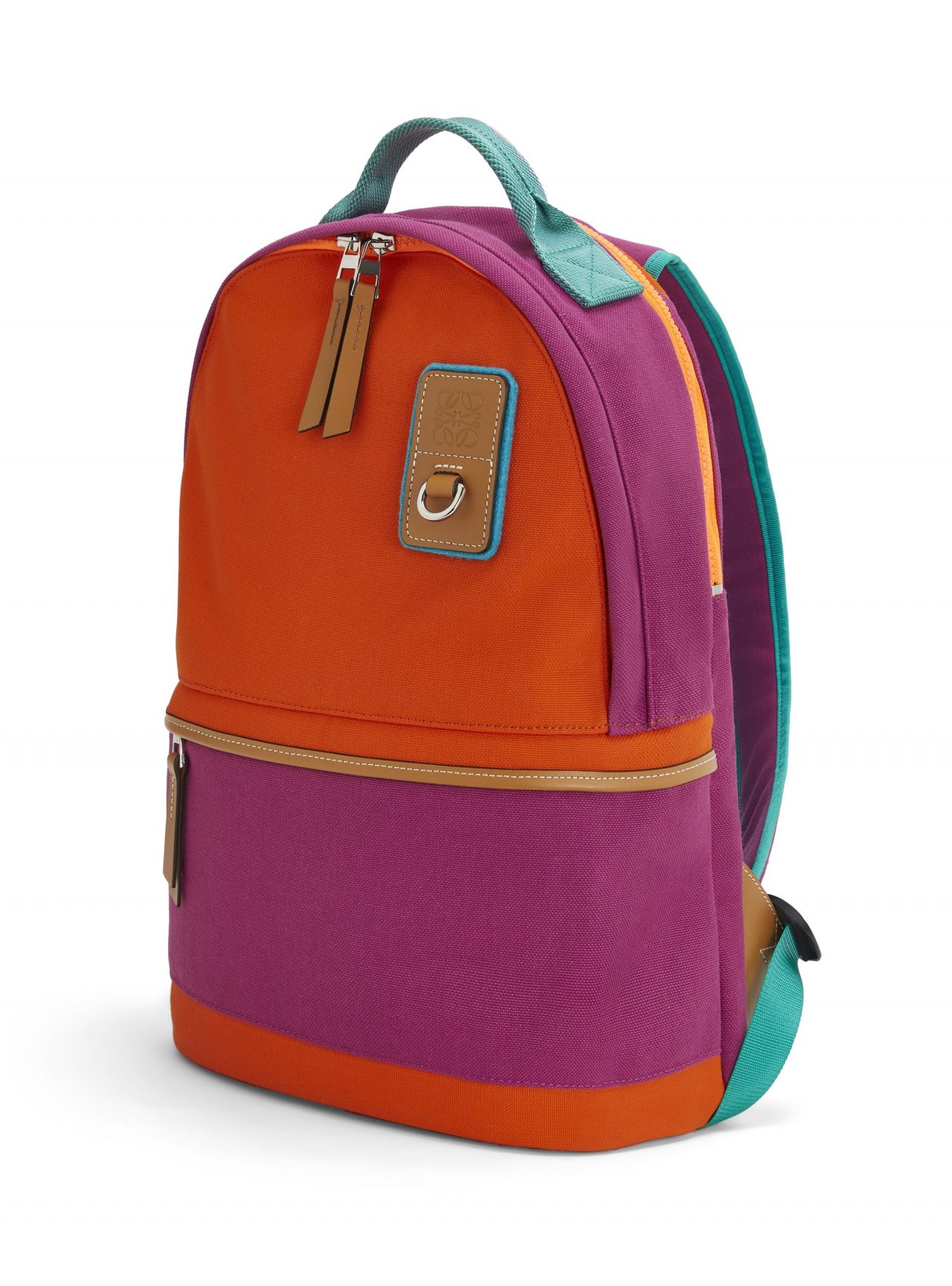 鮮やかなパープルやターコイズ、オレンジ、ピンク、そしてサイケデリックなマルチカラーに彩られた「Eye/LOEWE/Nature」2020年春夏コレクション。新たにプルオーバーパーカーや高耐久のワークウェアジャケット、カーフスキンのハイキングブーツなど、デイリーウェアでも着れるアウトドアウェアが目白押し。M/M(Paris) (エムエムパリス) がデザインした目のマークが胸元のワンポイントやTシャツのプリントと大活躍し、コレクションを特徴付けている。