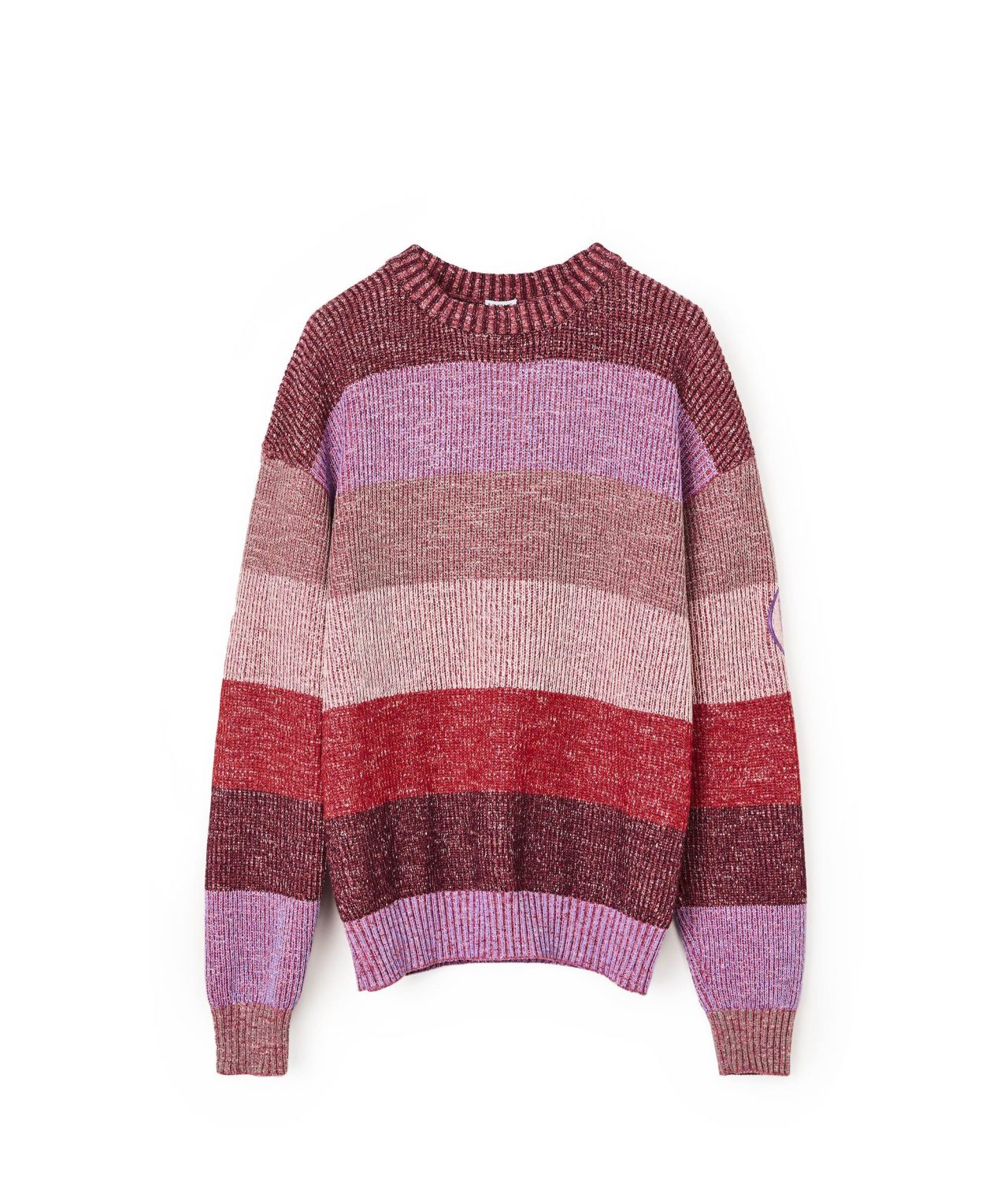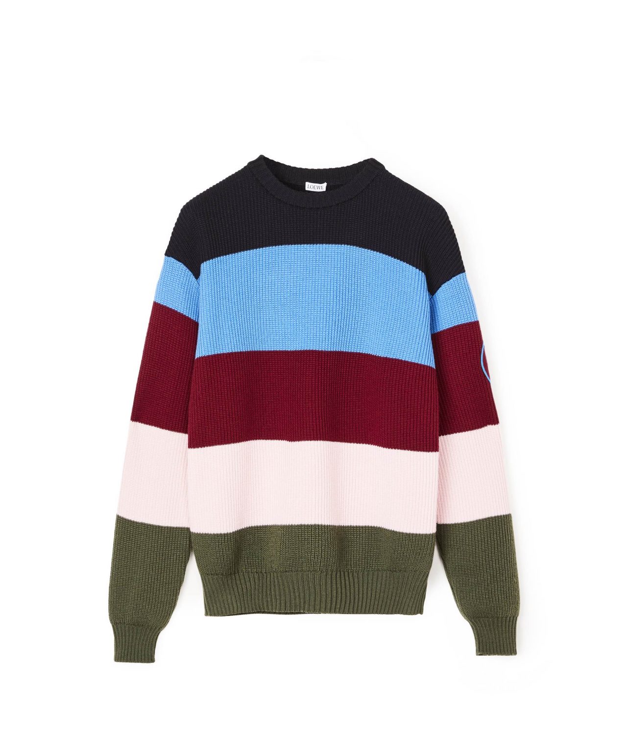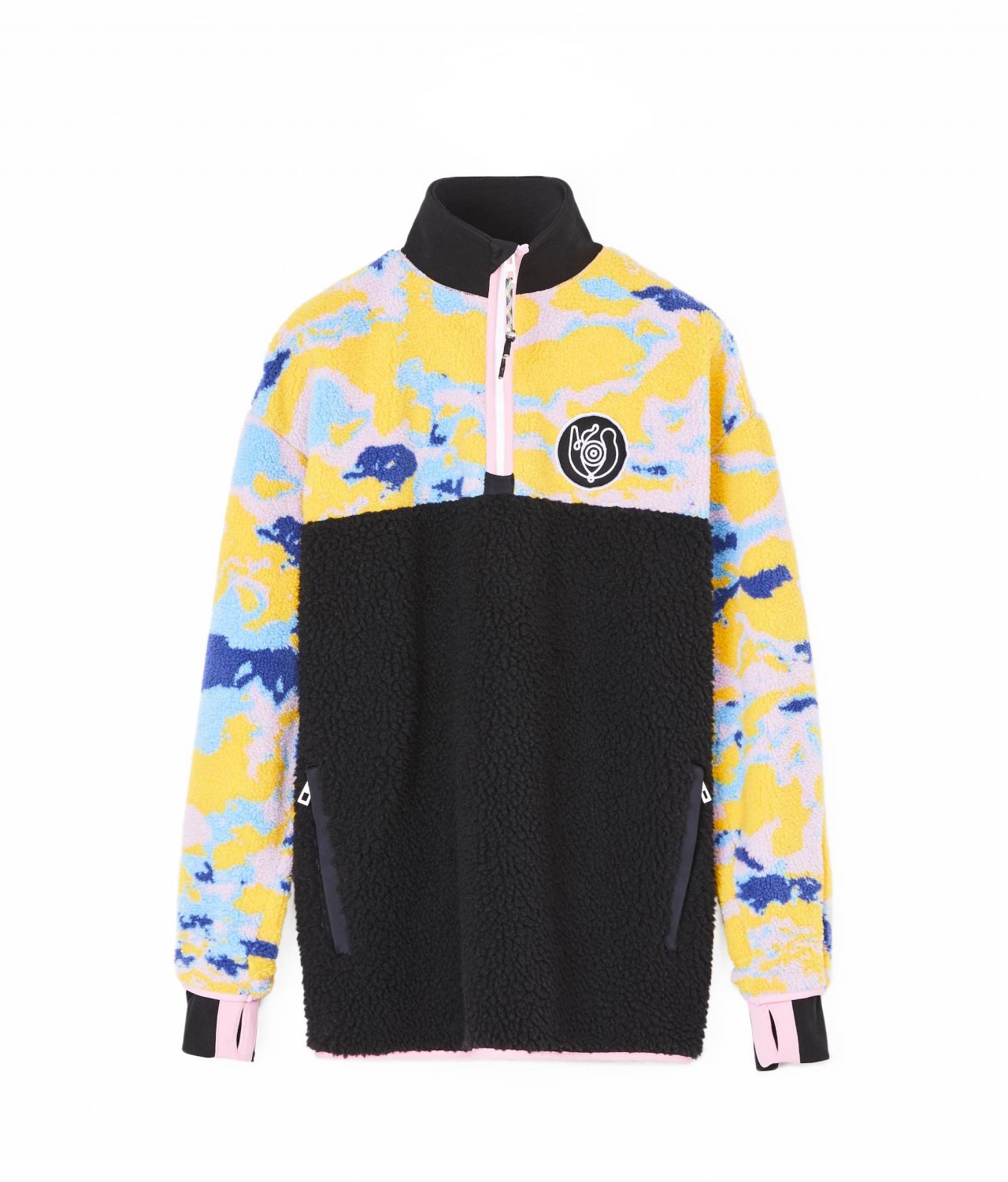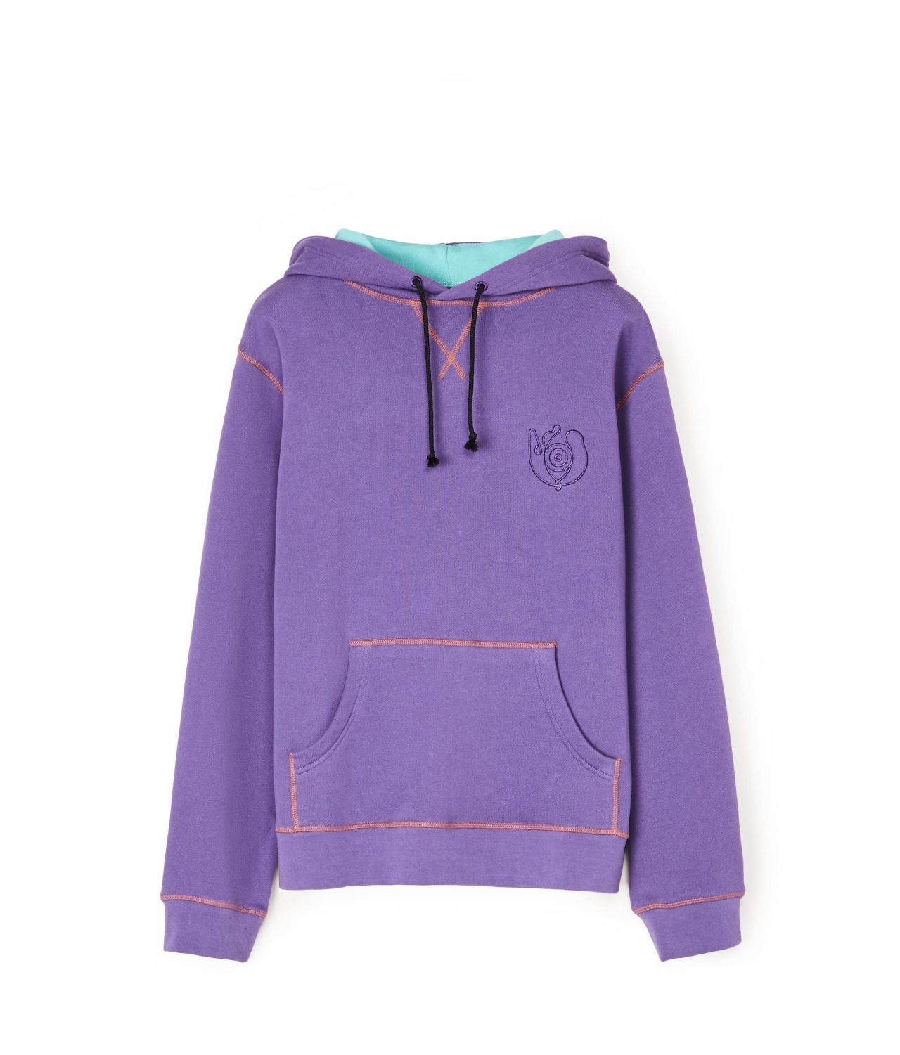 鮮やかなパープルやターコイズ、オレンジ、ピンク、そしてサイケデリックなマルチカラーに彩られた「Eye/LOEWE/Nature」2020年春夏コレクション。新たにプルオーバーパーカーや高耐久のワークウェアジャケット、カーフスキンのハイキングブーツなど、デイリーウェアでも着れるアウトドアウェアが目白押し。M/M(Paris) (エムエムパリス) がデザインした目のマークが胸元のワンポイントやTシャツのプリントと大活躍し、コレクションを特徴付けている。