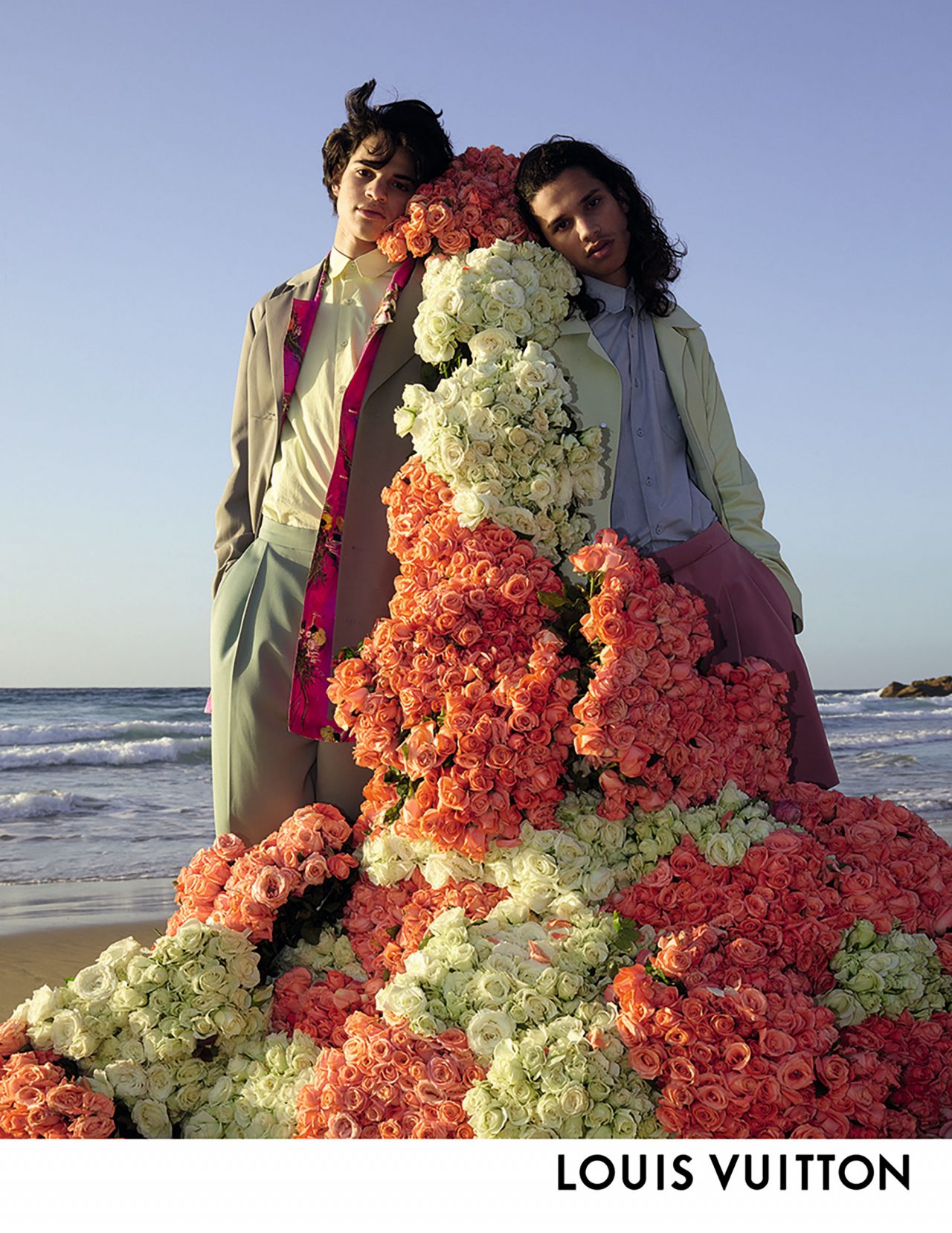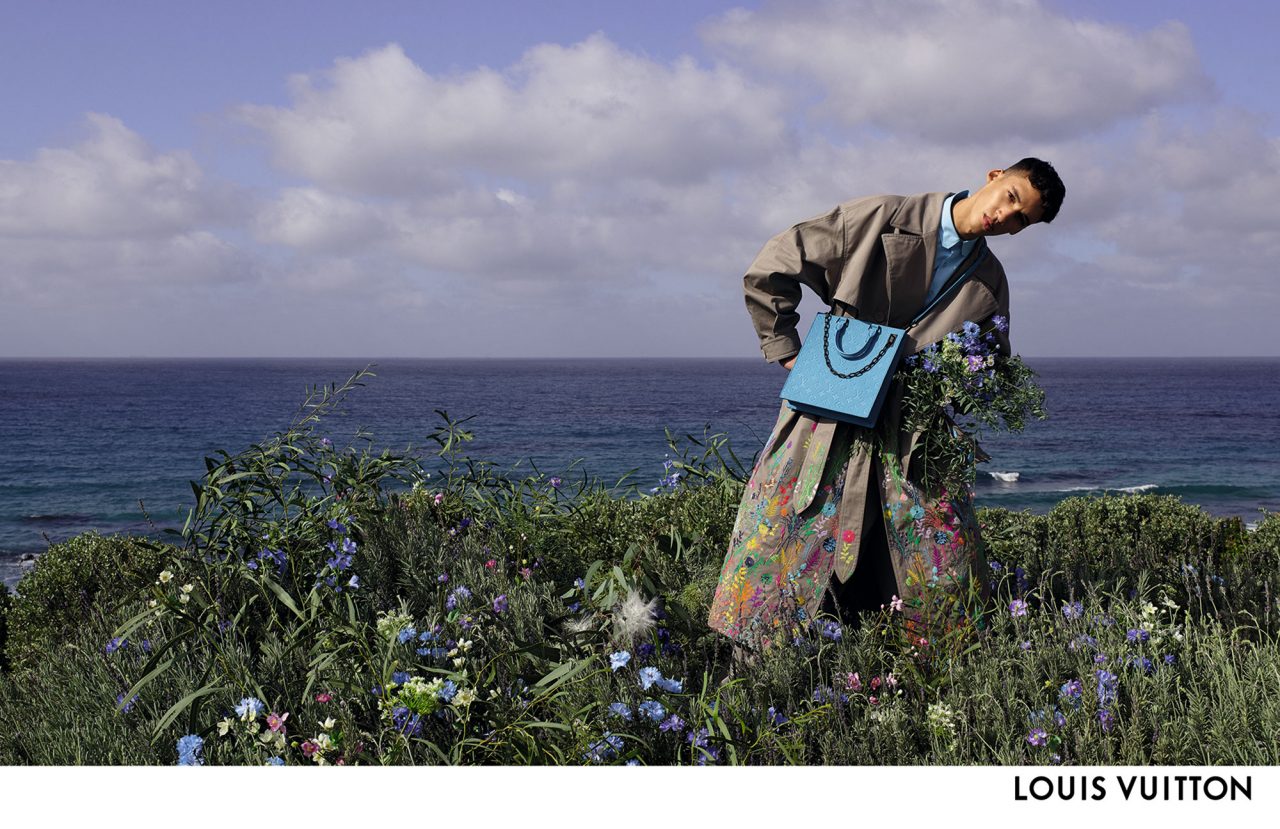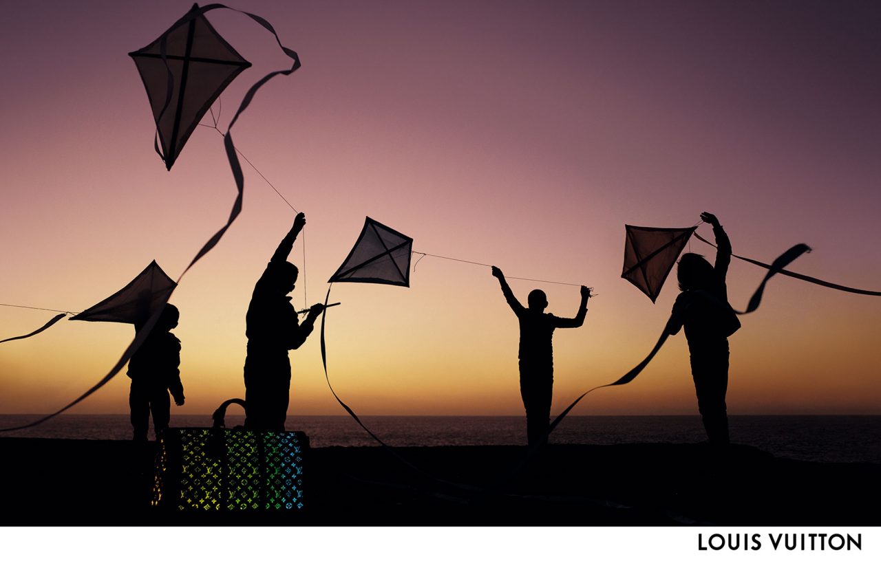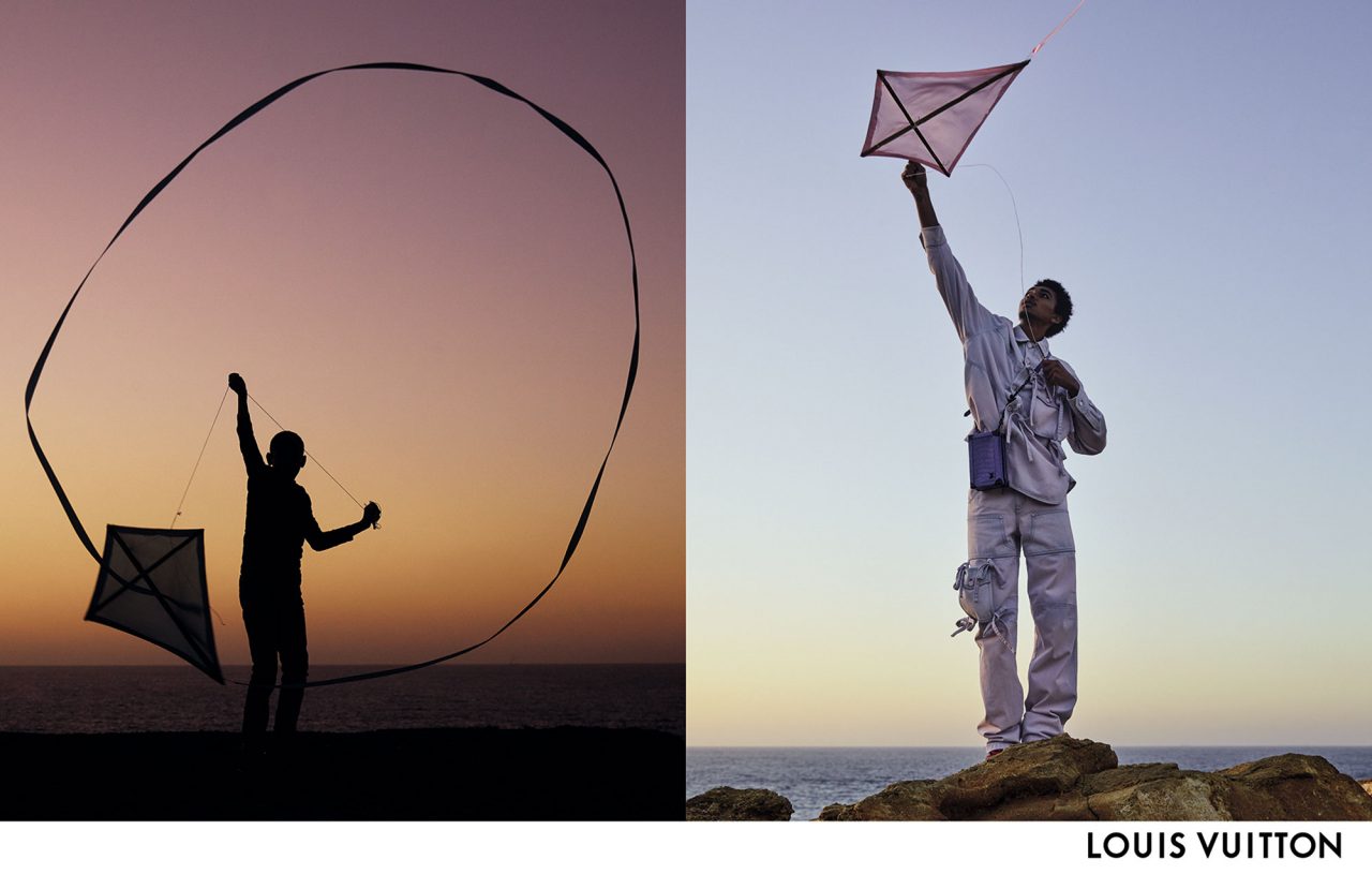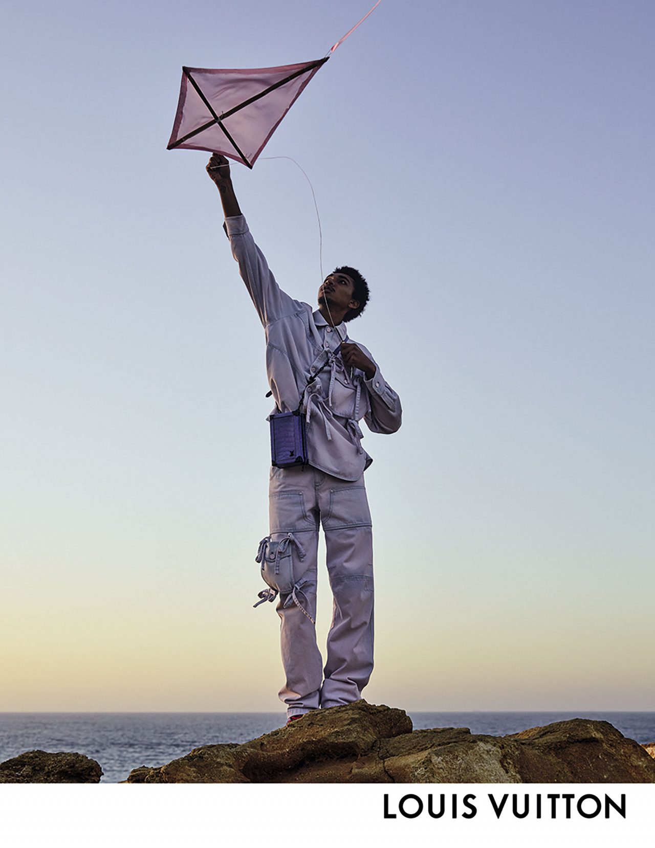 どこか見覚えのあるような吹きさらしのビーチや草が茂った砂丘、海に沈んでいく美しい夕日などの光景を Virgil Abloh が再解釈。彼が手掛ける Louis Vuitton のコレクションにおいて継続的にフィーチャーされているテーマ「少年時代」の概念から切り取られ、ノスタルジックな雰囲気を纏ったイメージに仕上げられている。キャストたちが凧揚げをしている姿は、国境に関係なく世界中の人々に共通する幼少期の思い出を表現。本コレクションのメインモチーフであるフラワーは、多様性を象徴する自然なメタファーとして多様なキャストと対話するように登場している。
