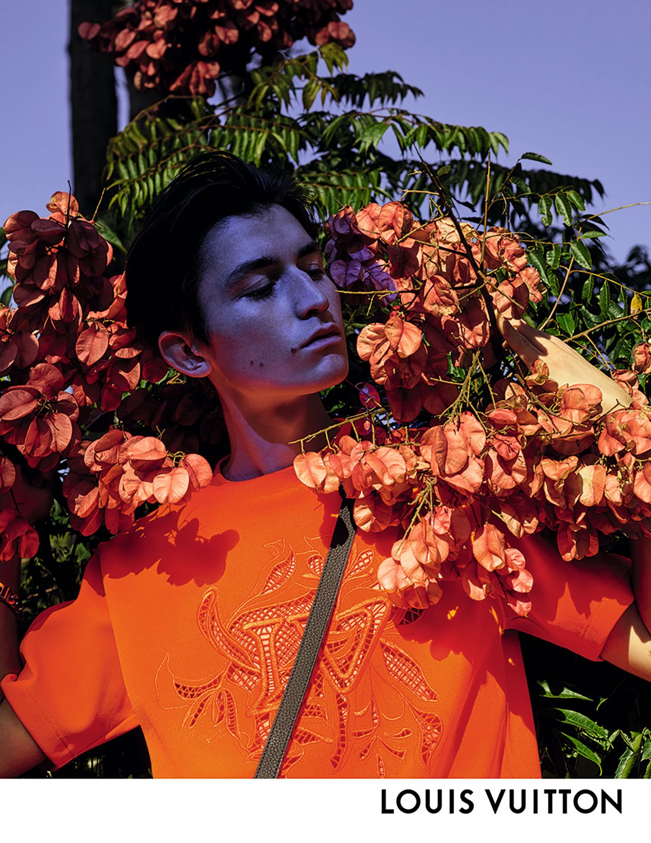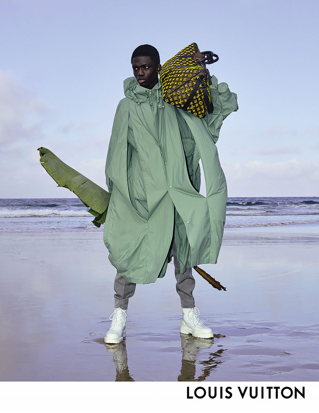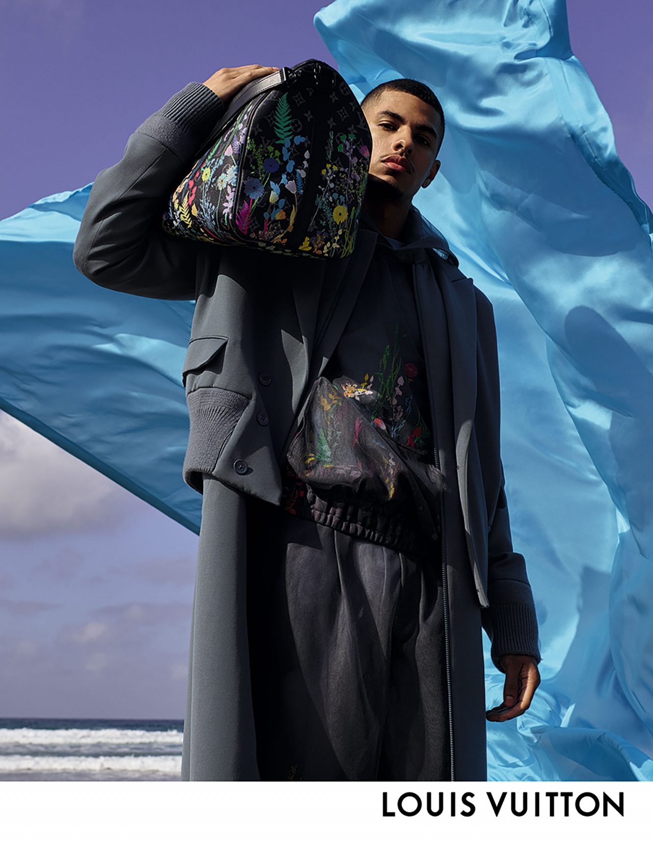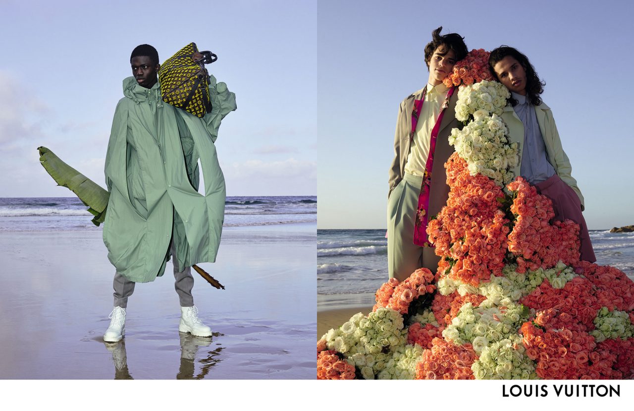 どこか見覚えのあるような吹きさらしのビーチや草が茂った砂丘、海に沈んでいく美しい夕日などの光景を Virgil Abloh が再解釈。彼が手掛ける Louis Vuitton のコレクションにおいて継続的にフィーチャーされているテーマ「少年時代」の概念から切り取られ、ノスタルジックな雰囲気を纏ったイメージに仕上げられている。キャストたちが凧揚げをしている姿は、国境に関係なく世界中の人々に共通する幼少期の思い出を表現。本コレクションのメインモチーフであるフラワーは、多様性を象徴する自然なメタファーとして多様なキャストと対話するように登場している。