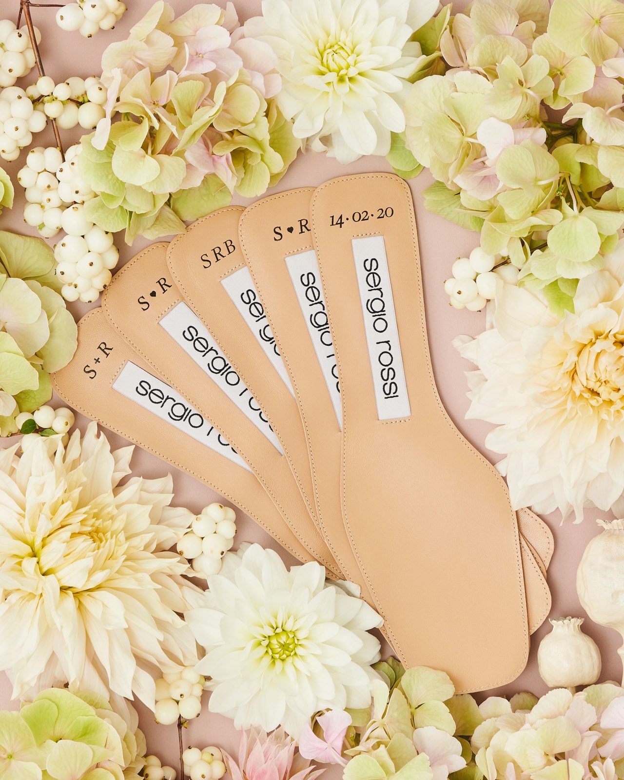 「クラシックで時代を超越したラインを宿しながら、モダンで今の時代をとらえる。」というコンセプトのもと展開されるブライダルコレクション。女性の人生の中で最も特別な日のために、アッパーの素材とカラー、ヒールの高さ、装飾パーツを自由にカスタマイズした世界で1足のシューズを作ることができる。アッパーの素材はレースやサテンといったスタンダードなものに加え、ラミネートレザーやグリッターなど遊び心のあるものも取り揃える。インソールのロゴは通常のコレクションとは異なる白ベースとなり、結婚式の日付や新郎新婦のイニシャルを印字することも可能。また、すべてのシューズのアウトソールには「サムシング・ブルー」の伝統を表す、ブルーのラウンドストーンがあしらわれる。ベースとなるモデルには、Sergio Rossi のアイコニックな「GODIVA」パンプスや「sr1」のスクエアトゥ サンダルをはじめ、プラットフォームシューズや「sr1」スリッパも含まれる。ヒールのみではなくフラットシューズも選ぶことができ、現代の花嫁のニーズに幅広く対応する。メイド・トゥ・オーダーのシューズは、注文から約8〜10週間ほどで完成するとのこと。