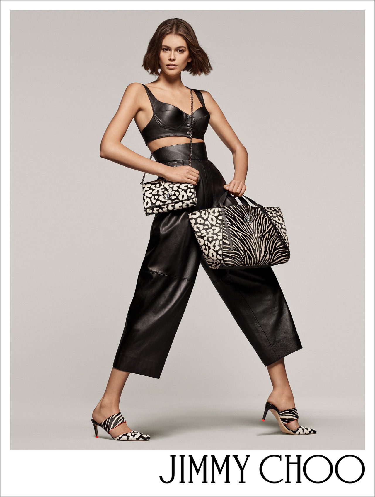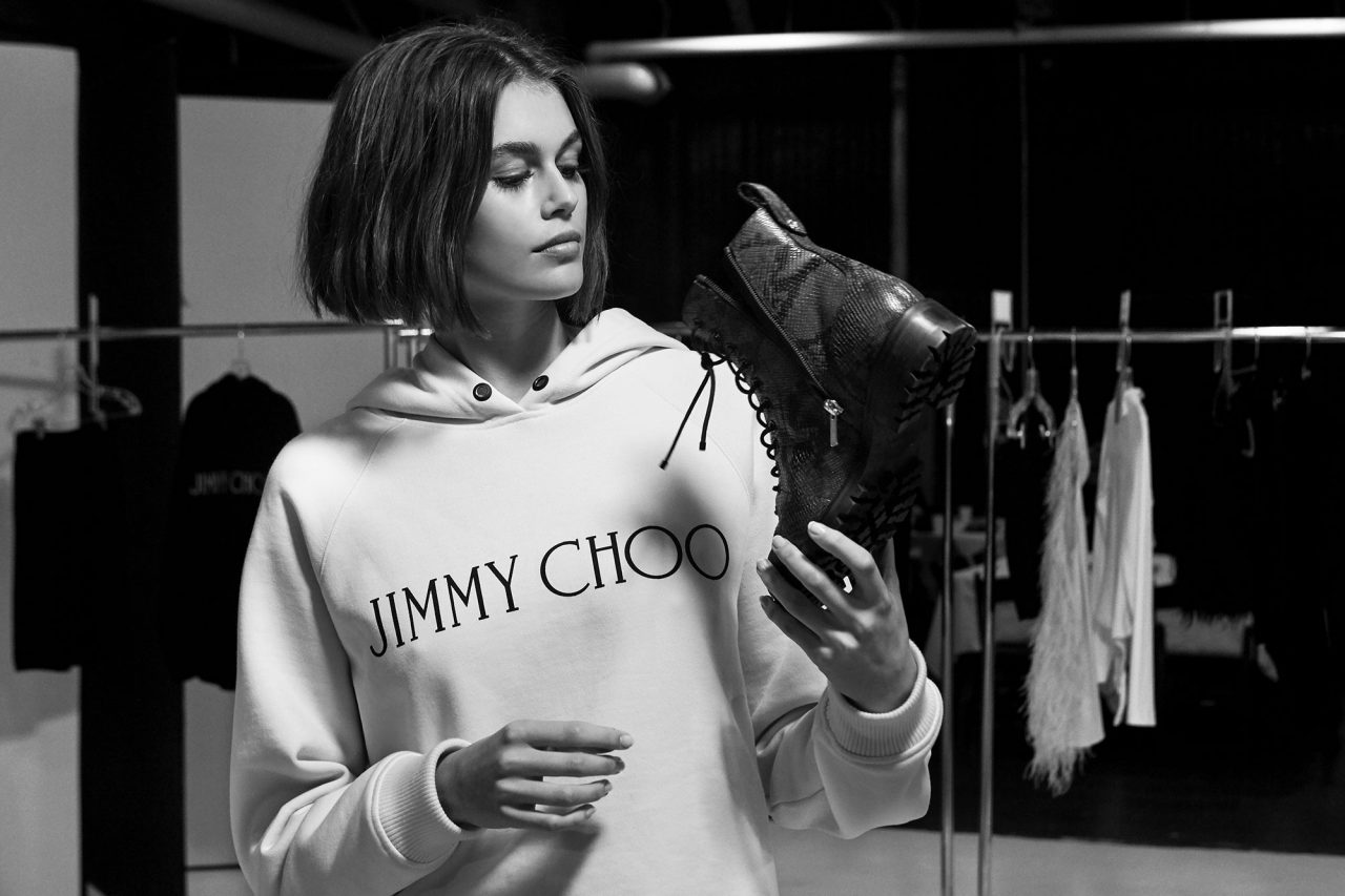 2020年春夏 コレクションでは、Kaia Gerber と Sandra Choi のコラボレーションによる限定カプセルコレクション「JIMMY CHOO AND KAIA GERBER」が登場する。Kaia Gerber が初めて JIMMY CHOO のキャンペーンに出演した2019年春夏の頃から履いていたという CRUZ ブーツの新作をはじめとした全4スタイルが発売される。JIMMY CHOO のクラシックアイテムを、90年代のテーラード・グランジスタイルにカリフォルニアのクールな空気を添えて若々しくアレンジ。アーストーンとプリンテッドスネーク、スエードのブラックのカラーパレットで構成され、Kaia Gerber のプライベートスタイルを反映したエフォートレスなコレクションとなっている。