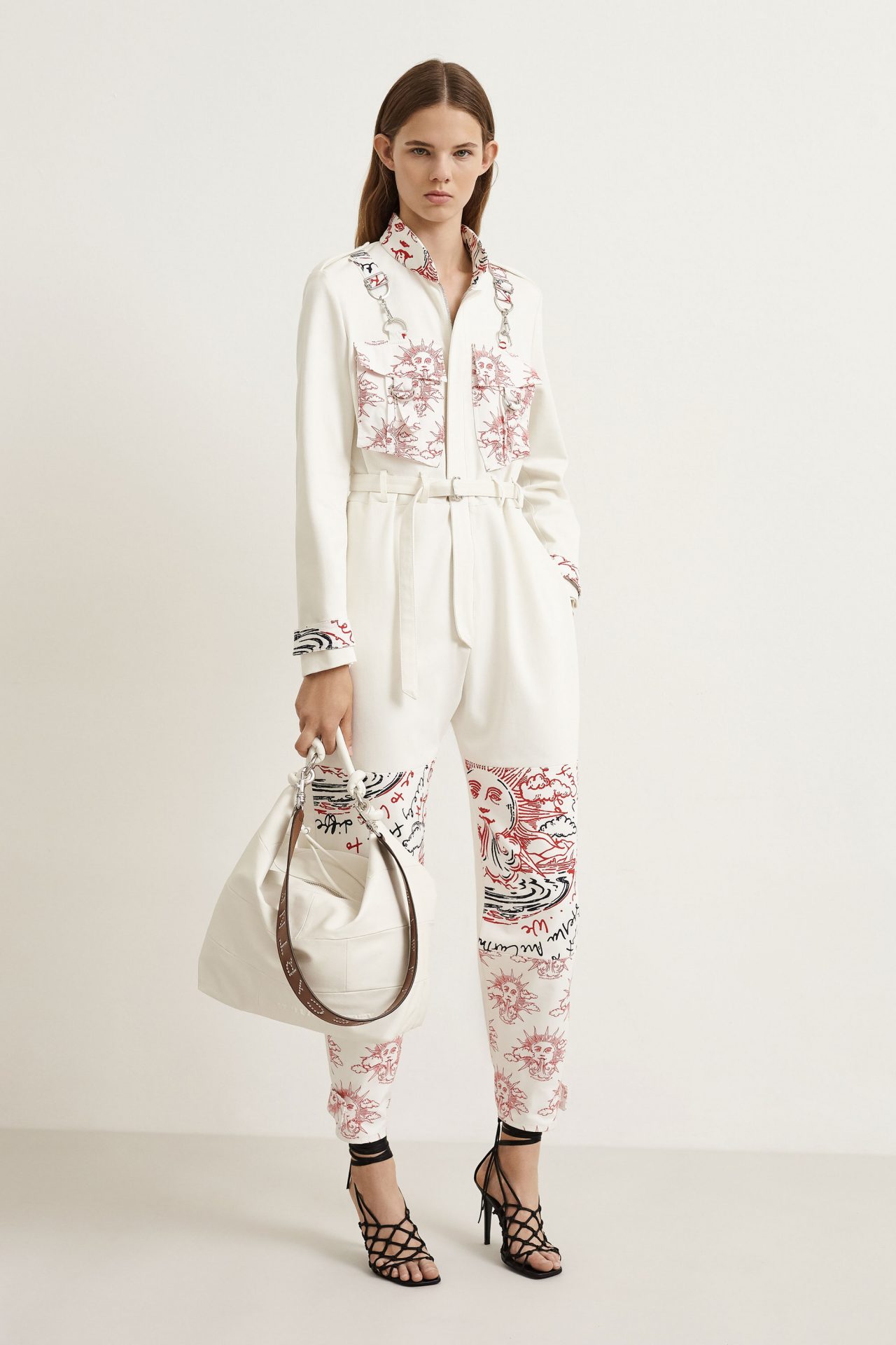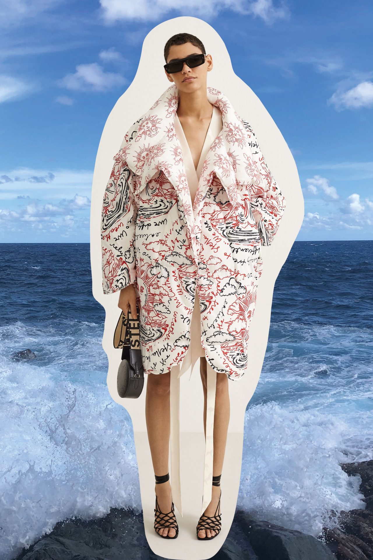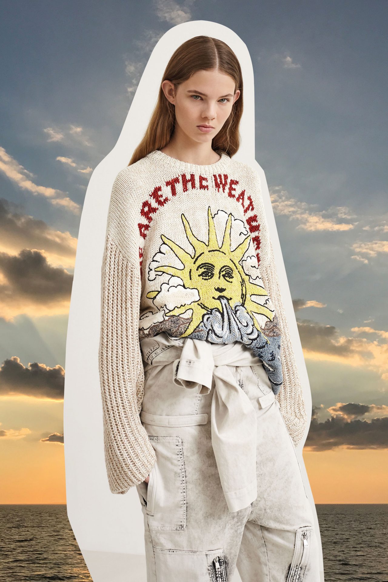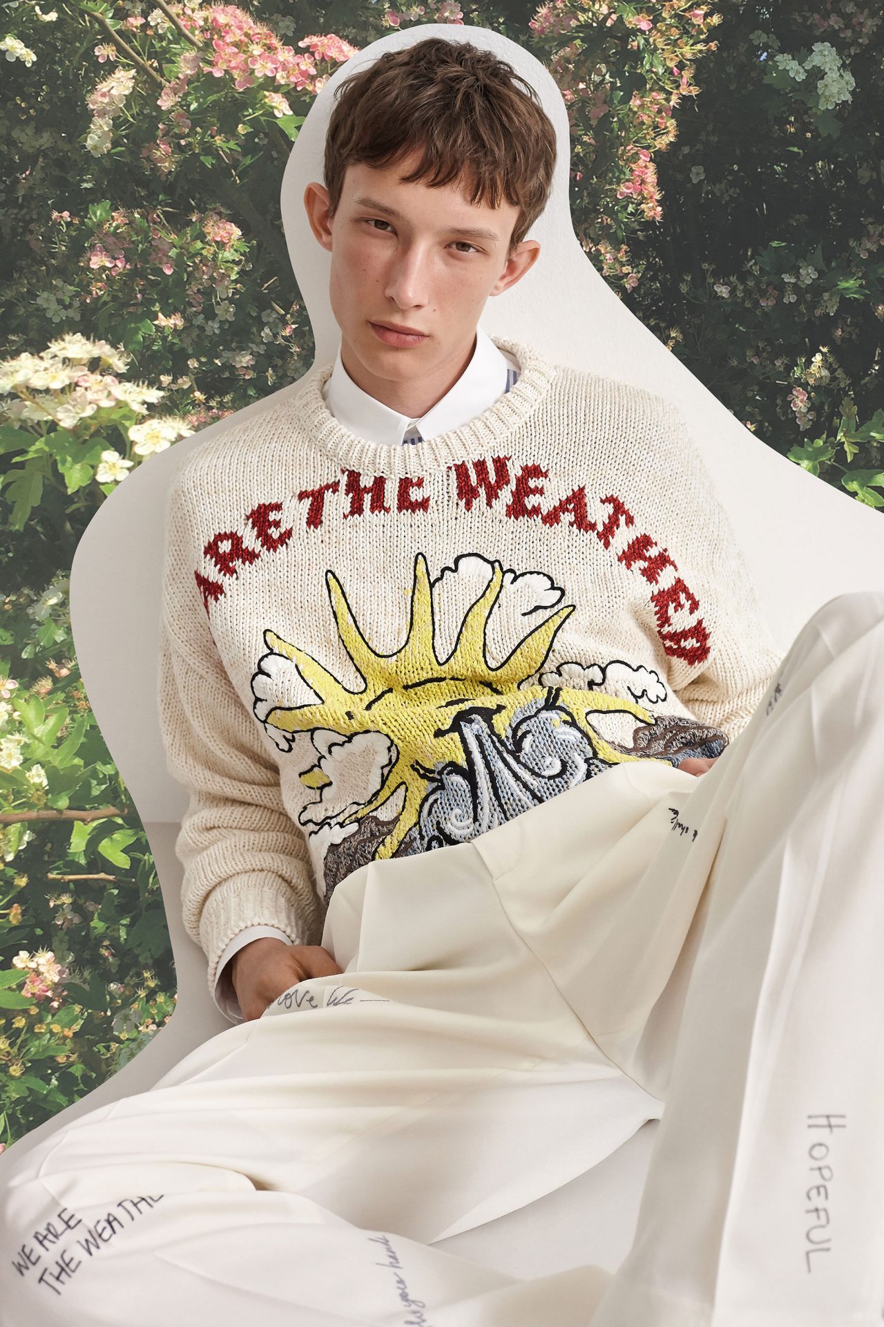 Stella McCartney は、同書から抜粋した「we are entirely free to live differently (=異なる生き方の自由)」をコレクションのステートメントとして採用。ポジティブかつパワフルなメッセージを掲げ、グラフィカルな太陽プリントのイラストがコレクションを鮮やかに彩っている。勿論、オーガニックコットンやオーガニックリネン、再生カシミアといったサステナブルなマテリアルが用いられ、環境に対する Stella McCartney のコミットメントを体現したコレクションとなっている。TFPでは、ミラノのプレゼンテーション会場でエクスクルーシヴに撮り下ろしたエディトリアルで「We Are the Weather」コレクションもフィーチャーしていた。