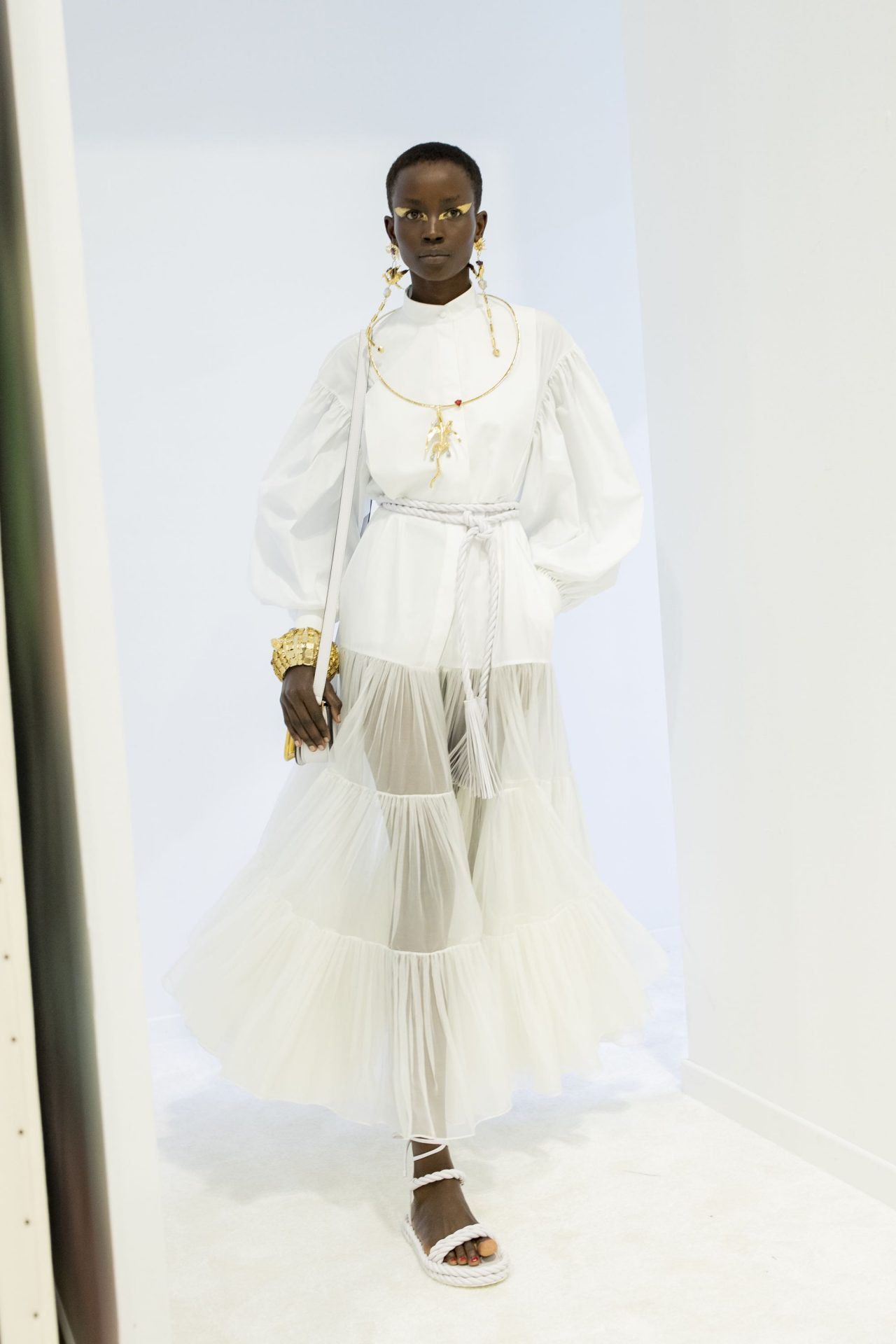「LE BLANC」の主役は、そのタイトル通りホワイト。装飾をすっかり取り去り、形やボリュームを際立たせるこの色を選ぶことで、クリエイティブ ディレクターの Pierpaolo Piccioli (ピエールパオロ・ピッチョーリ) は自身のサルトリアルの専門知識を余すことなく発揮。メゾンのDNAをデイウェアにという同氏の思いが込められた至極のコレクションが誕生した。
