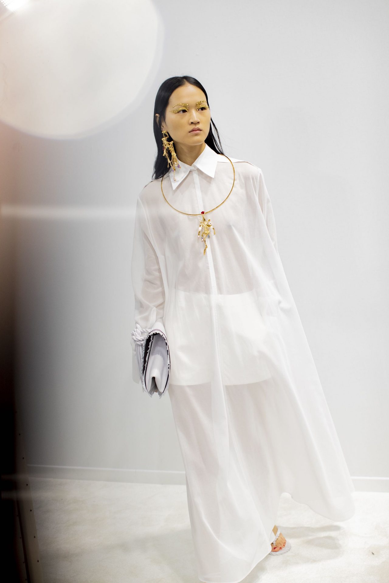 ベースは、誰のワードローブにも1枚はあるであろう“白シャツ”。一見すべて同じ生地を使用しているように見せながらも、ボリューム感、生地の落ち方、シルエットの出方などによってそれぞれ違った重さのコットンポプリンを選定。