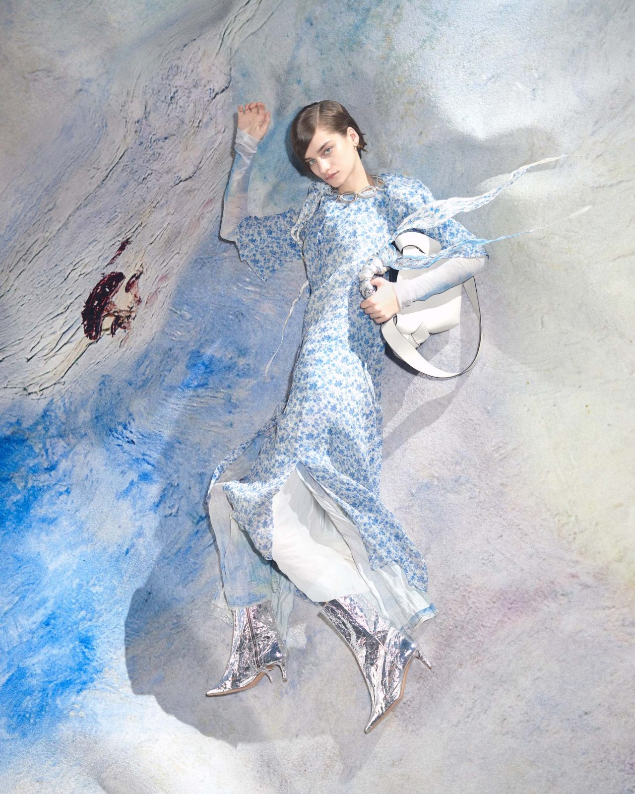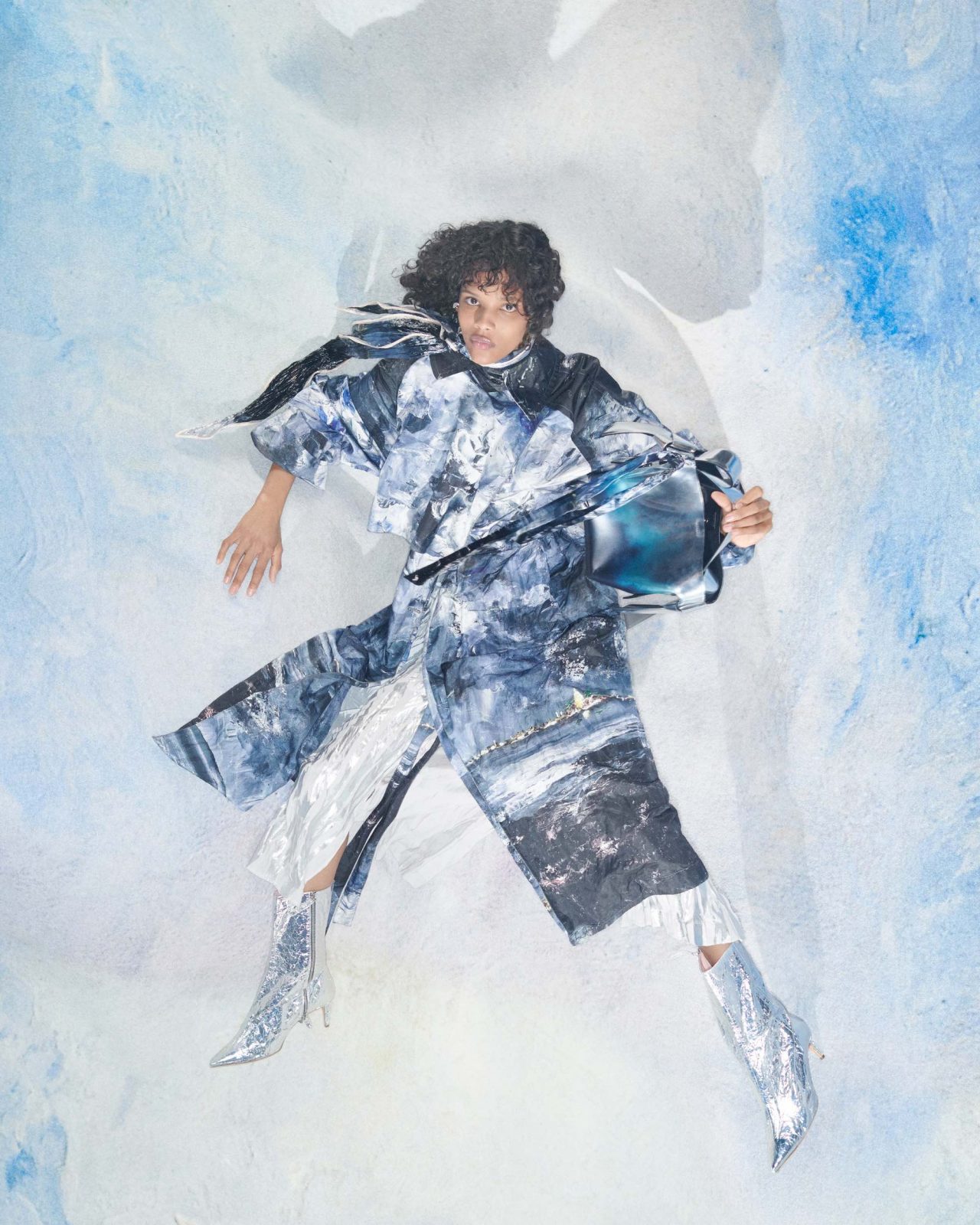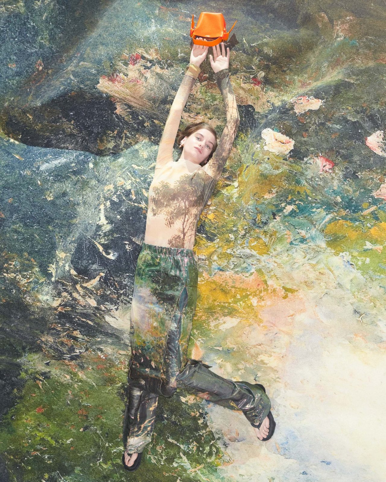 また、同シリーズのルックを着用したモデルがまるで August Strindberg の世界に溺れているようなイメージもお目見え。August Strindberg の2次元の世界と3次元の世界の両方を背景にすることでコントラストを効かせ、自然と共存する現代的な生き方の探求を試みている。