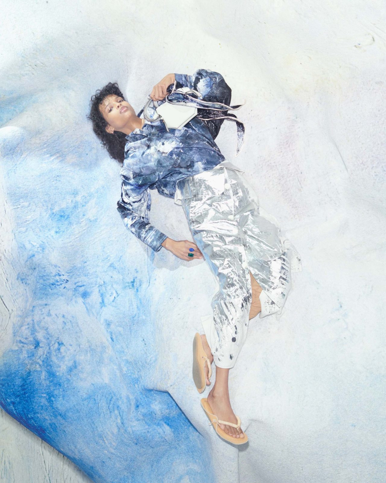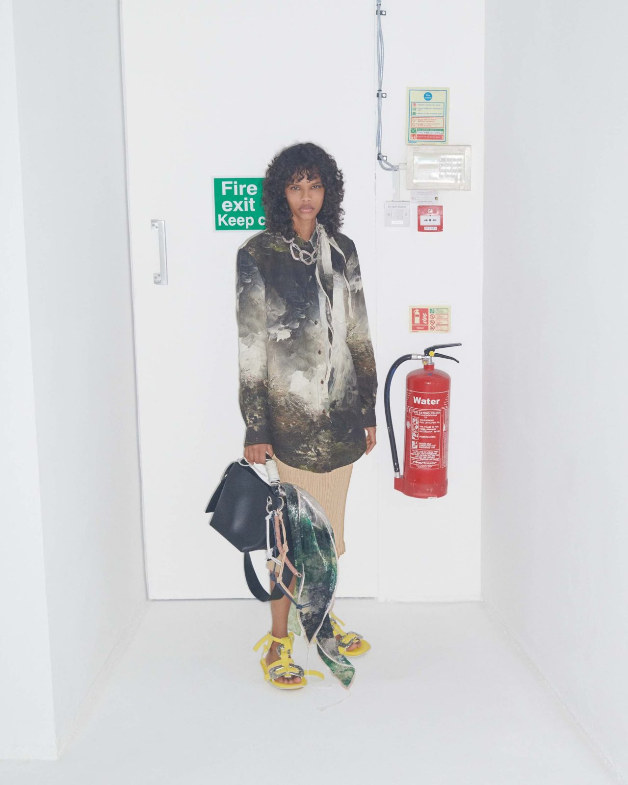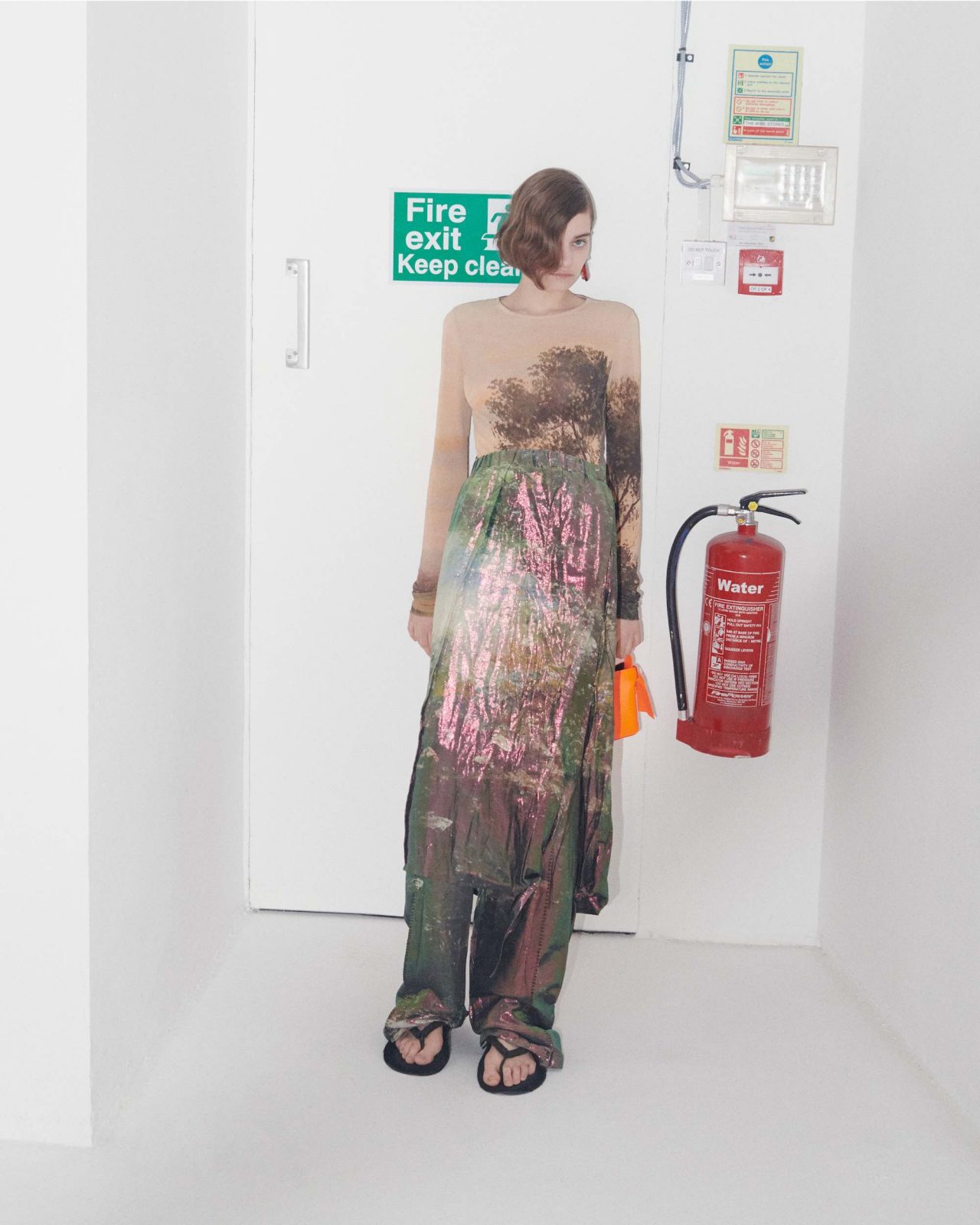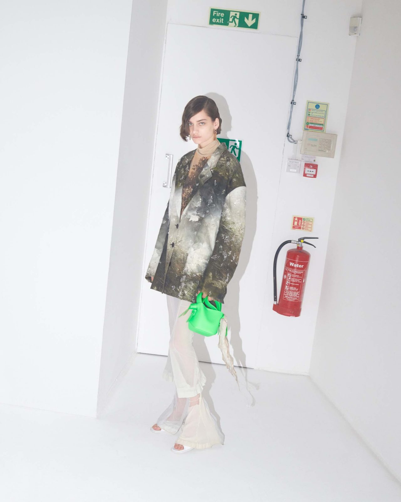 また、同シリーズのルックを着用したモデルがまるで August Strindberg の世界に溺れているようなイメージもお目見え。August Strindberg の2次元の世界と3次元の世界の両方を背景にすることでコントラストを効かせ、自然と共存する現代的な生き方の探求を試みている。