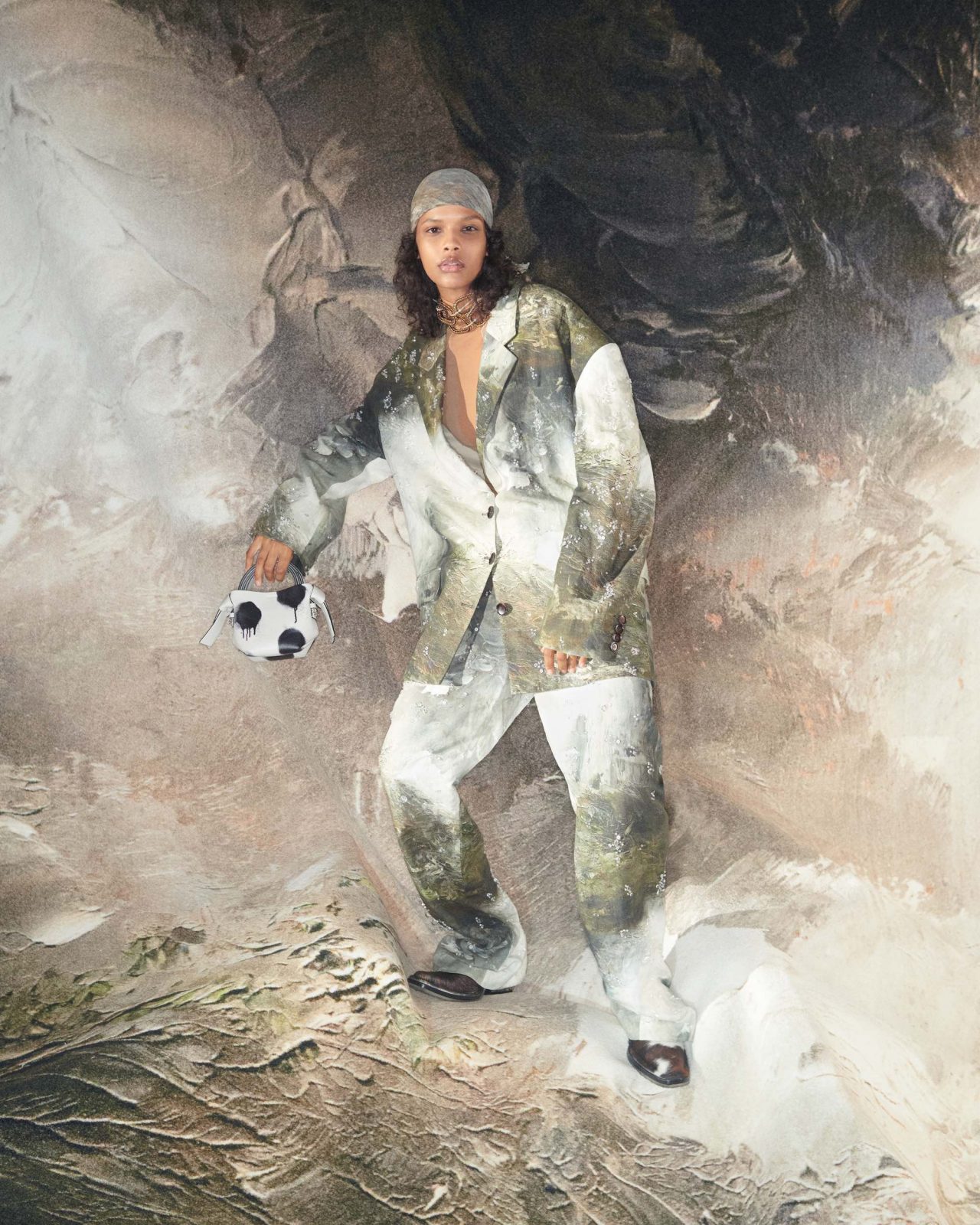 「私は August Strindberg の描く自然が大好きです。彼は作家としての活動に行き詰まった時に絵を描いていた ようですが、すなわち「自然を描く」ということは、彼の中である種の答えであったようでした。通常、絵画を 生地へプリントし、ガーメントの模様として落とし込むのは非常に難しく、ときにありきたりに、ときに露骨な ものへとなってしまいがちです。しかし、本コレクションで使用した彼のランドスケープは、コレクション全体 と非常に強い結びつきをみせ、コレクションにとって、もう一つの魅力的な側面となったのです。」