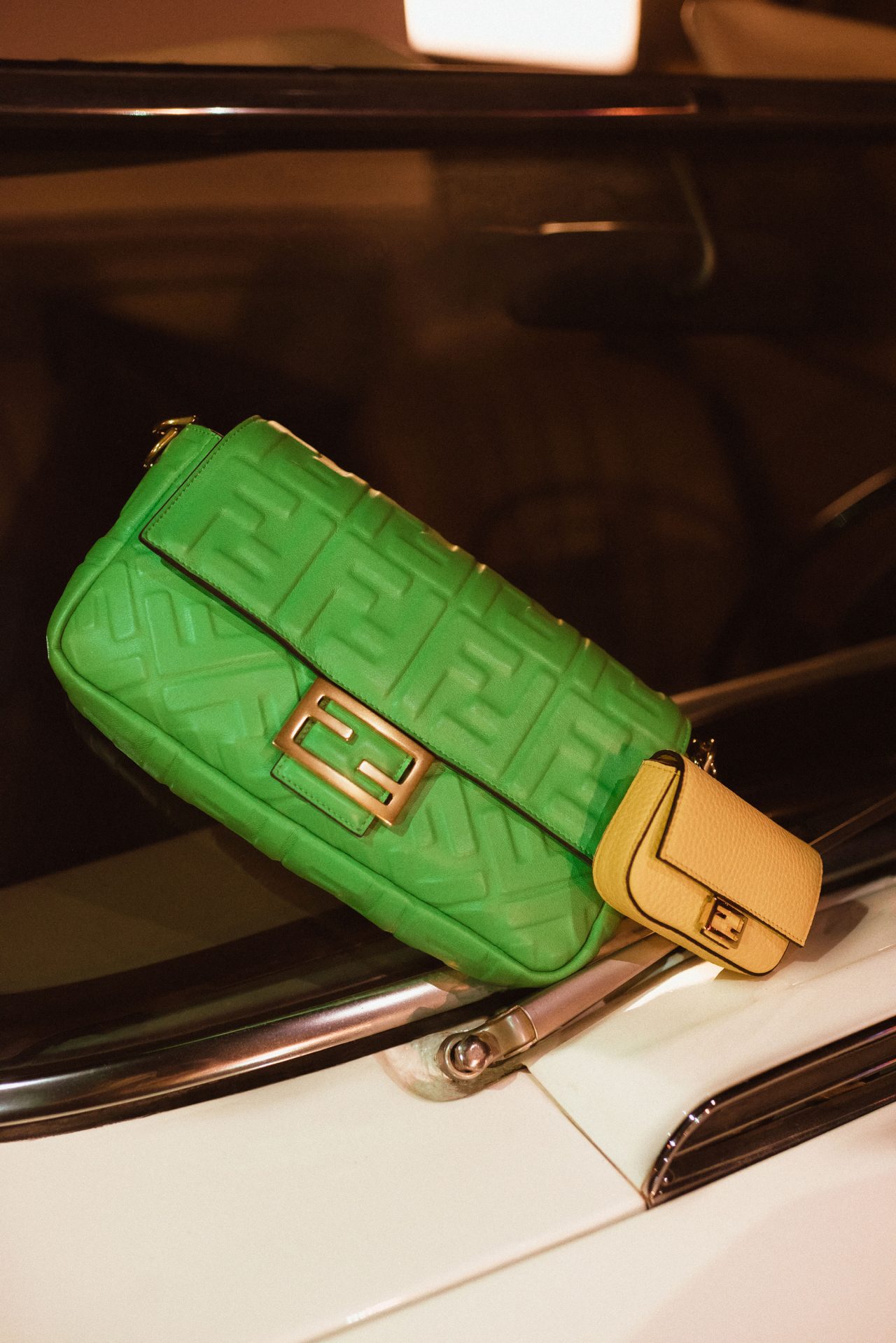 今作でフィーチャーされているパリの「Maison Francis Kurkdjian (フランシス・クルジャン)」が作り上げた FENDIFRENESIA の香りを纏った Baguette をはじめ、グリーンのFFロゴがエンボス加工で施されたタイプや、鮮やかなピンクのタオル地など様々な Baguette が登場している。アクセサリー感覚の「Nano Baguette (ナノ バゲット)」や、新作の史上最小のバッグ「Pico Baguette (ピコ バゲット)」も取り入れられ、カラフルで遊び心あふれるスタイリングも見どころ。