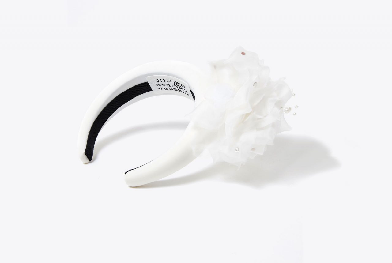 「ベッド・イン」は、ベトナム戦争中である1969年3月に結婚した John Lennon とオノ・ヨーコがハネムーンの際に行った平和のためのパフォーマンス。今回、MM6 からお目見えしたコレクションもウェディングを彷彿とさせるハッピーな要素が満載。ひとつのガーメントから様々なアイデンティティを読み解く二面性のコンセプトがさらに追求され、イギリスと日本の伝統や、ウェディングにまつわる様々なシーンを想起させる素材やディテールなどがコレクションに取り入れられている。Tシャツやデニム、トラックパンツといったデイリーに活躍してくれるアイテムから、タキシードジャケットやドレスといったフォーマルなピースまで、MM6 によって提案された自由でモダンなウェディングスタイルが揃う。