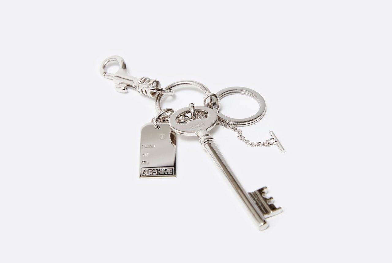 また、ミラノで開催されたプレゼンテーションのコンセプトを反映させた空間も出現。ウェディングアーチやケーキ、純白の什器で彩られた空間に、ウェディングのスピリットを連想させるコサージュのディテールやブーケのプリントをあしらったコートやシャツ、ウェディングの風習や伝統をユーモラスに取り入れた缶モチーフのシューズやバッグを展開。加えて、刻印されたIDタグや鍵のペンダントのチャームなどアクセサリーまでユニークでプレイフルなアイテムが登場する。