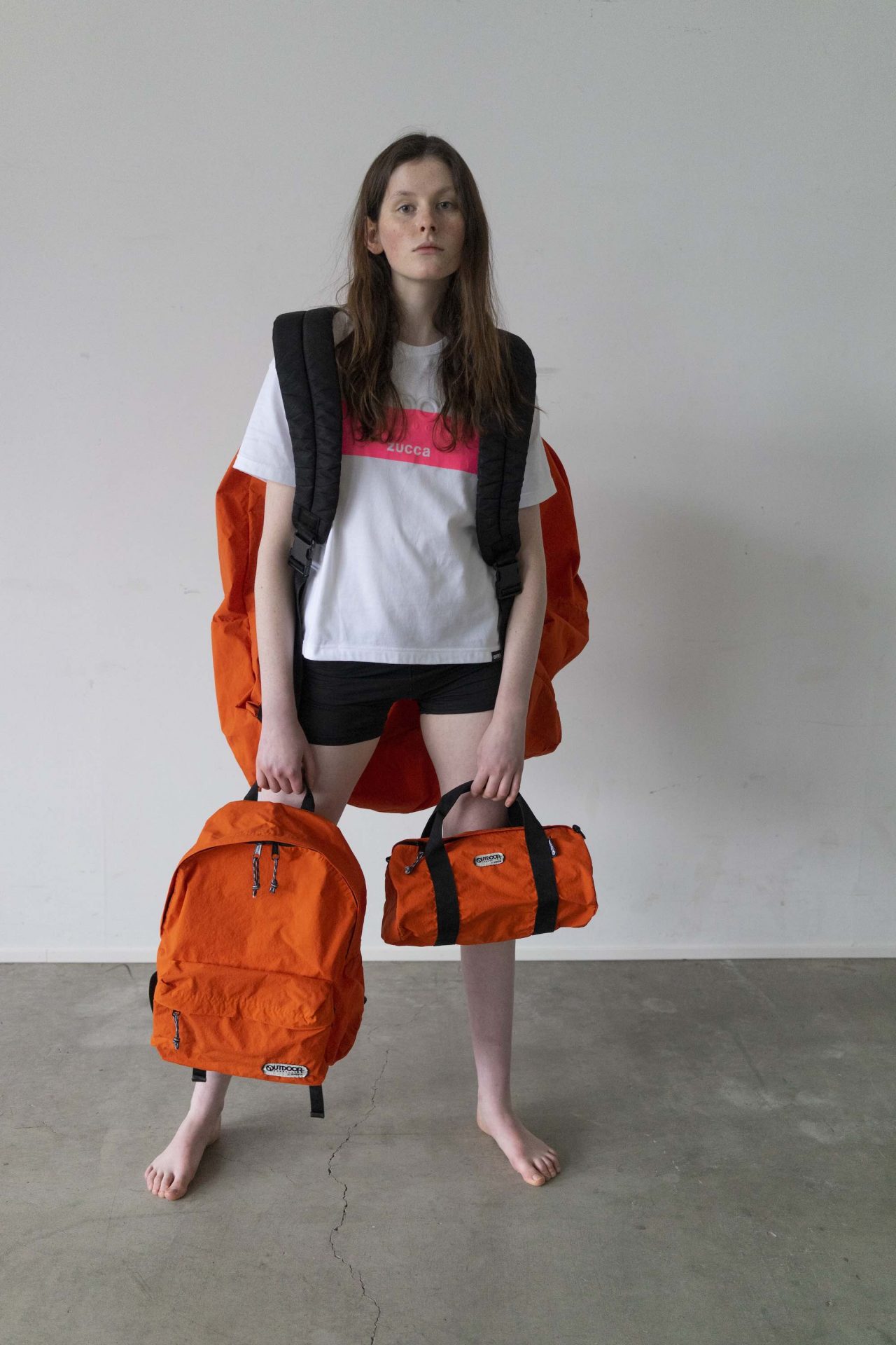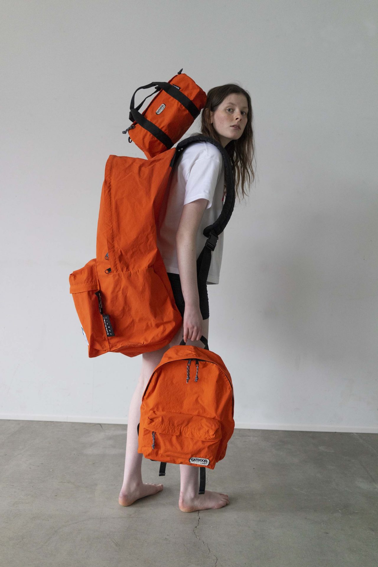 OUTDOOR PRODUCTS は、1973年にアルトシュール兄弟がアメリカ・ロサンゼルスで創業したアウトドアブランド。鮮やかな色合いの機能性抜群なバックパックでひろく知られる。今回のコラボレーションでは、この定番バッグをはじめとするバッグ2型とTシャツ2型の全4型をラインナップ。人気モデルである「452U」のデイパックと「231LRG」のダッフルバッグをベースにしたバッグは、特殊加工のナイロン素材「コンブ ナイロン(KONBU®-N)」を採用。撥水加工が施された超軽量のストレスフリーなバッグは、ハリのあるマットな風合いで長く愛用できるスタイリッシュな仕上がりに。鮮やかなオレンジ、ライトブラウンとブラックの3色で展開され、製品染めにすることで生まれる独特の色むらや風合いを楽しむこともできる。
