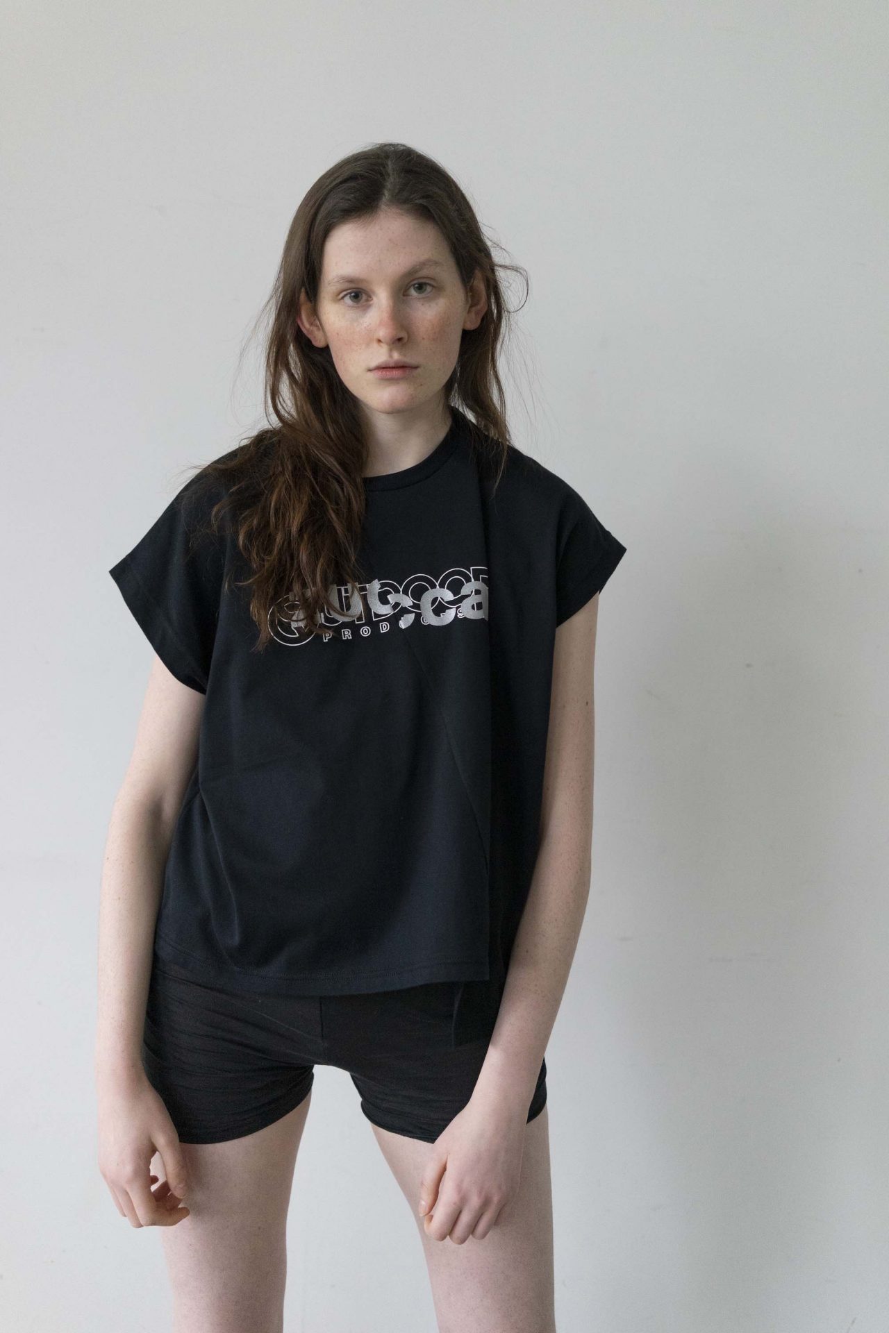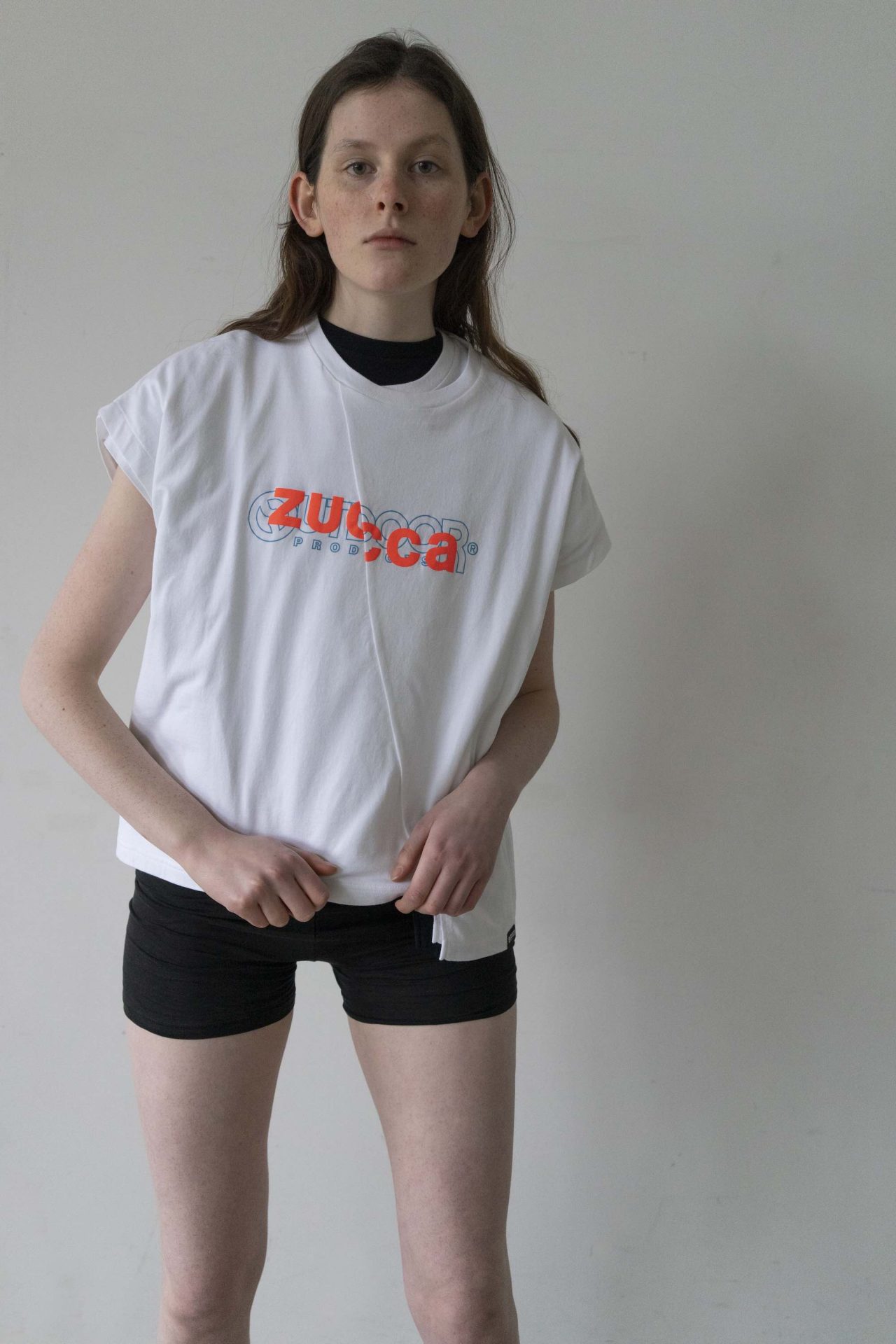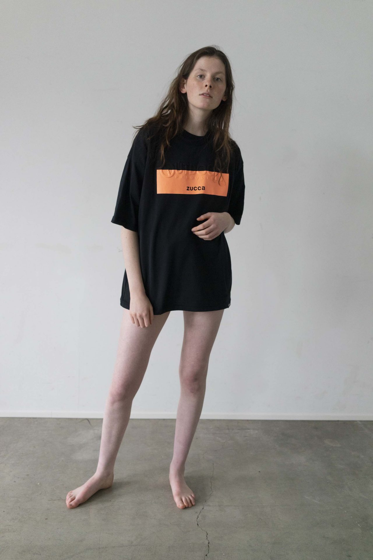 Tシャツもエンボス加工や光沢あるラバーのベタプリント、Tシャツを半分にカットして繋ぎ合わせたような変形デザインなど細部までこだわり抜かれている。