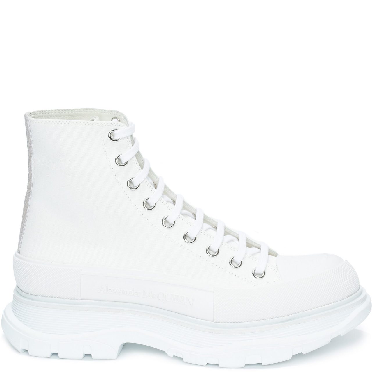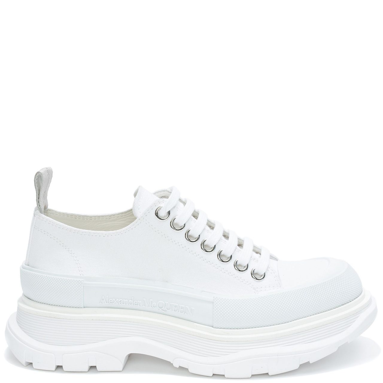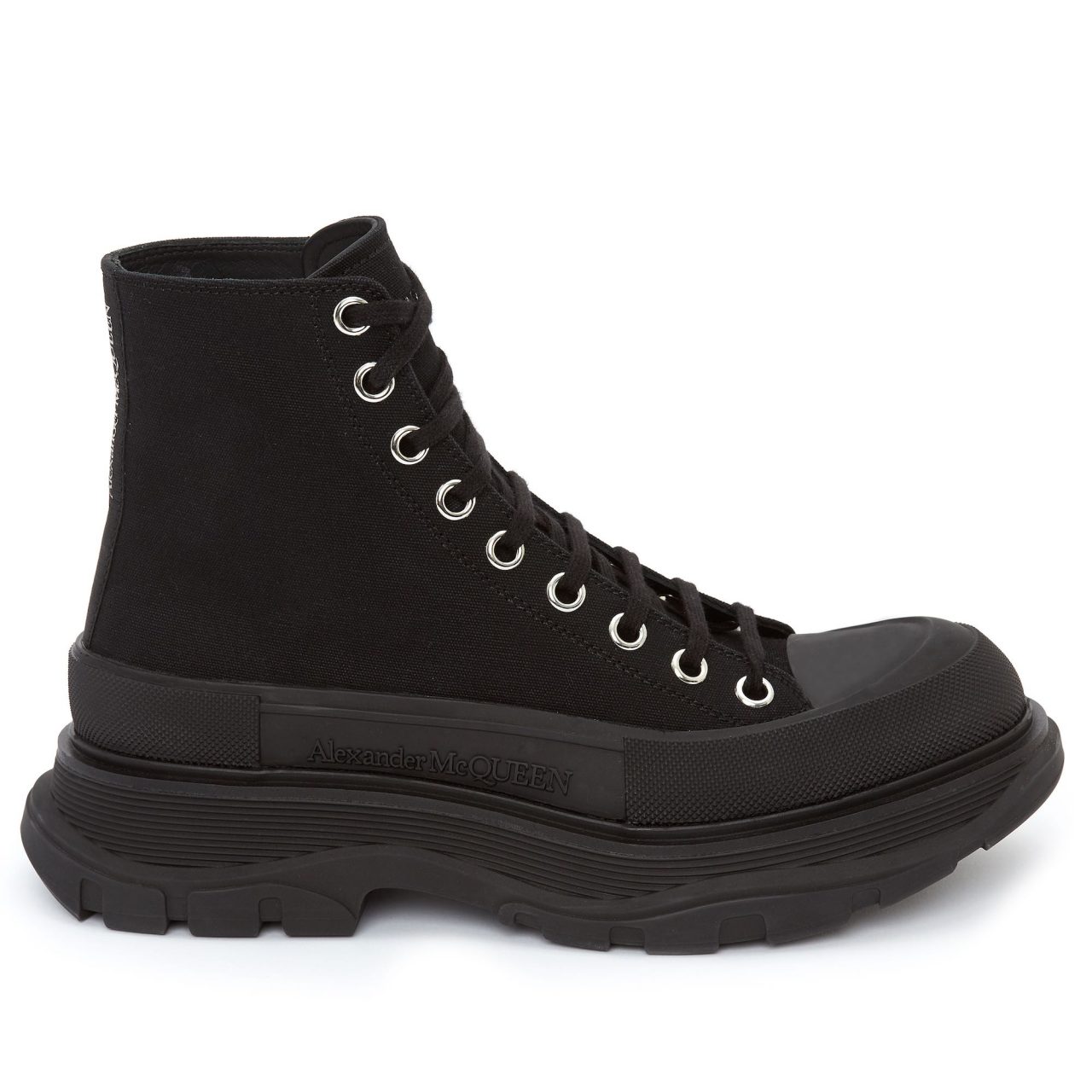 Alexander McQueen の「Tread Slick」は、2020年春夏プレコレクションでデビュー。オーバーサイズのラバーソールとキャンバス地のボディが特徴的なスニーカーで、メンズ、ウィメンズともにローカットとハイカットの2パターンで展開。そのアイコニックなルックスは発表されるやいなや、すぐに大きな注目を集めた。