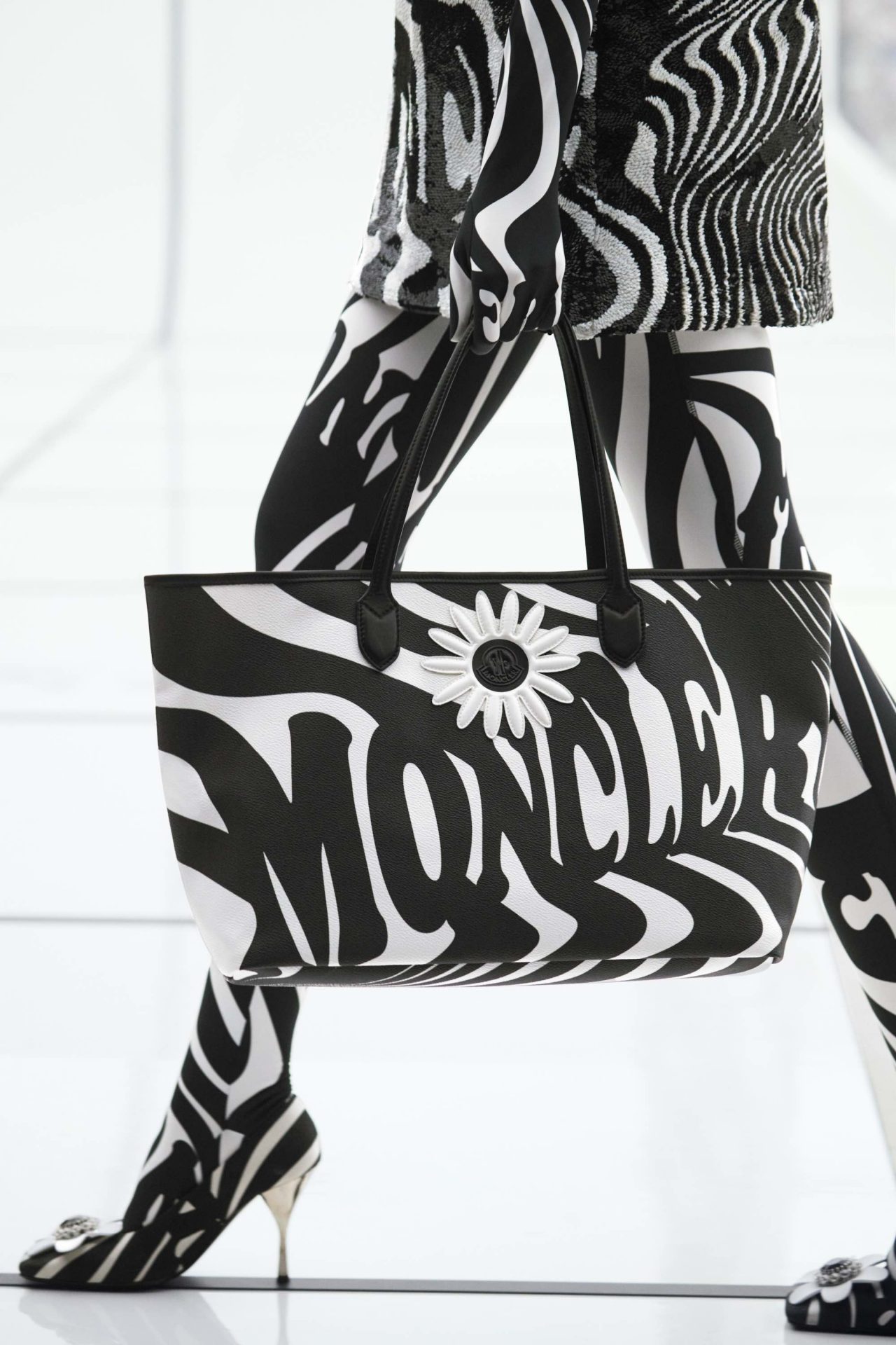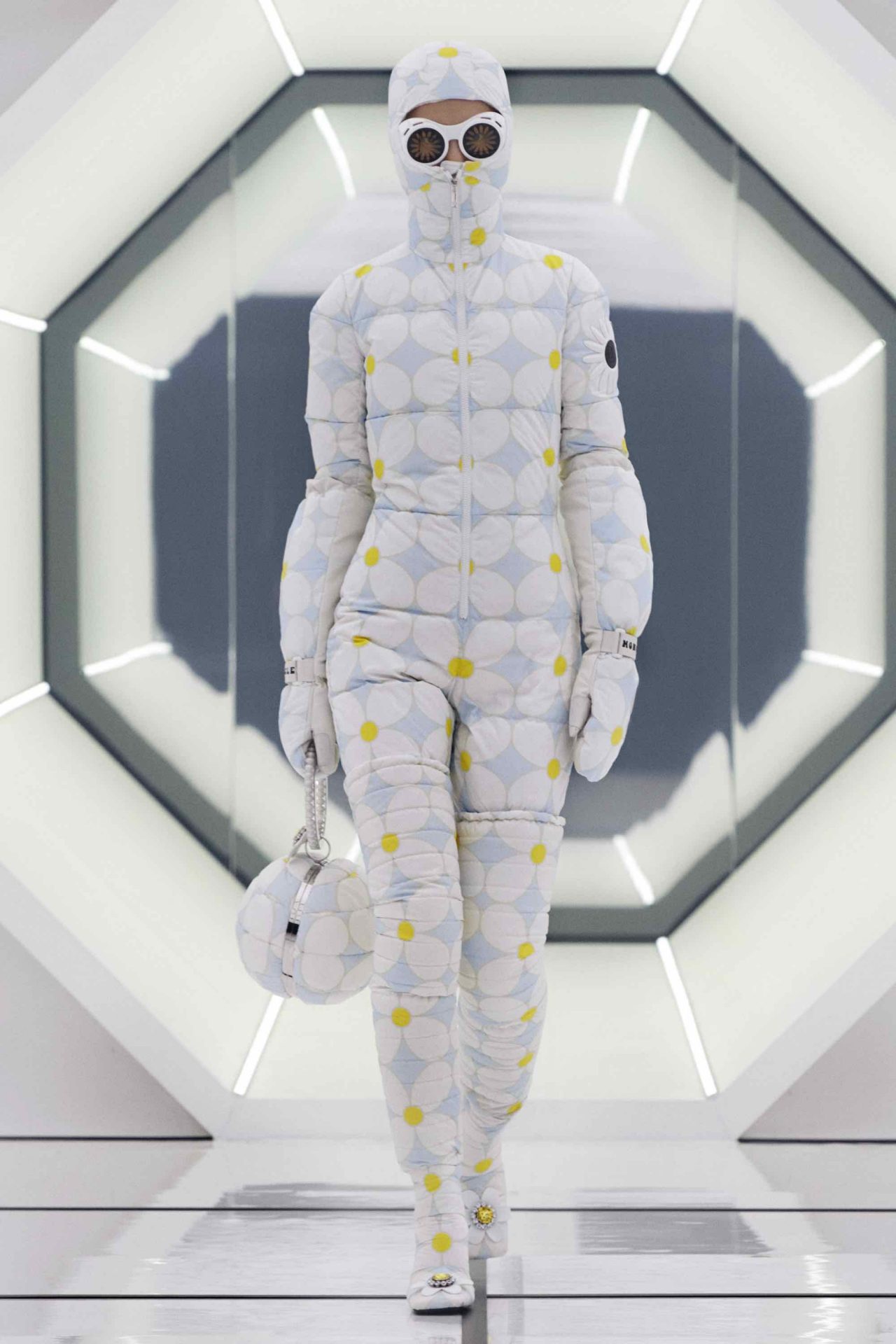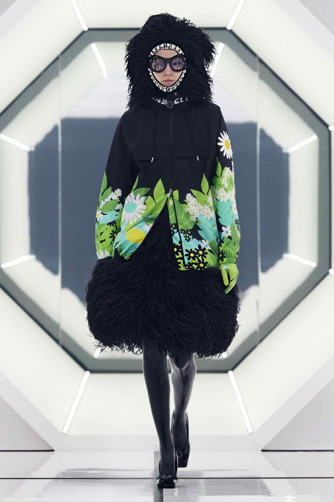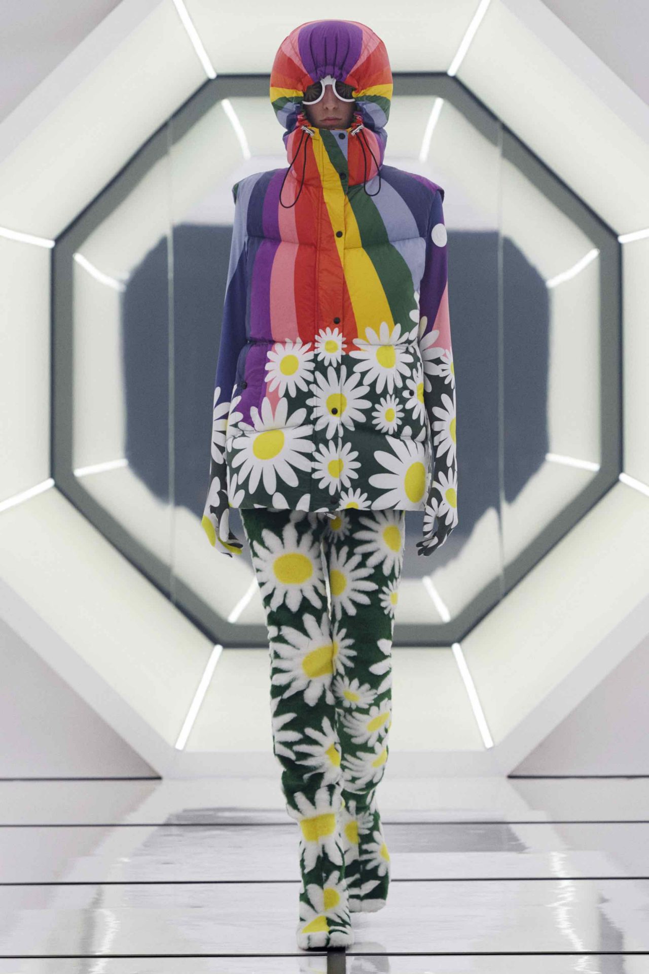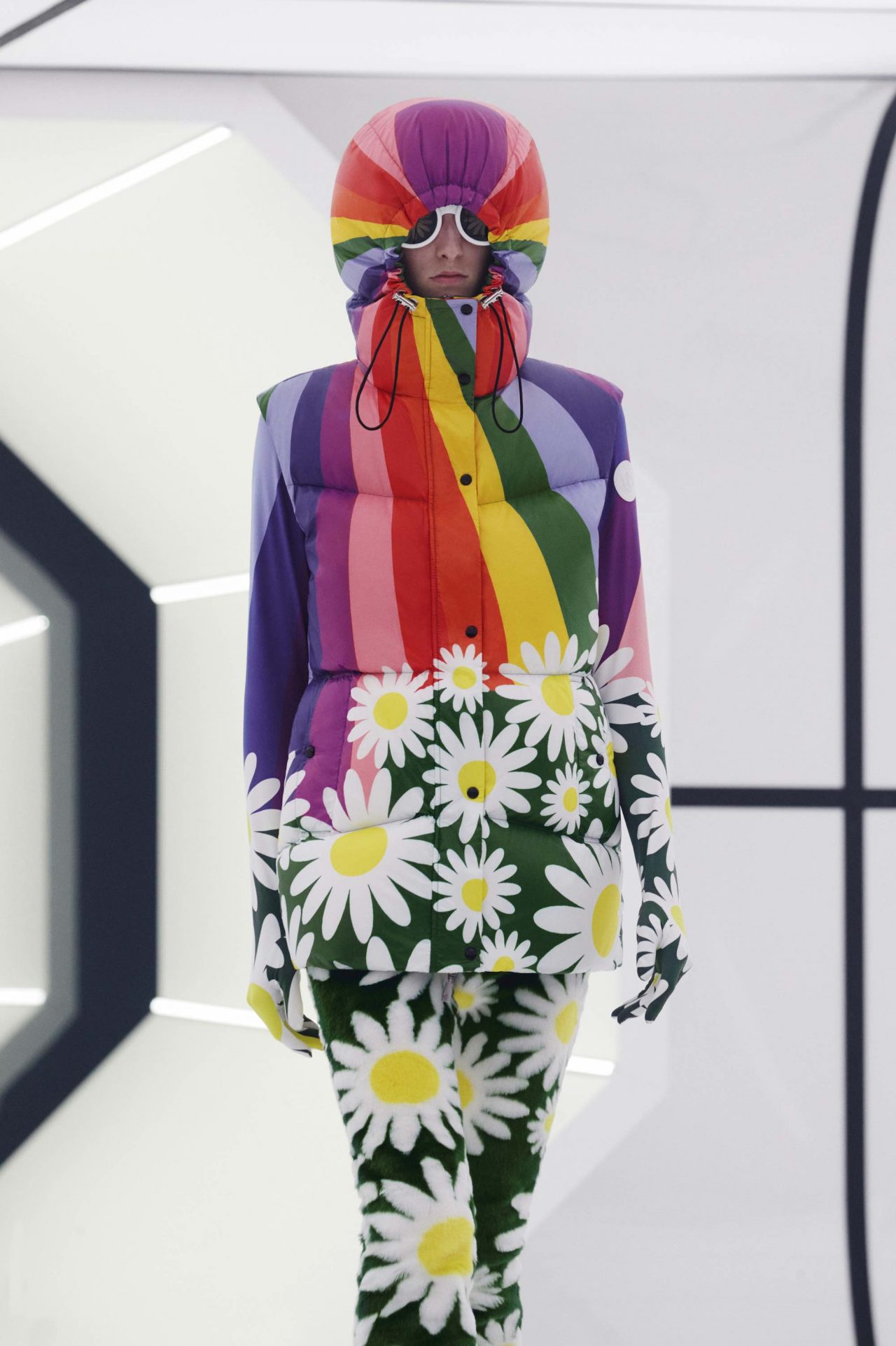 本コレクションでは、ショートでシャープなトラペーズドレスやジェムボタンのコートなど、ノン-ノスタルジックな1960年代のエレガンスへのオマージュを表現した。フラワーからゼブラモチーフ、レインボー、チェックなど、MONCLER (モンクレール) のためだけに考案された 12種類のエクスクルーシヴなプリントがコレクションを彩っている。