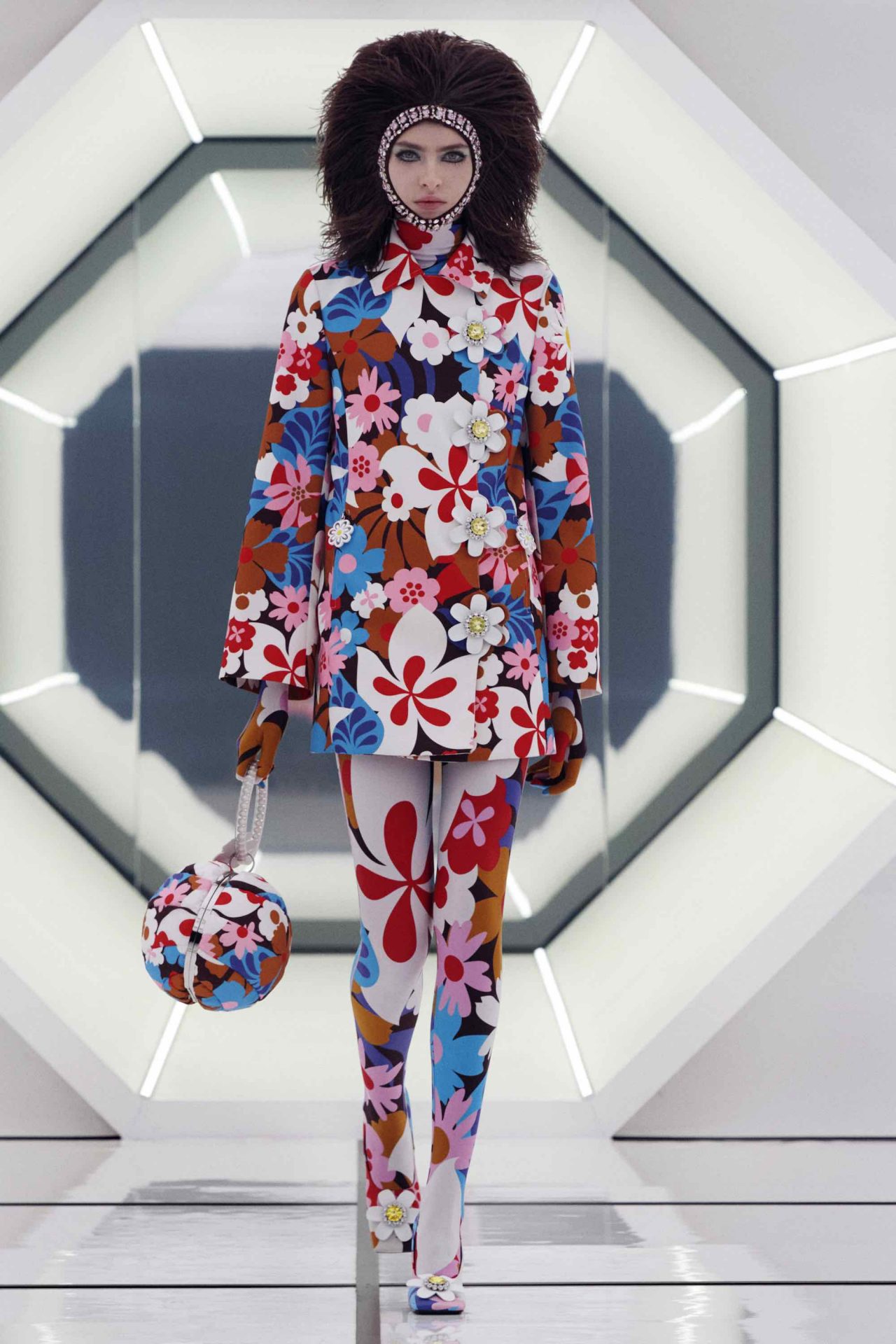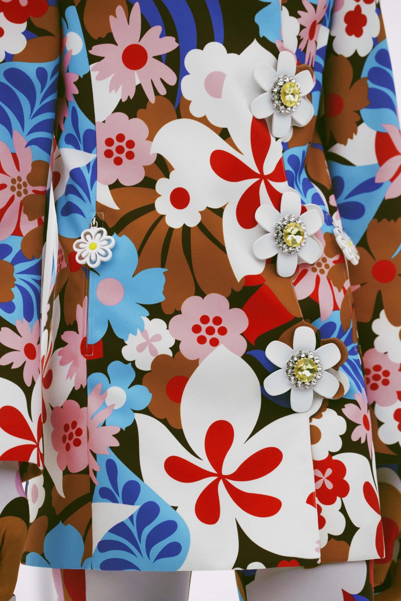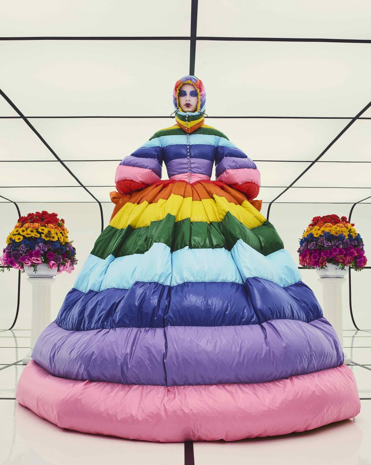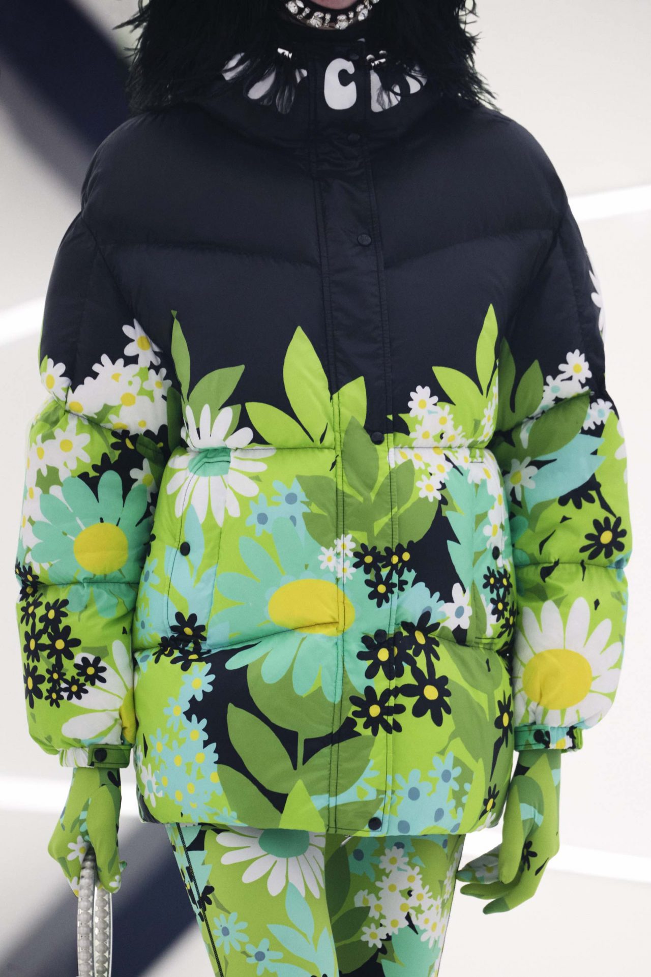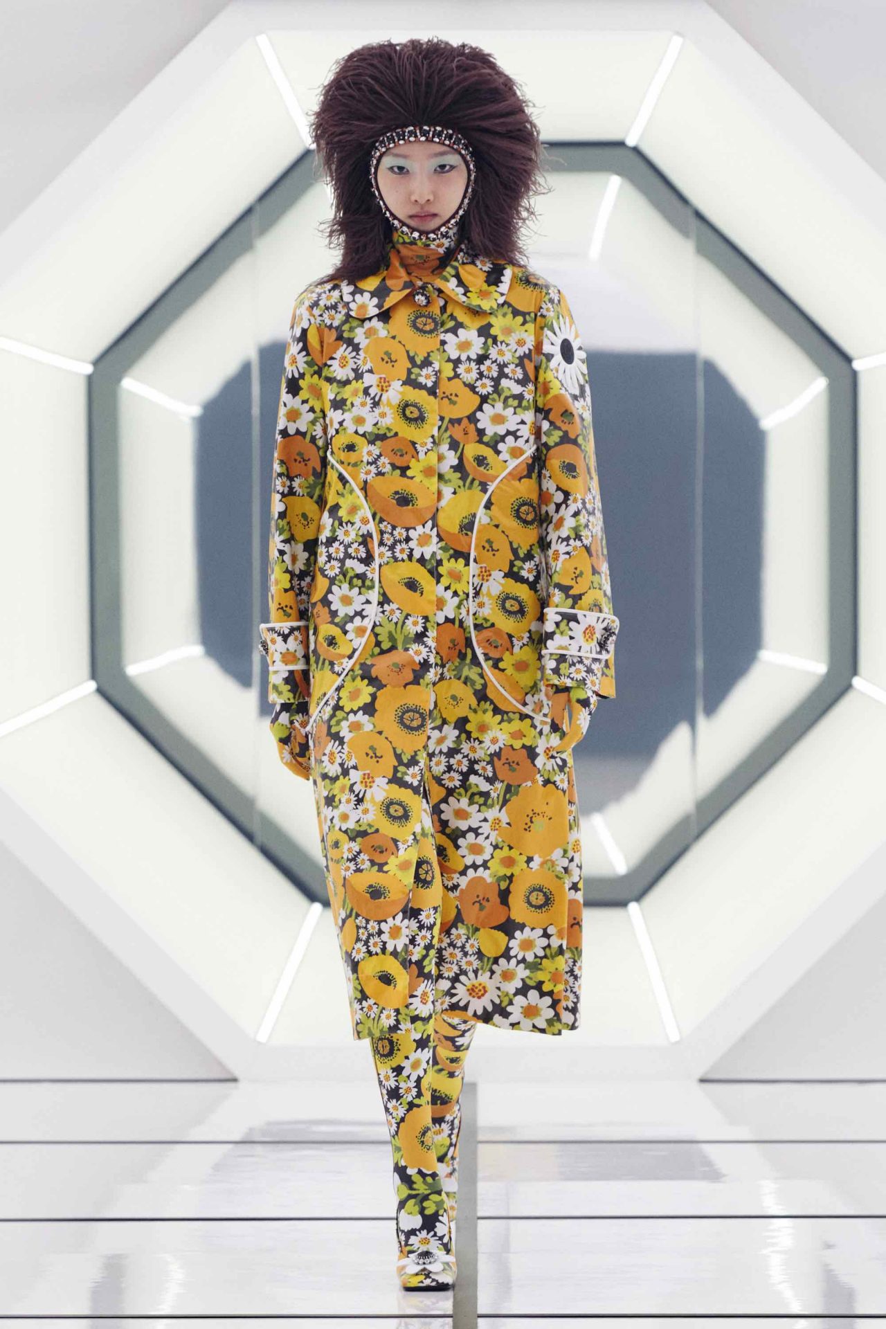 本コレクションでは、ショートでシャープなトラペーズドレスやジェムボタンのコートなど、ノン-ノスタルジックな1960年代のエレガンスへのオマージュを表現した。フラワーからゼブラモチーフ、レインボー、チェックなど、MONCLER (モンクレール) のためだけに考案された 12種類のエクスクルーシヴなプリントがコレクションを彩っている。