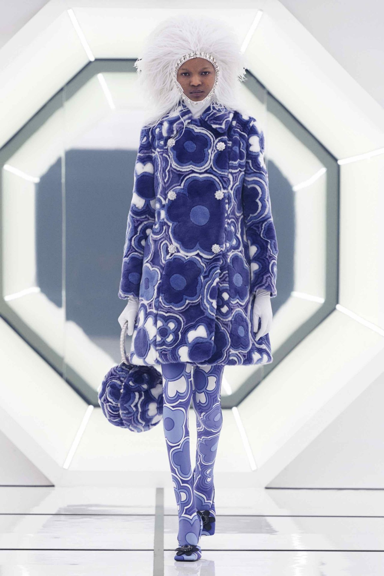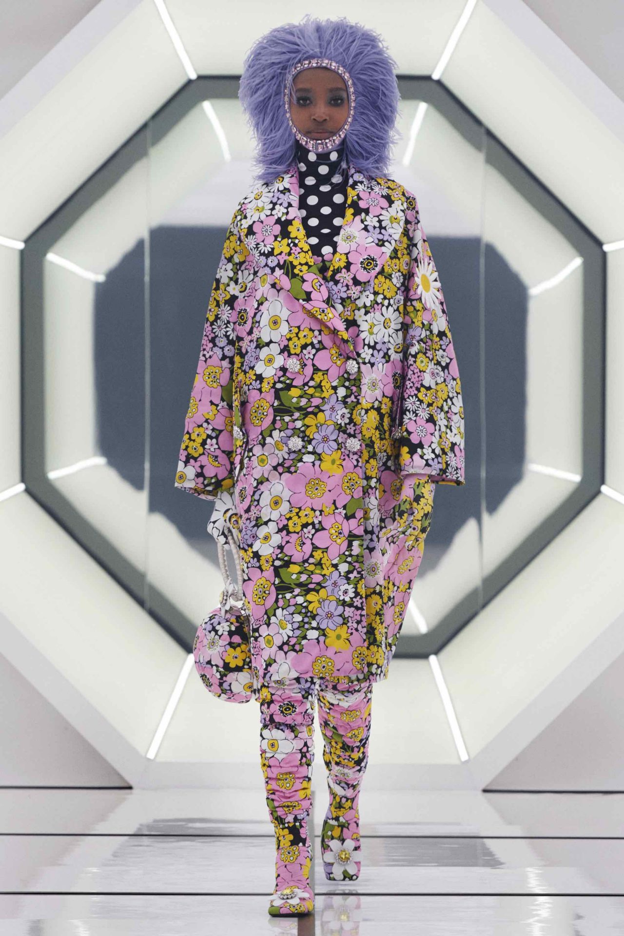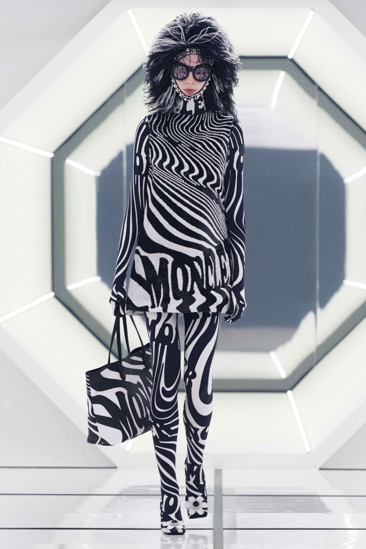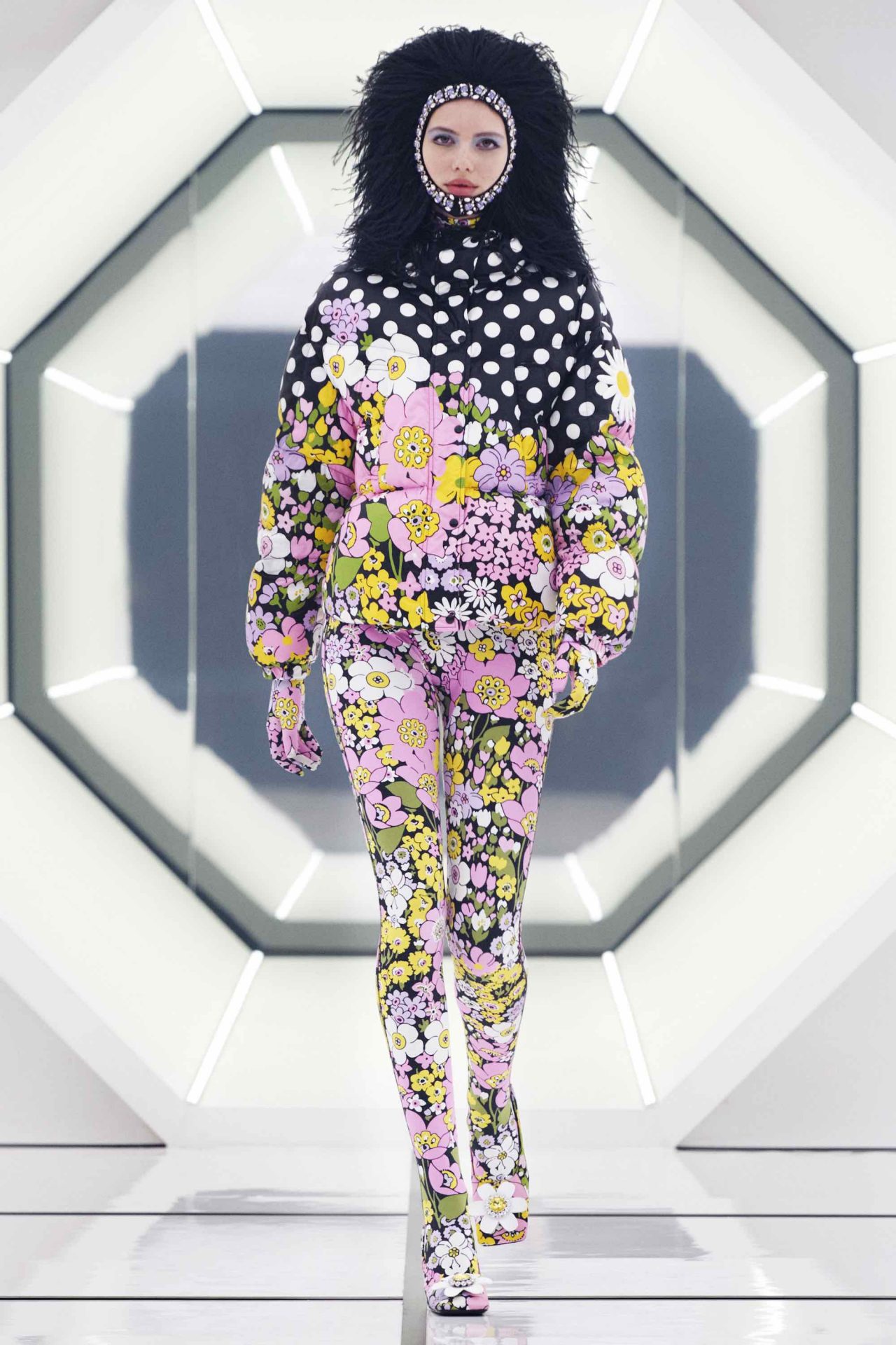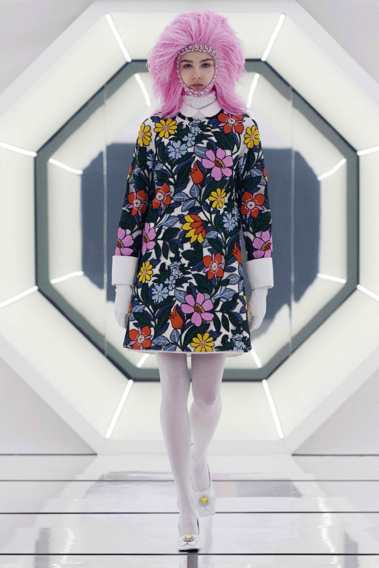 本コレクションでは、ショートでシャープなトラペーズドレスやジェムボタンのコートなど、ノン-ノスタルジックな1960年代のエレガンスへのオマージュを表現した。フラワーからゼブラモチーフ、レインボー、チェックなど、MONCLER (モンクレール) のためだけに考案された 12種類のエクスクルーシヴなプリントがコレクションを彩っている。