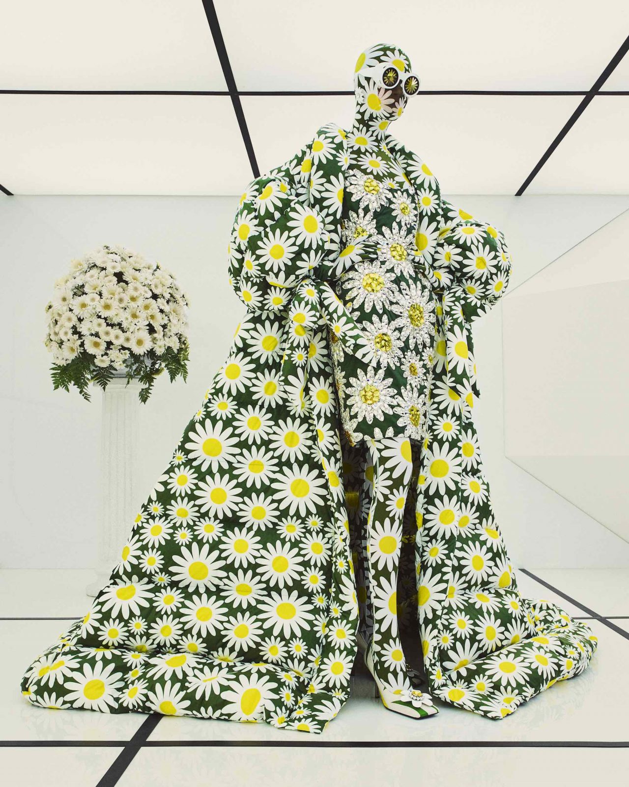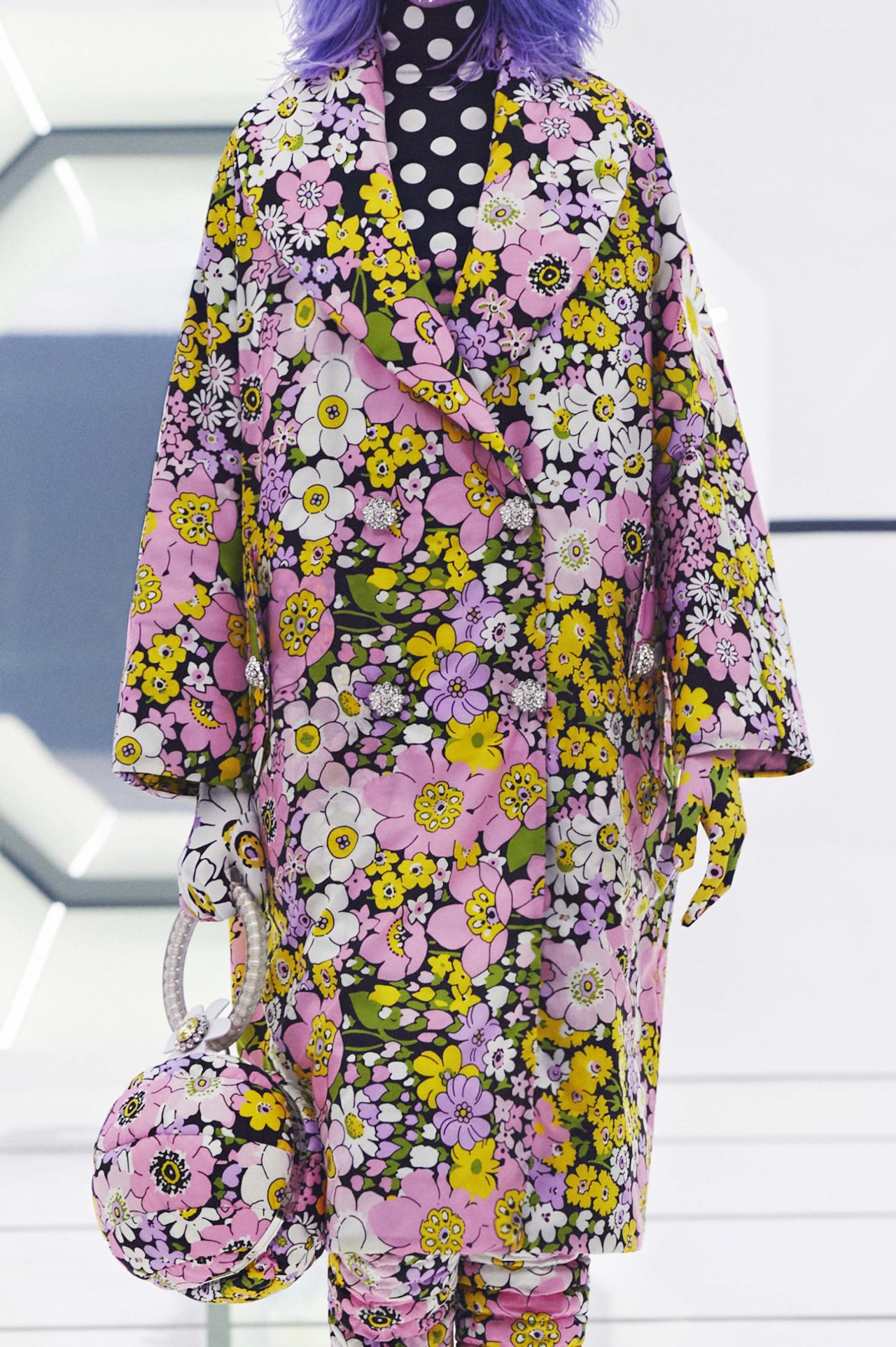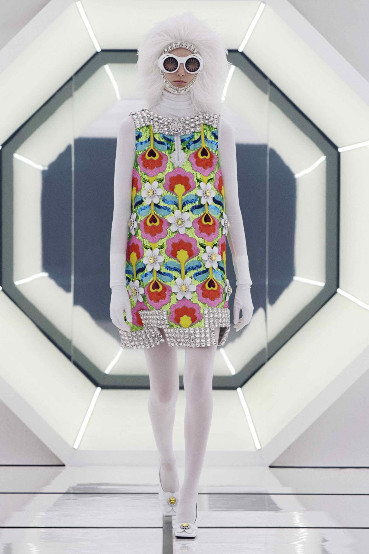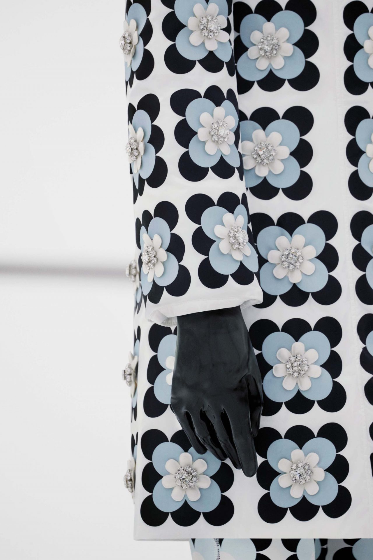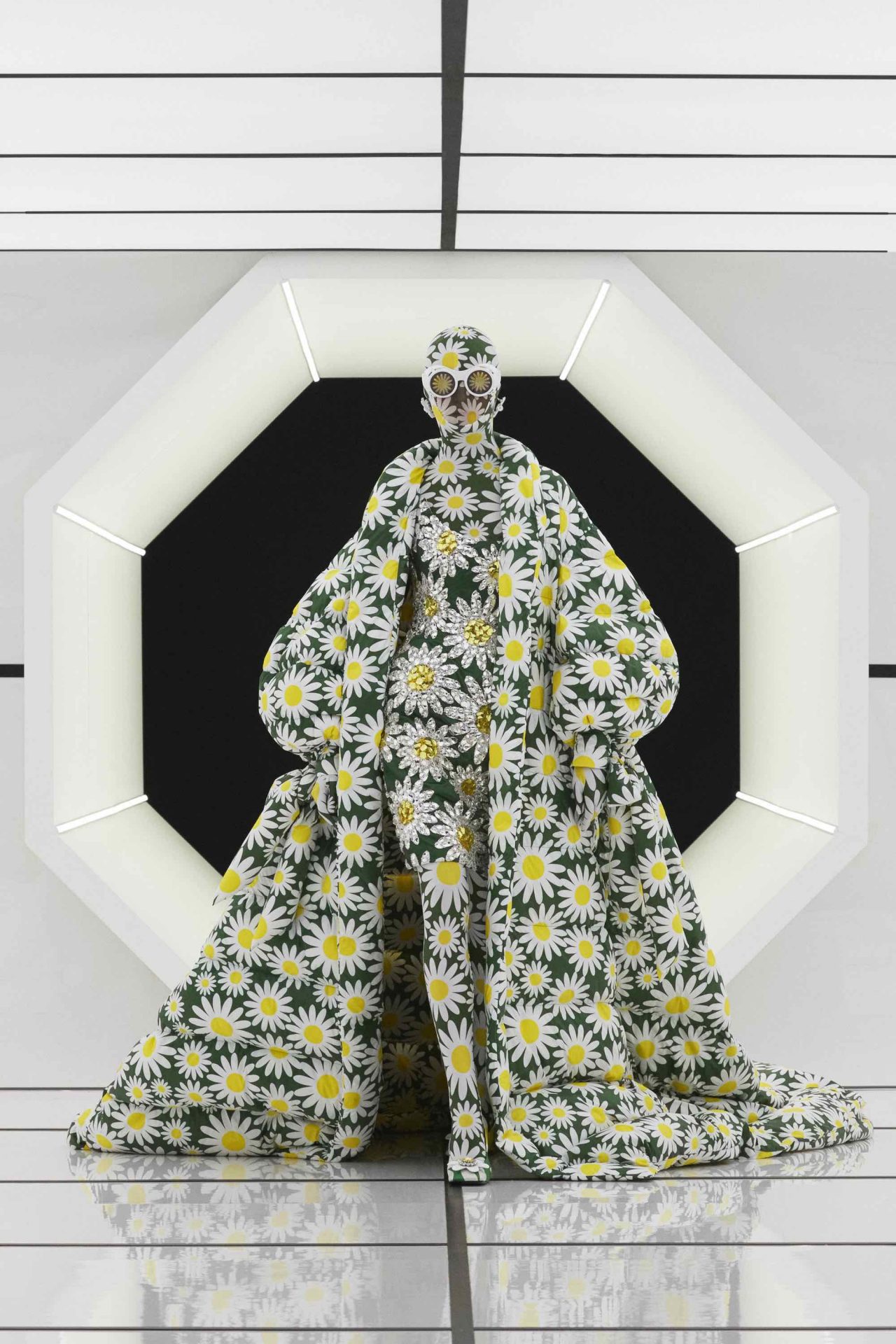 本コレクションでは、ショートでシャープなトラペーズドレスやジェムボタンのコートなど、ノン-ノスタルジックな1960年代のエレガンスへのオマージュを表現した。フラワーからゼブラモチーフ、レインボー、チェックなど、MONCLER (モンクレール) のためだけに考案された 12種類のエクスクルーシヴなプリントがコレクションを彩っている。