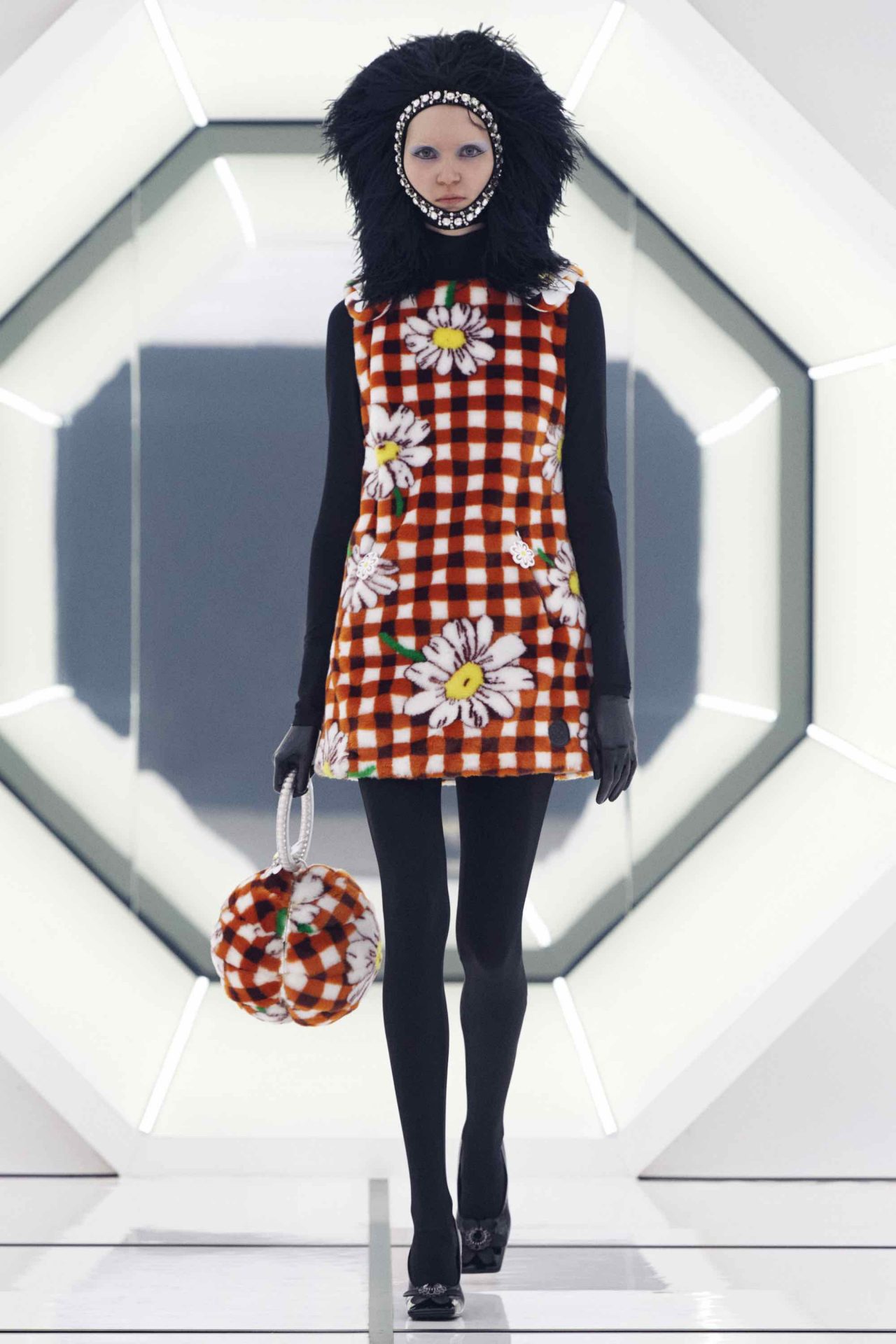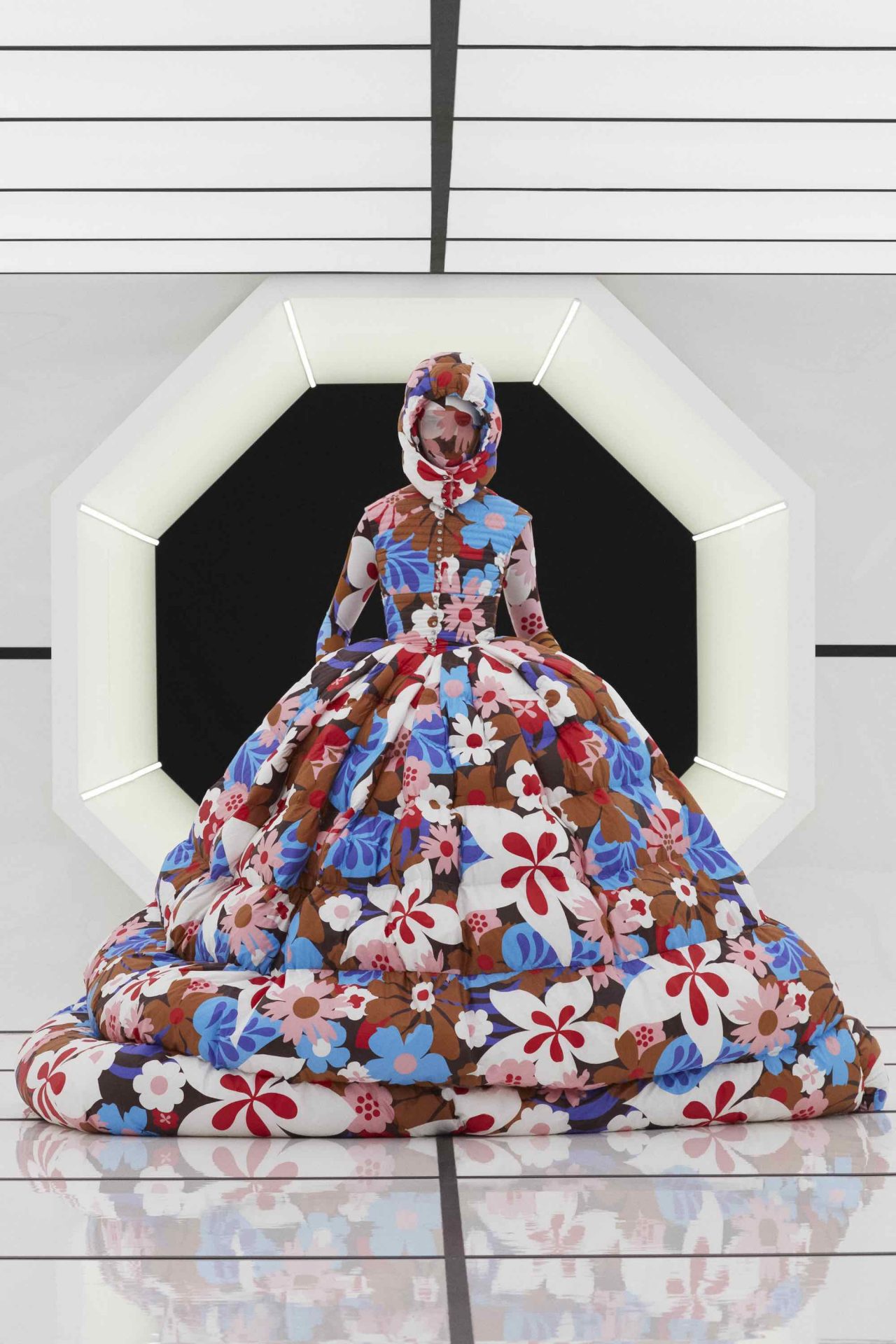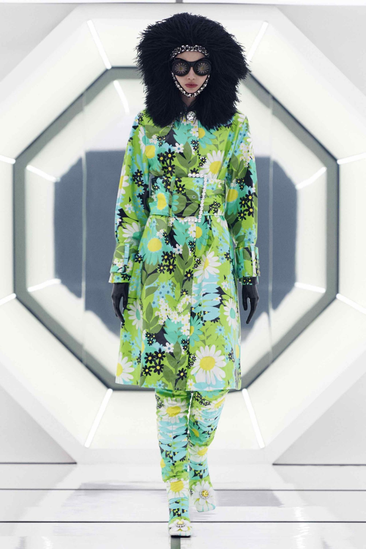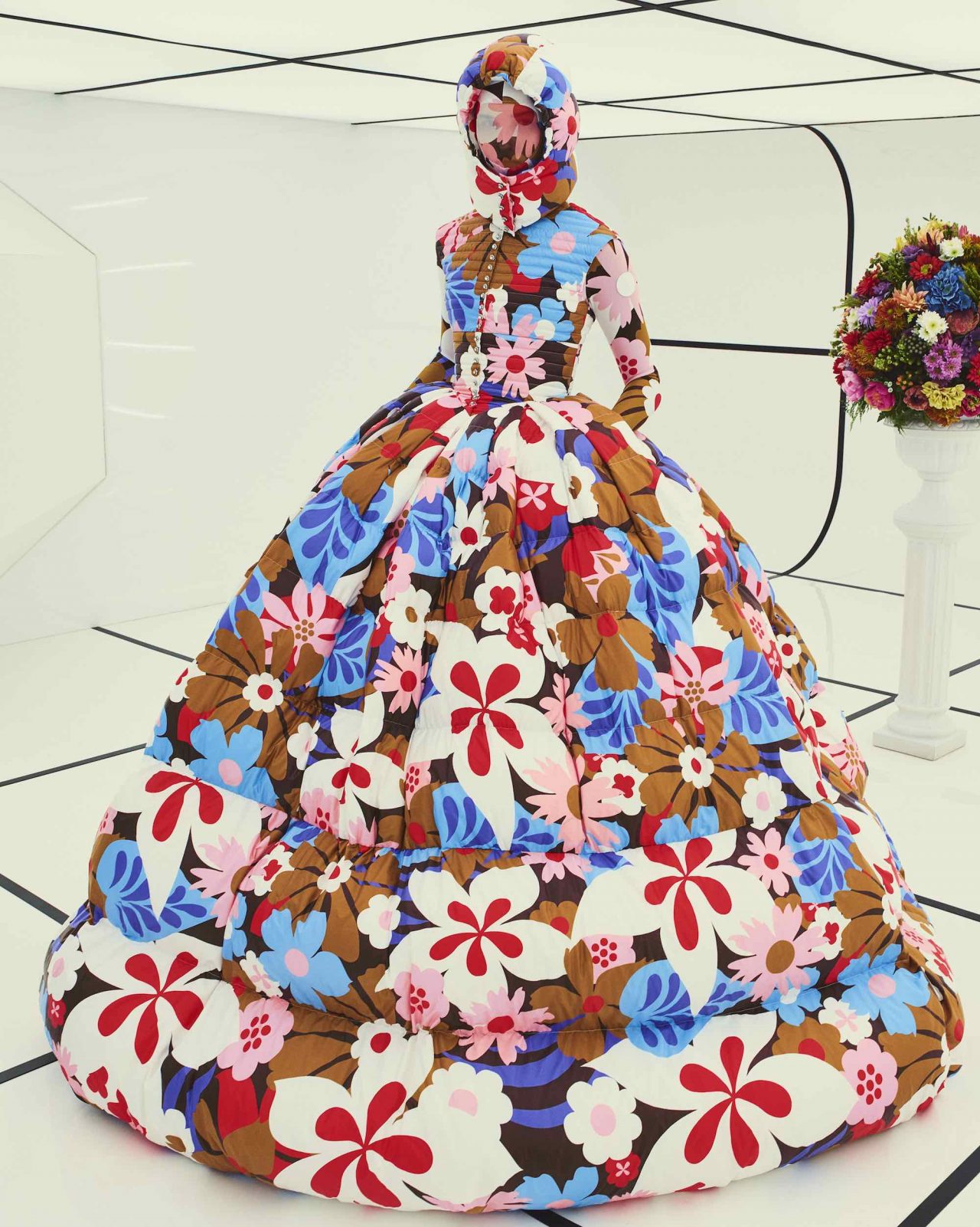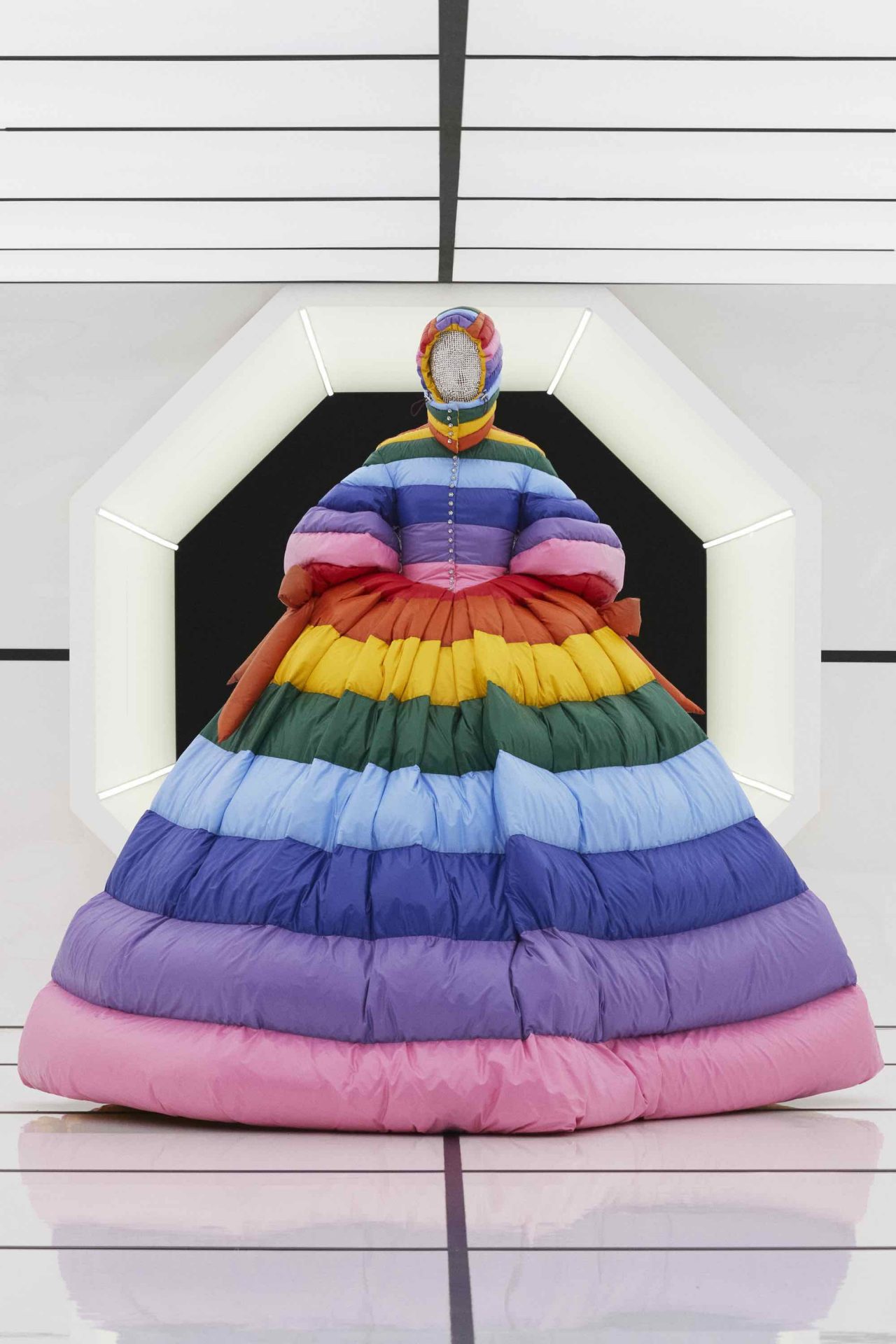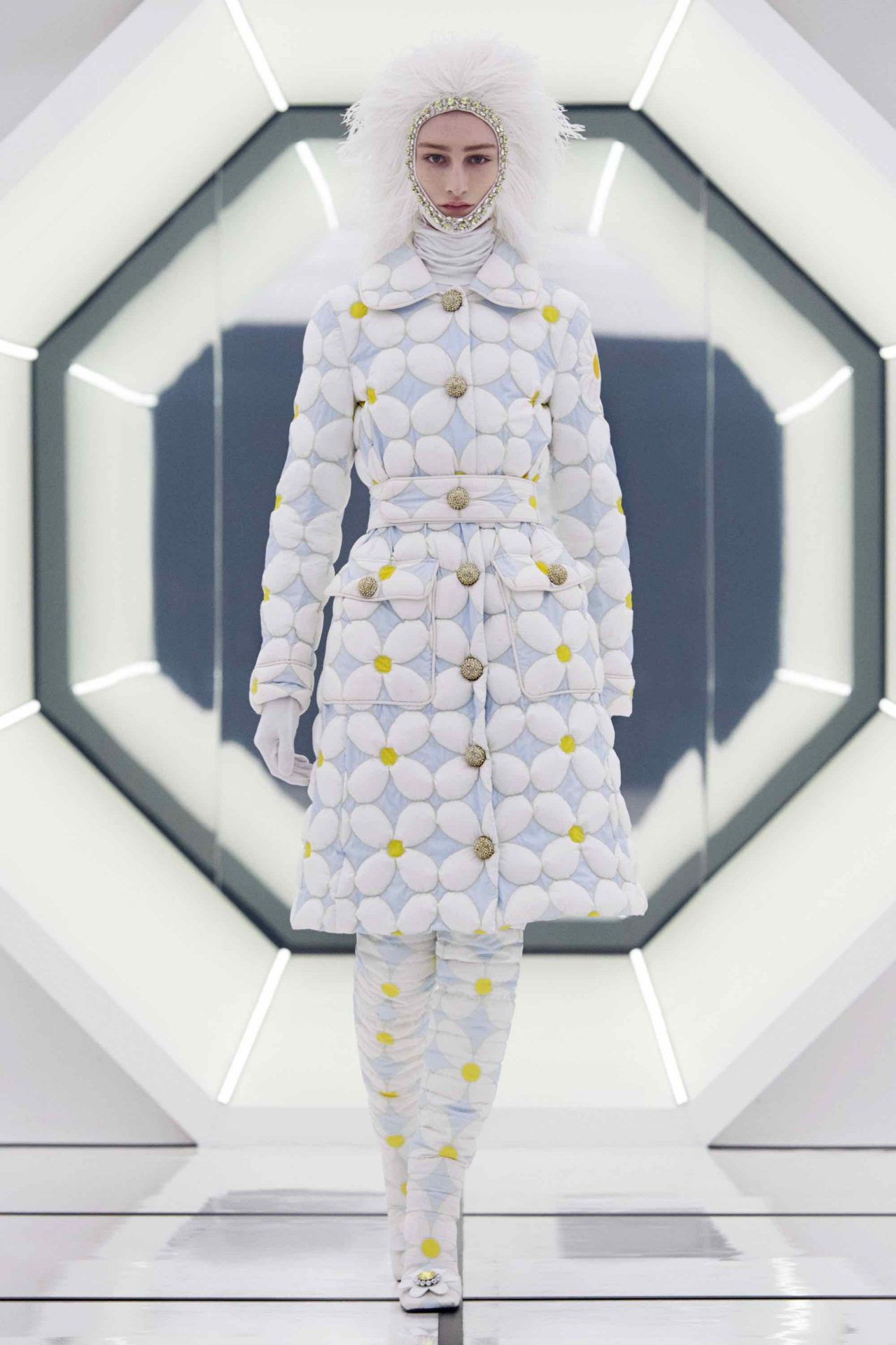 本コレクションでは、ショートでシャープなトラペーズドレスやジェムボタンのコートなど、ノン-ノスタルジックな1960年代のエレガンスへのオマージュを表現した。フラワーからゼブラモチーフ、レインボー、チェックなど、MONCLER (モンクレール) のためだけに考案された 12種類のエクスクルーシヴなプリントがコレクションを彩っている。