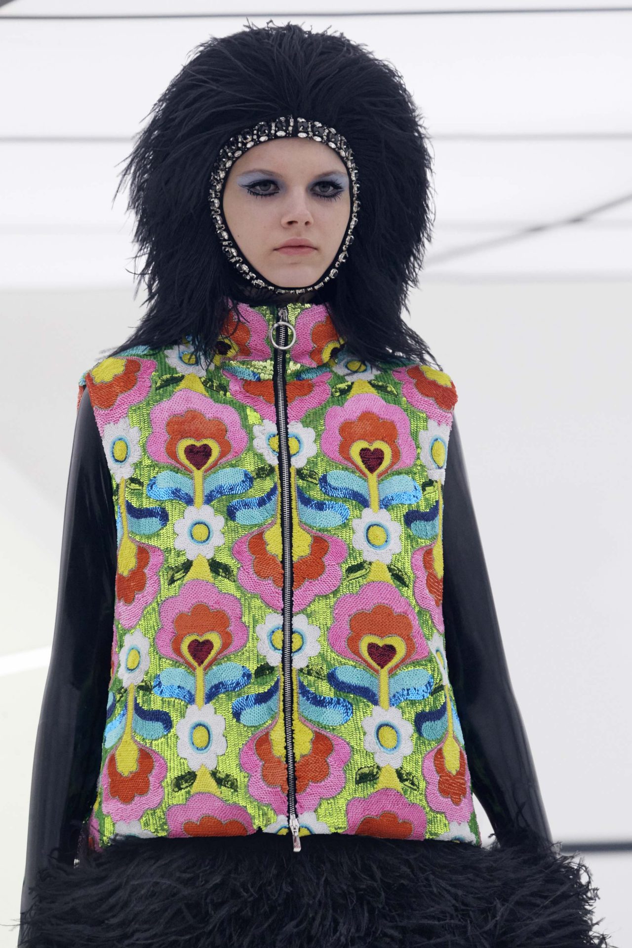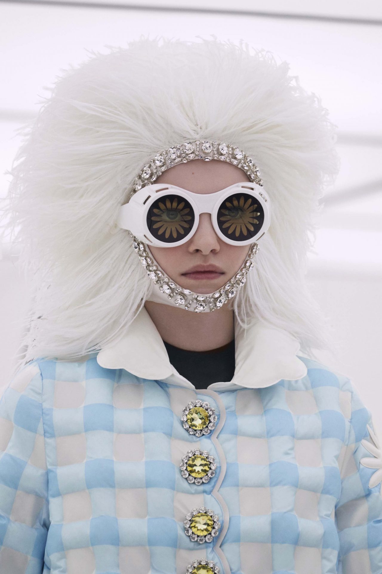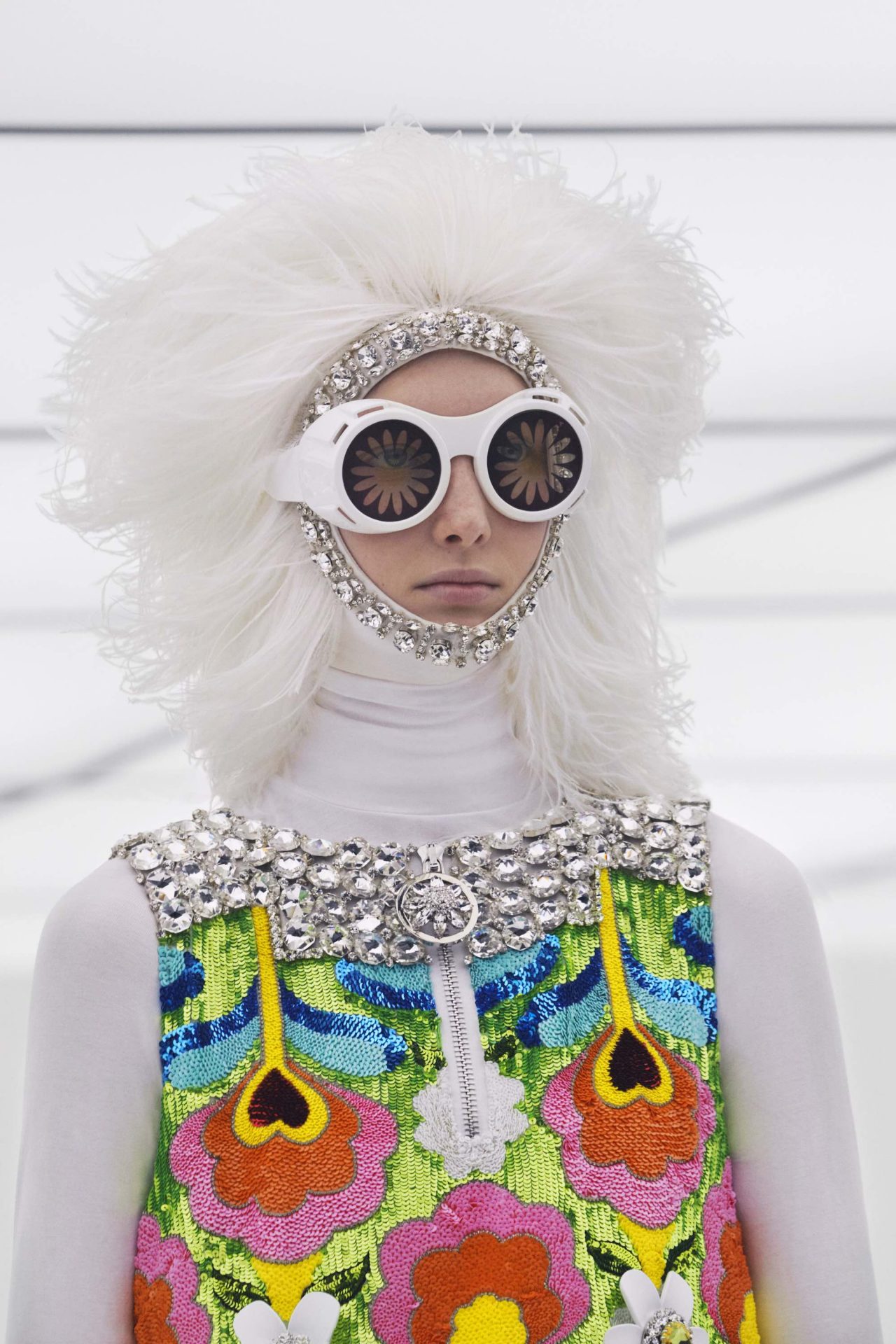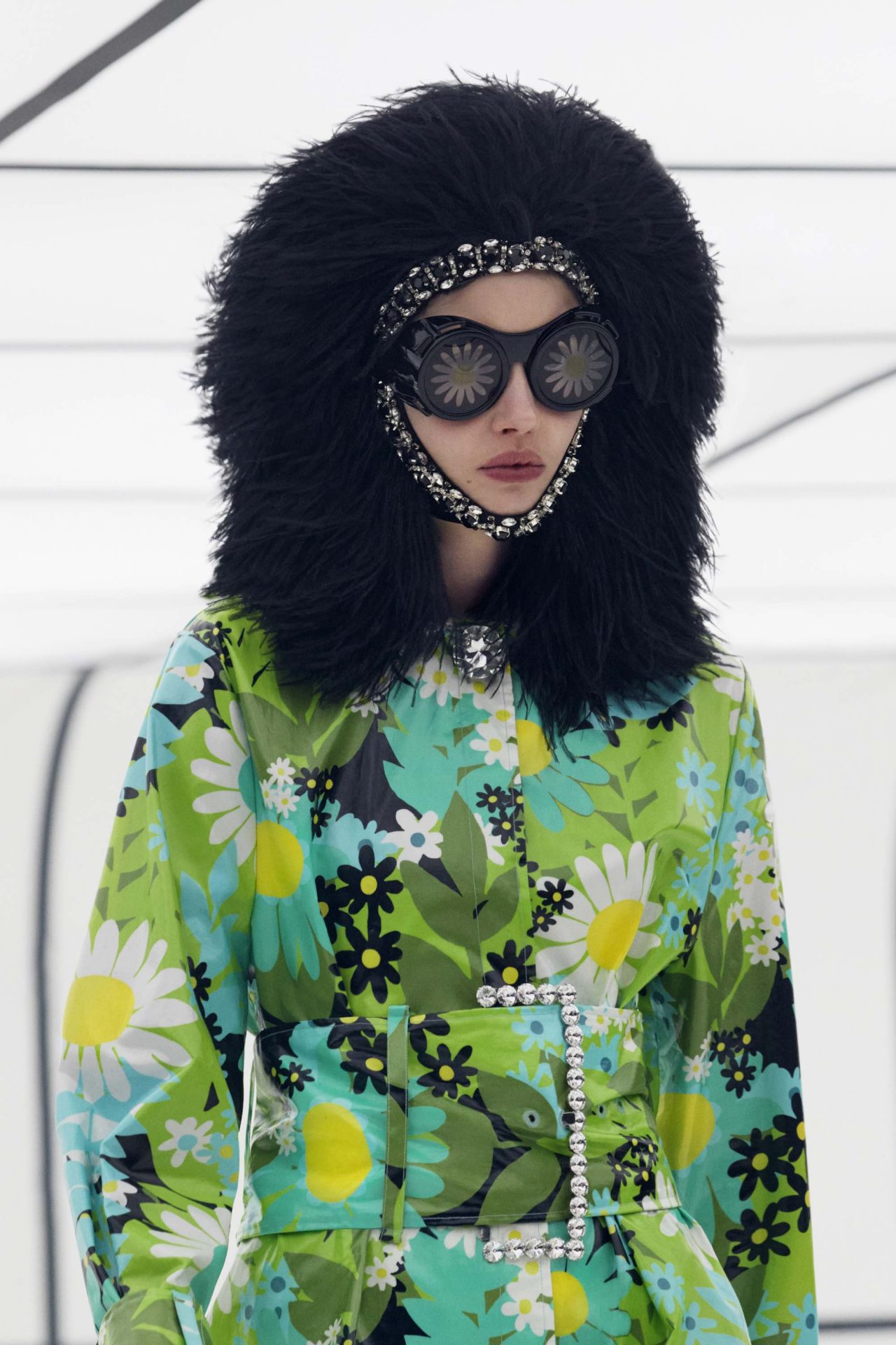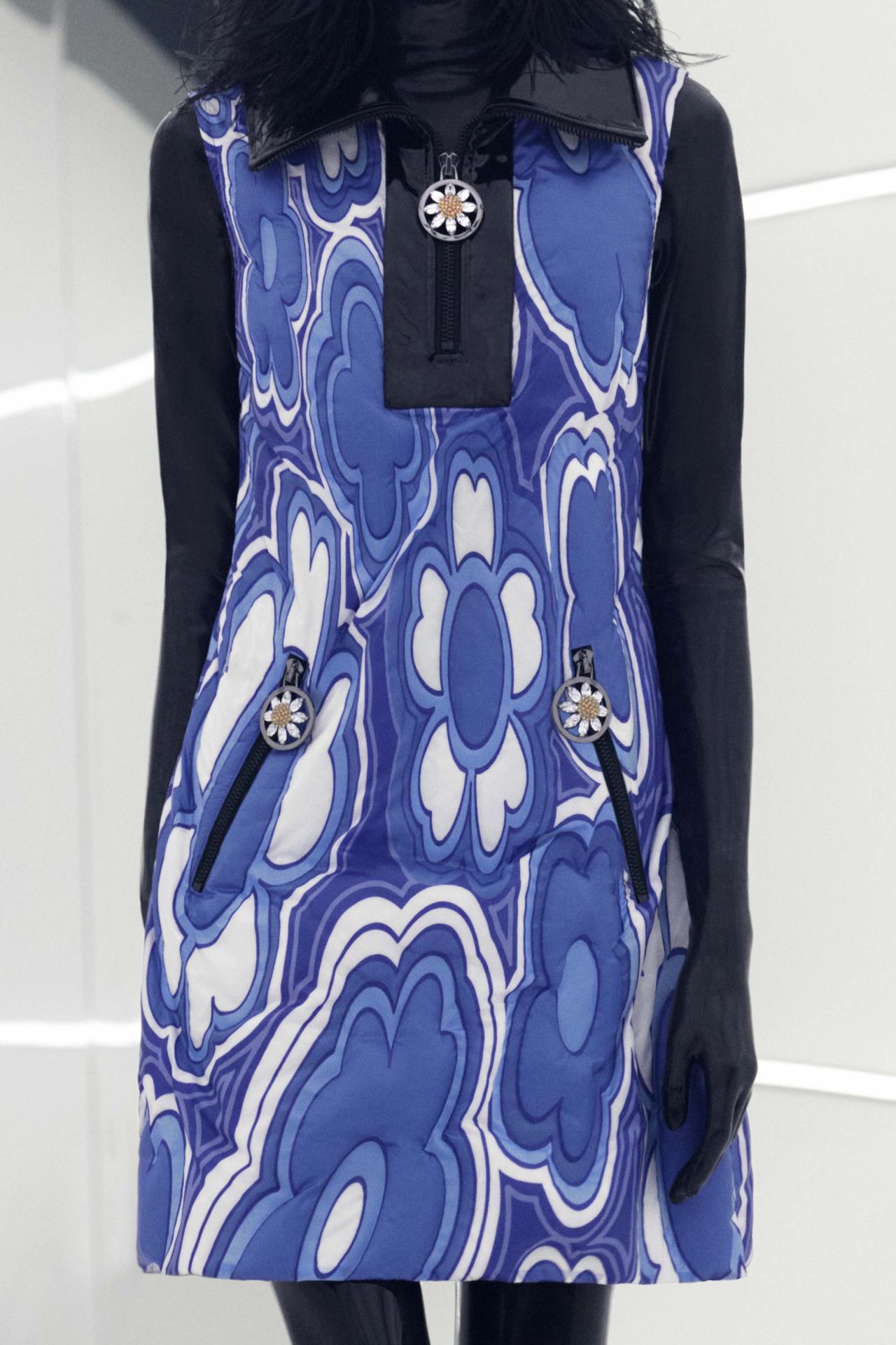 本コレクションでは、ショートでシャープなトラペーズドレスやジェムボタンのコートなど、ノン-ノスタルジックな1960年代のエレガンスへのオマージュを表現した。フラワーからゼブラモチーフ、レインボー、チェックなど、MONCLER (モンクレール) のためだけに考案された 12種類のエクスクルーシヴなプリントがコレクションを彩っている。