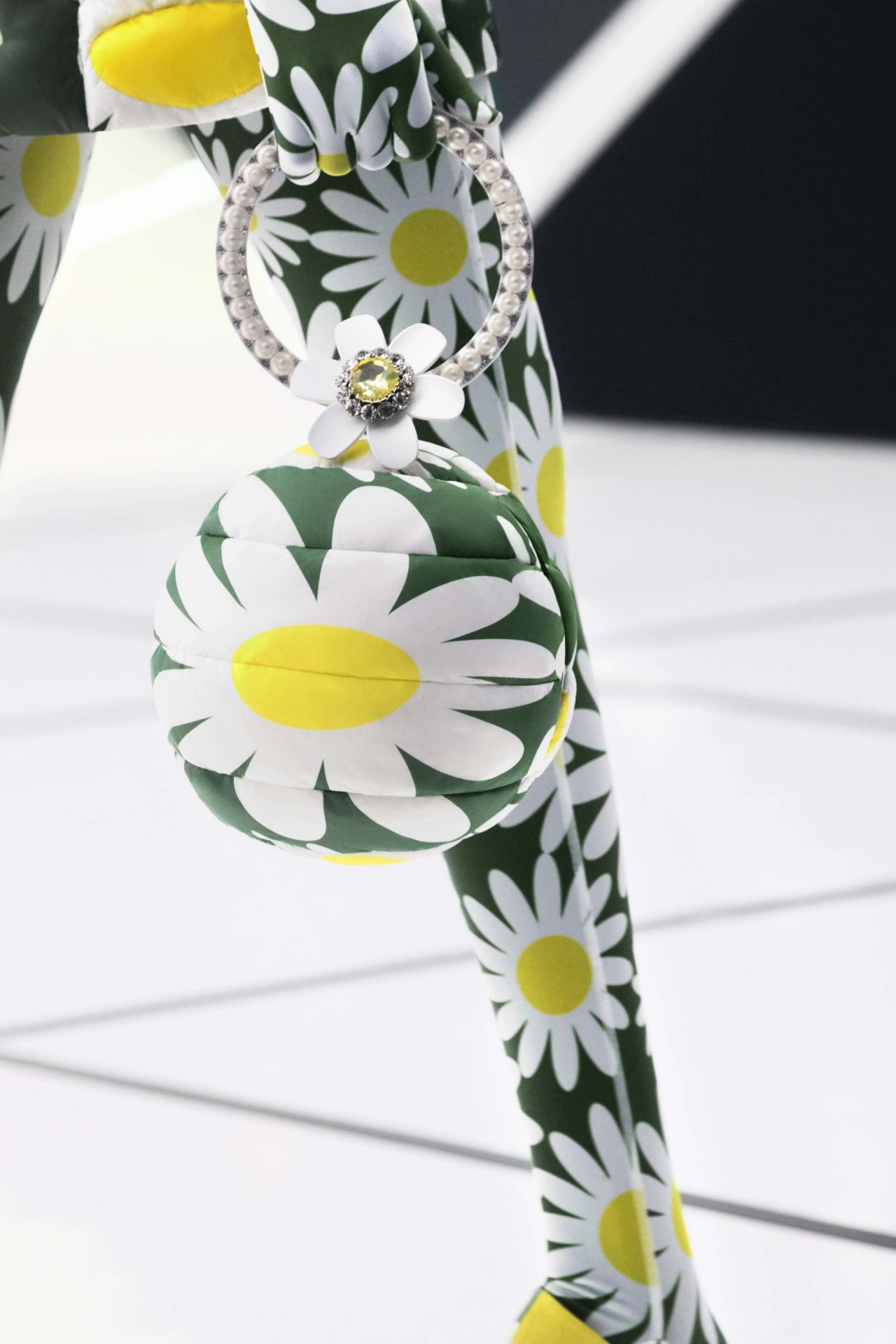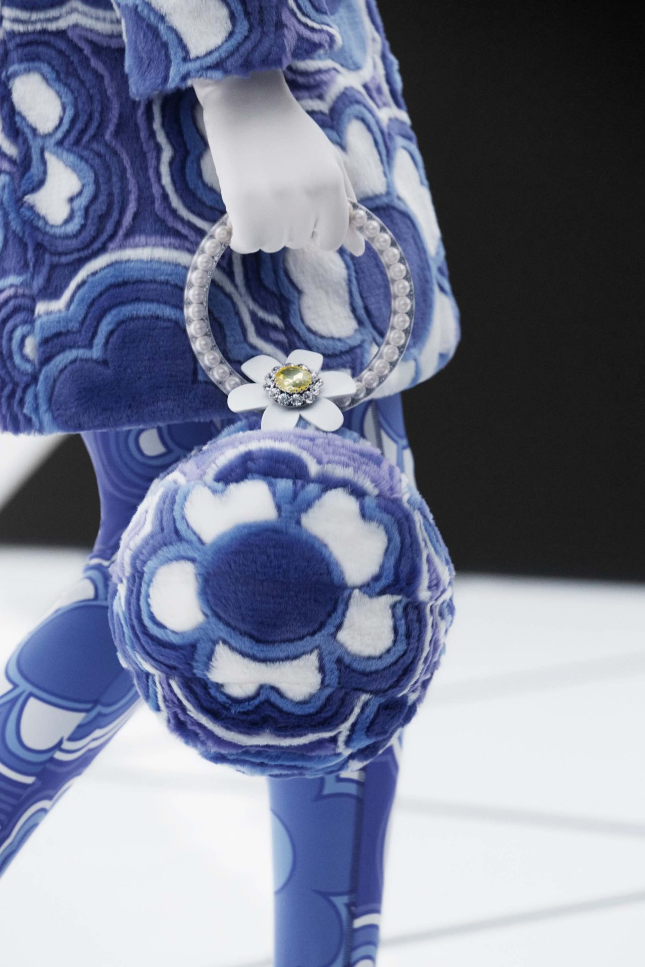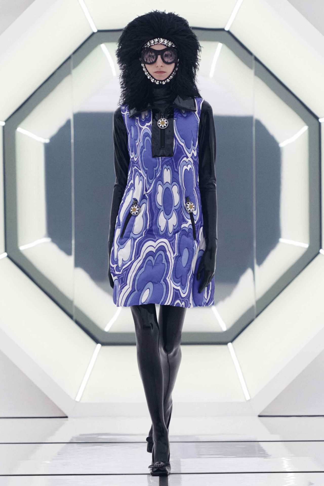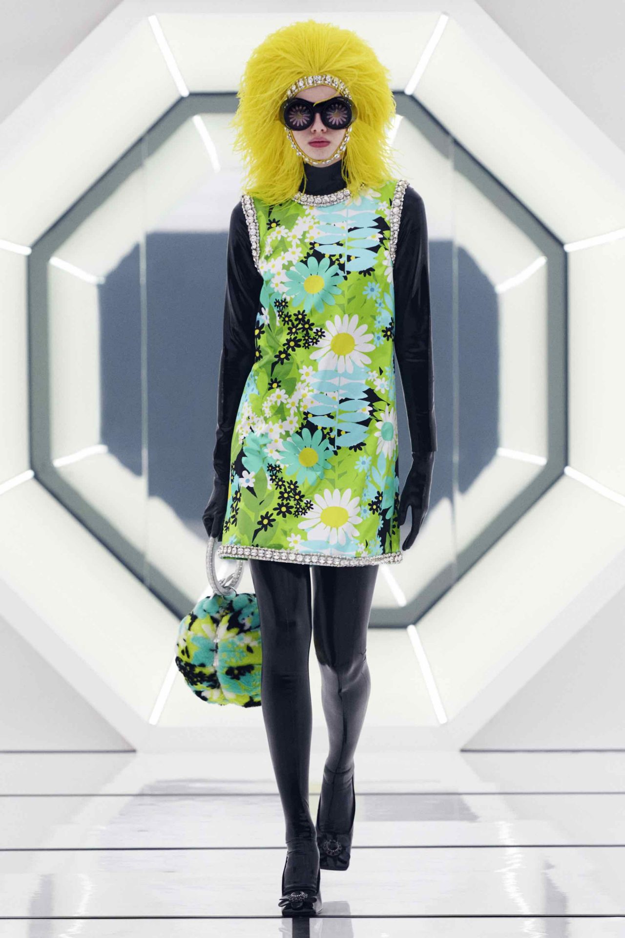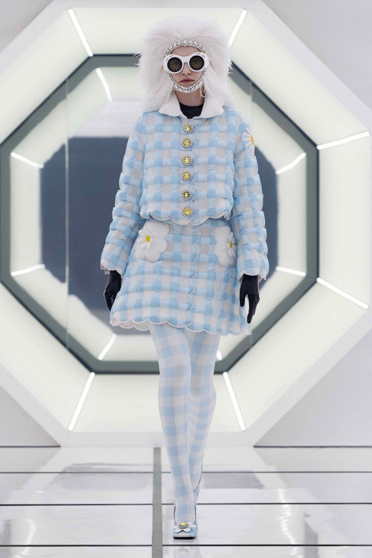 本コレクションでは、ショートでシャープなトラペーズドレスやジェムボタンのコートなど、ノン-ノスタルジックな1960年代のエレガンスへのオマージュを表現した。フラワーからゼブラモチーフ、レインボー、チェックなど、MONCLER (モンクレール) のためだけに考案された 12種類のエクスクルーシヴなプリントがコレクションを彩っている。