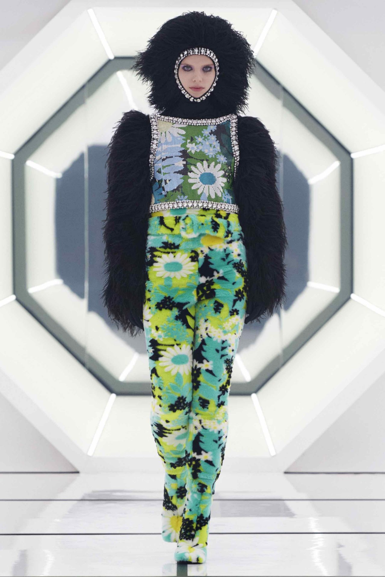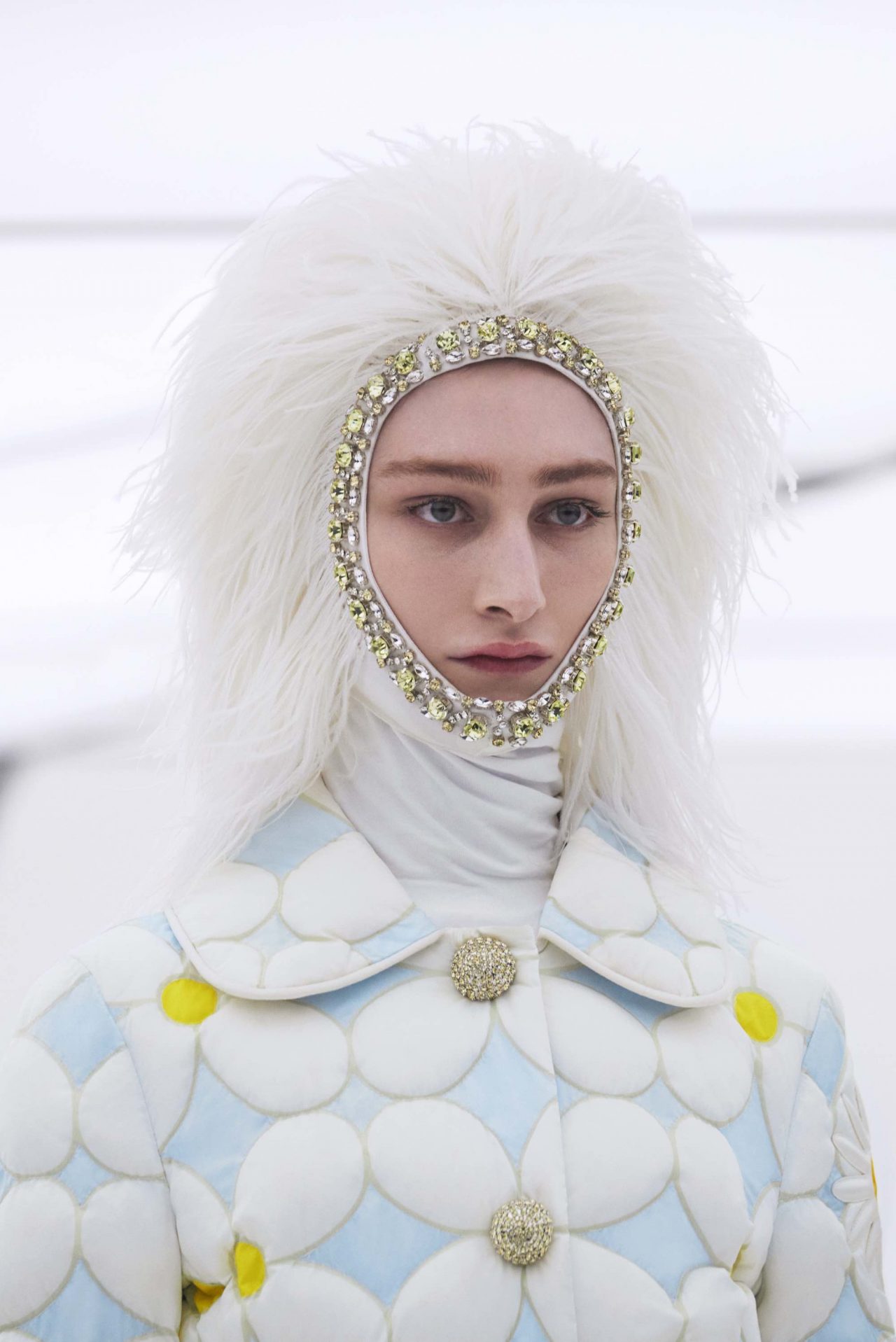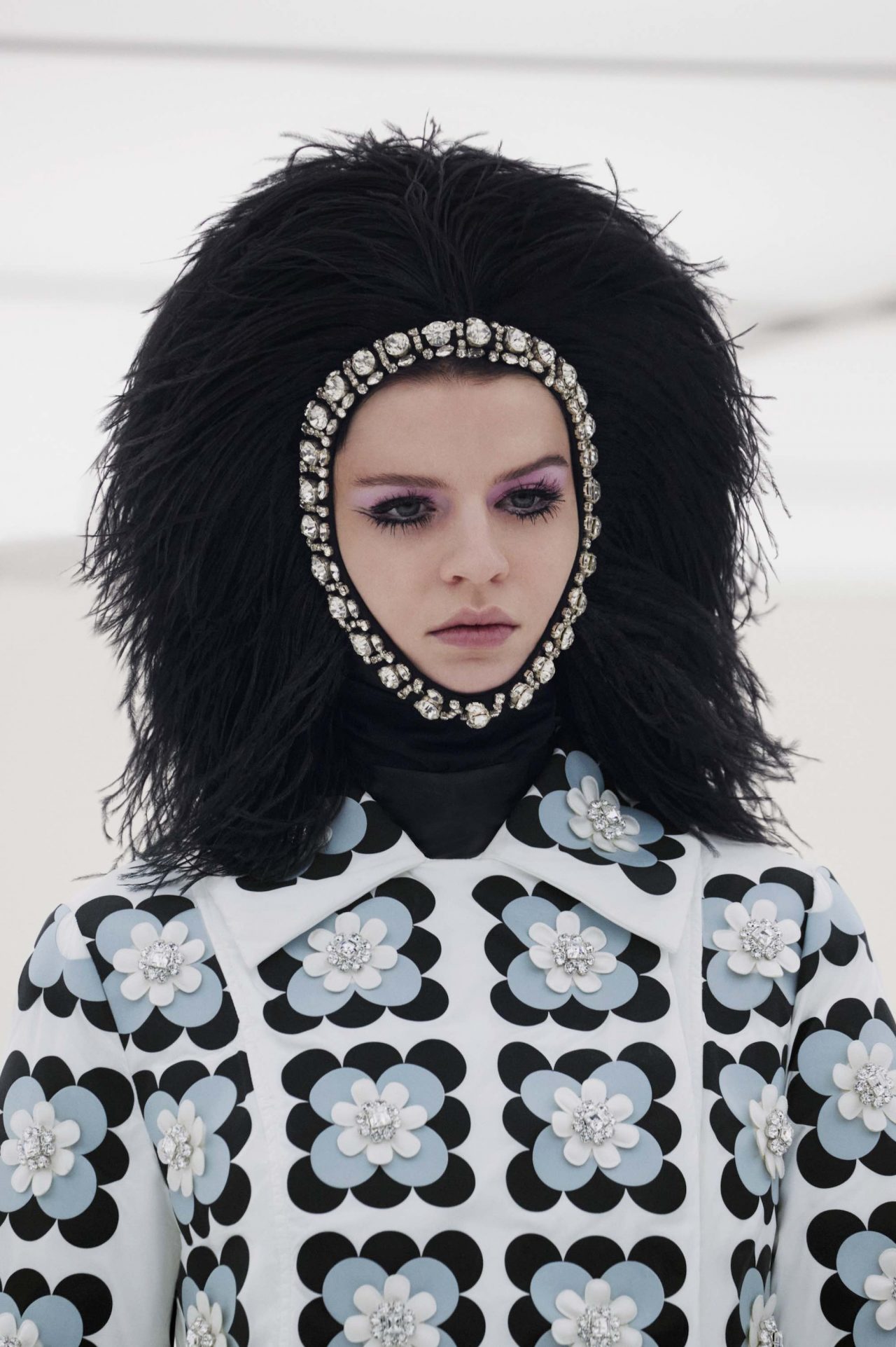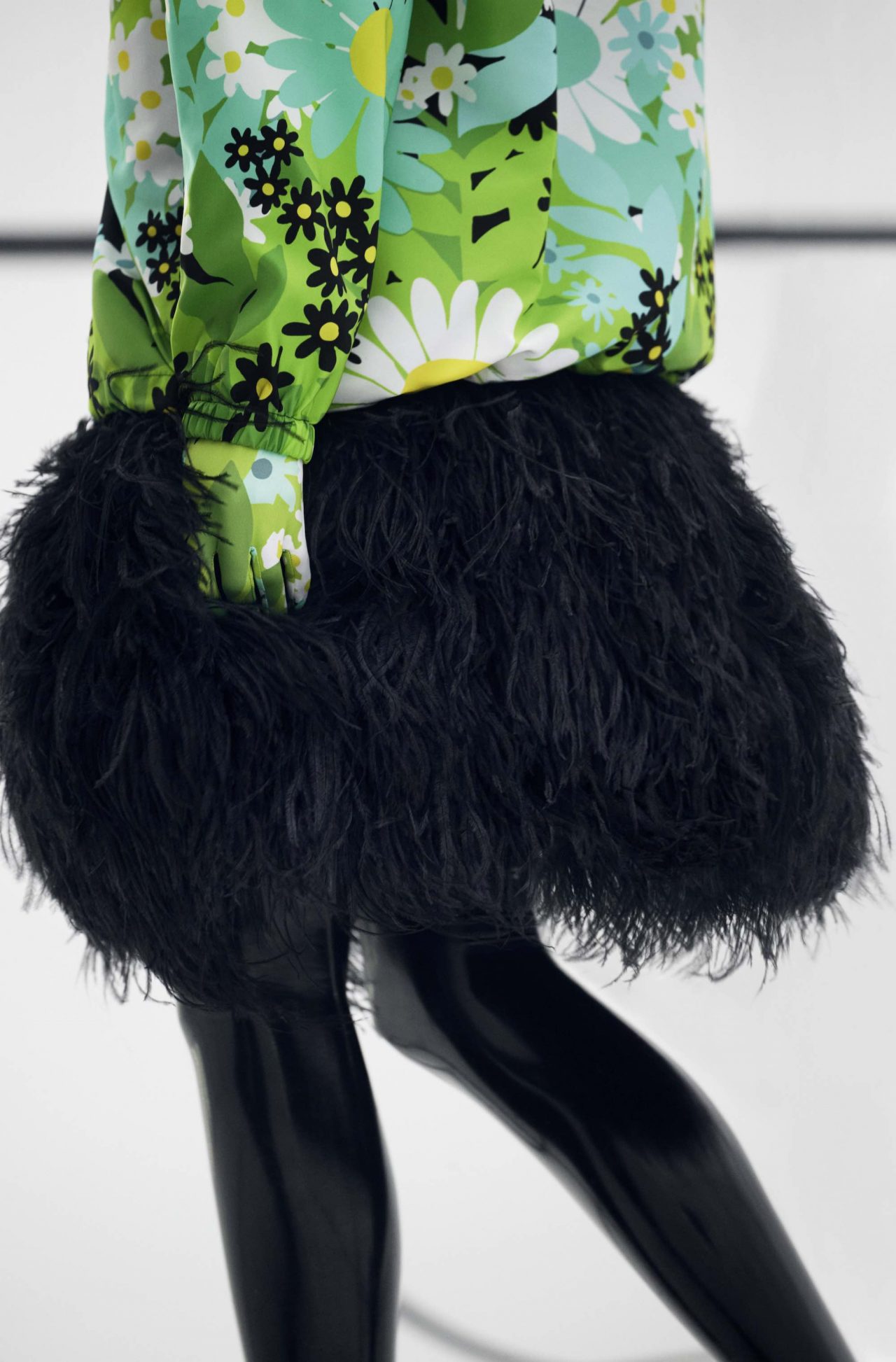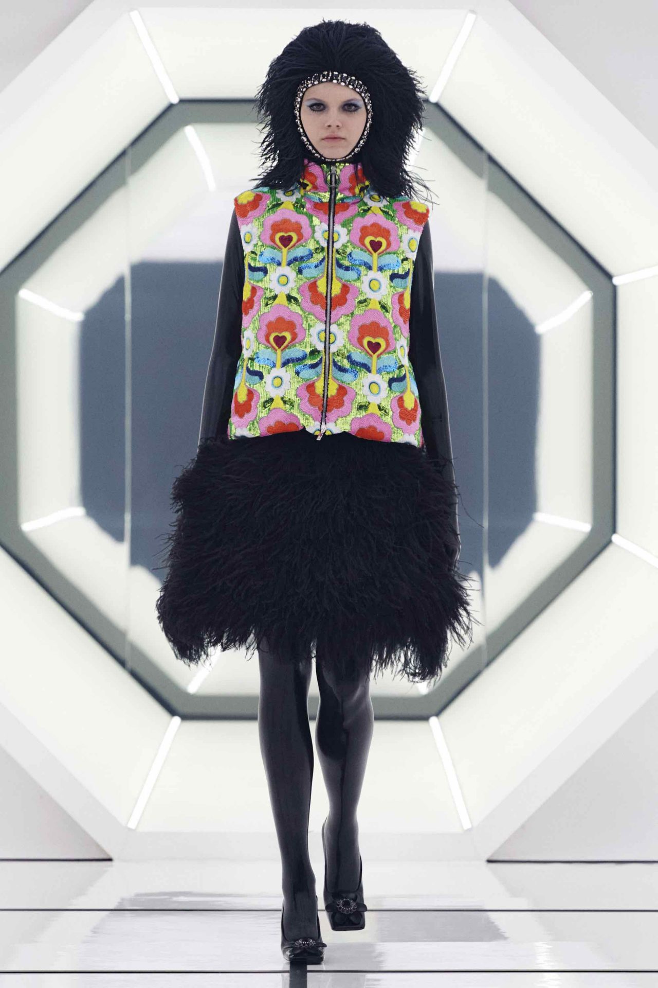 本コレクションでは、ショートでシャープなトラペーズドレスやジェムボタンのコートなど、ノン-ノスタルジックな1960年代のエレガンスへのオマージュを表現した。フラワーからゼブラモチーフ、レインボー、チェックなど、MONCLER (モンクレール) のためだけに考案された 12種類のエクスクルーシヴなプリントがコレクションを彩っている。