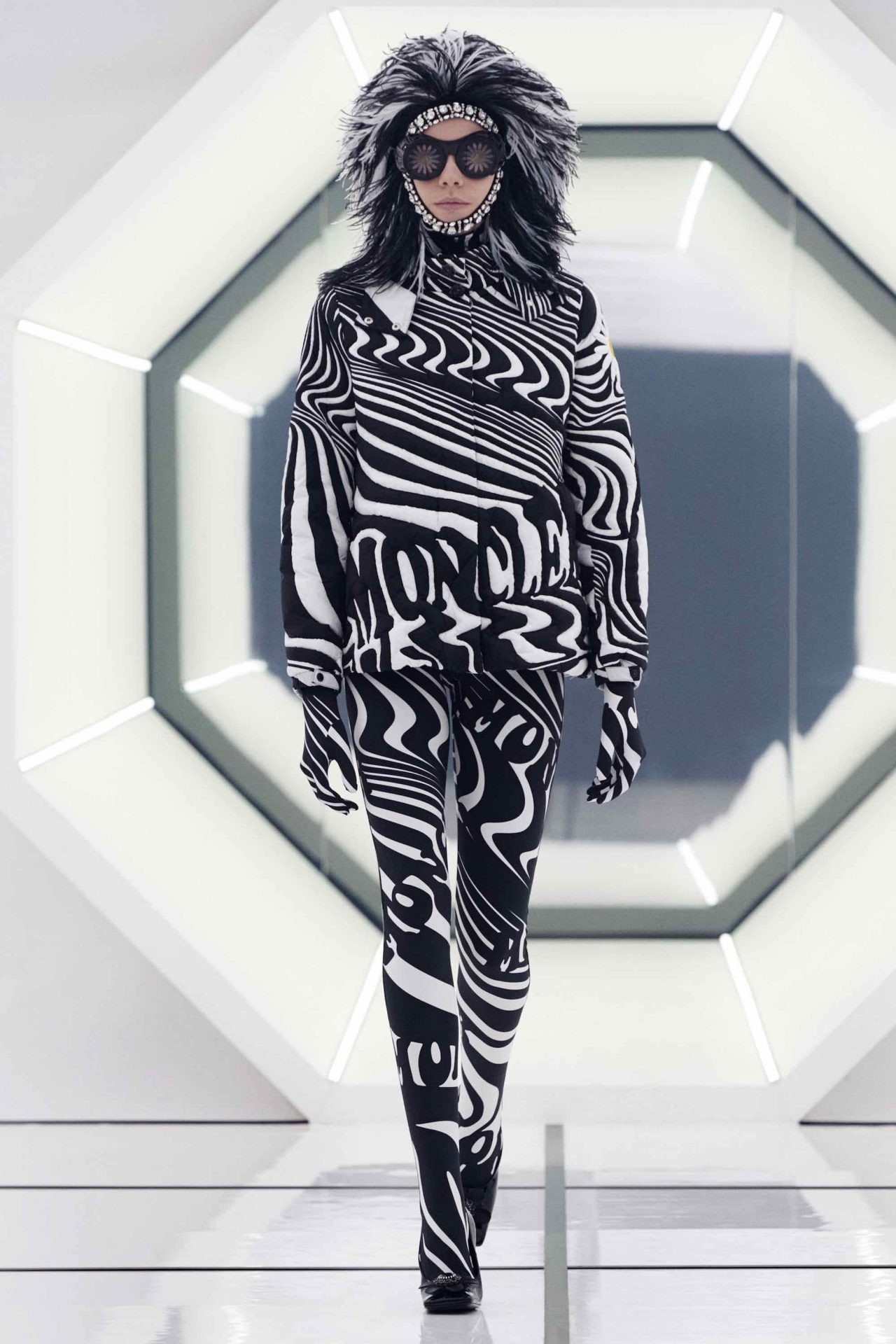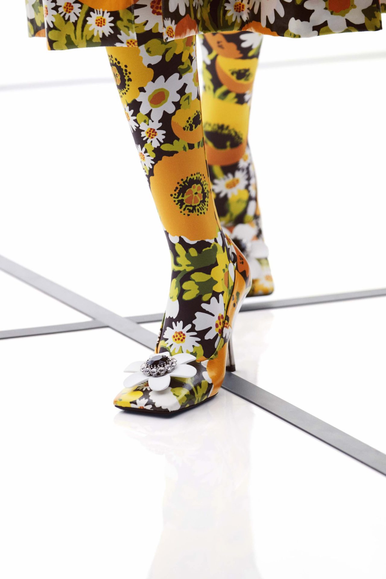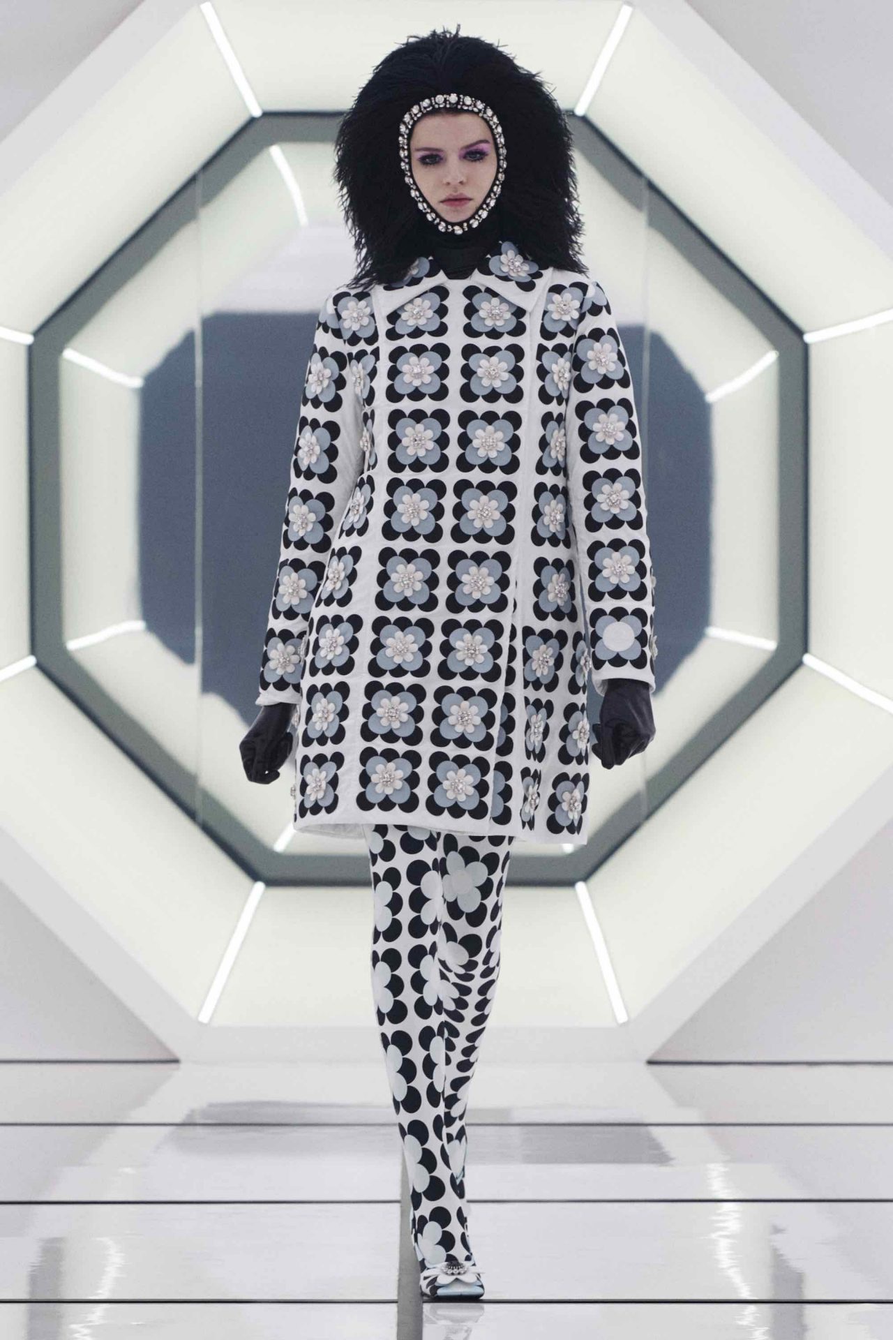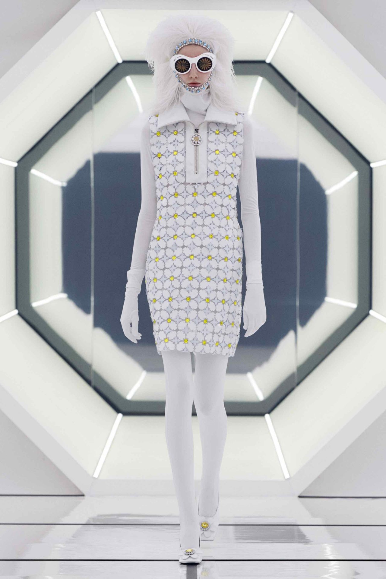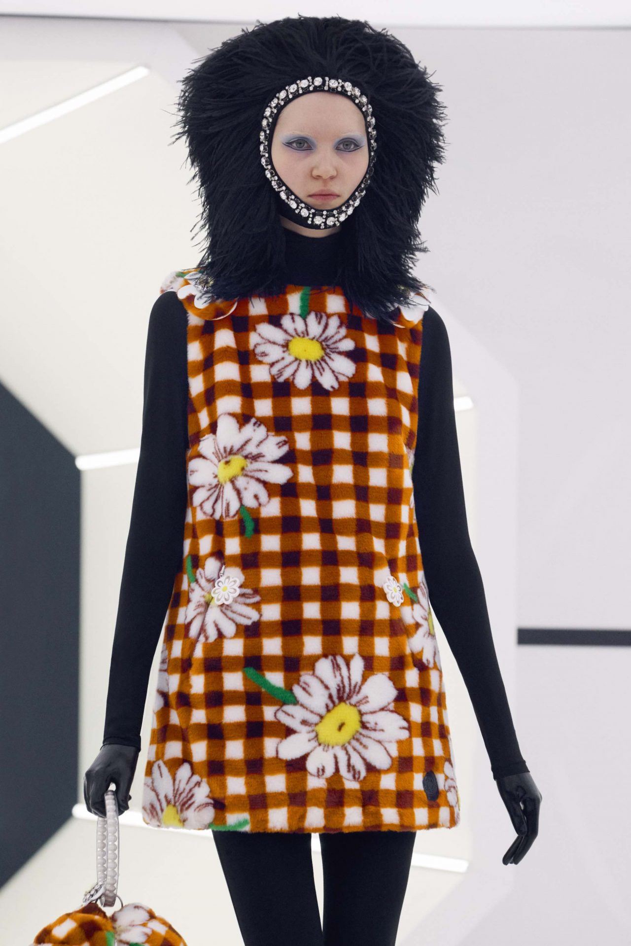 本コレクションでは、ショートでシャープなトラペーズドレスやジェムボタンのコートなど、ノン-ノスタルジックな1960年代のエレガンスへのオマージュを表現した。フラワーからゼブラモチーフ、レインボー、チェックなど、MONCLER (モンクレール) のためだけに考案された 12種類のエクスクルーシヴなプリントがコレクションを彩っている。