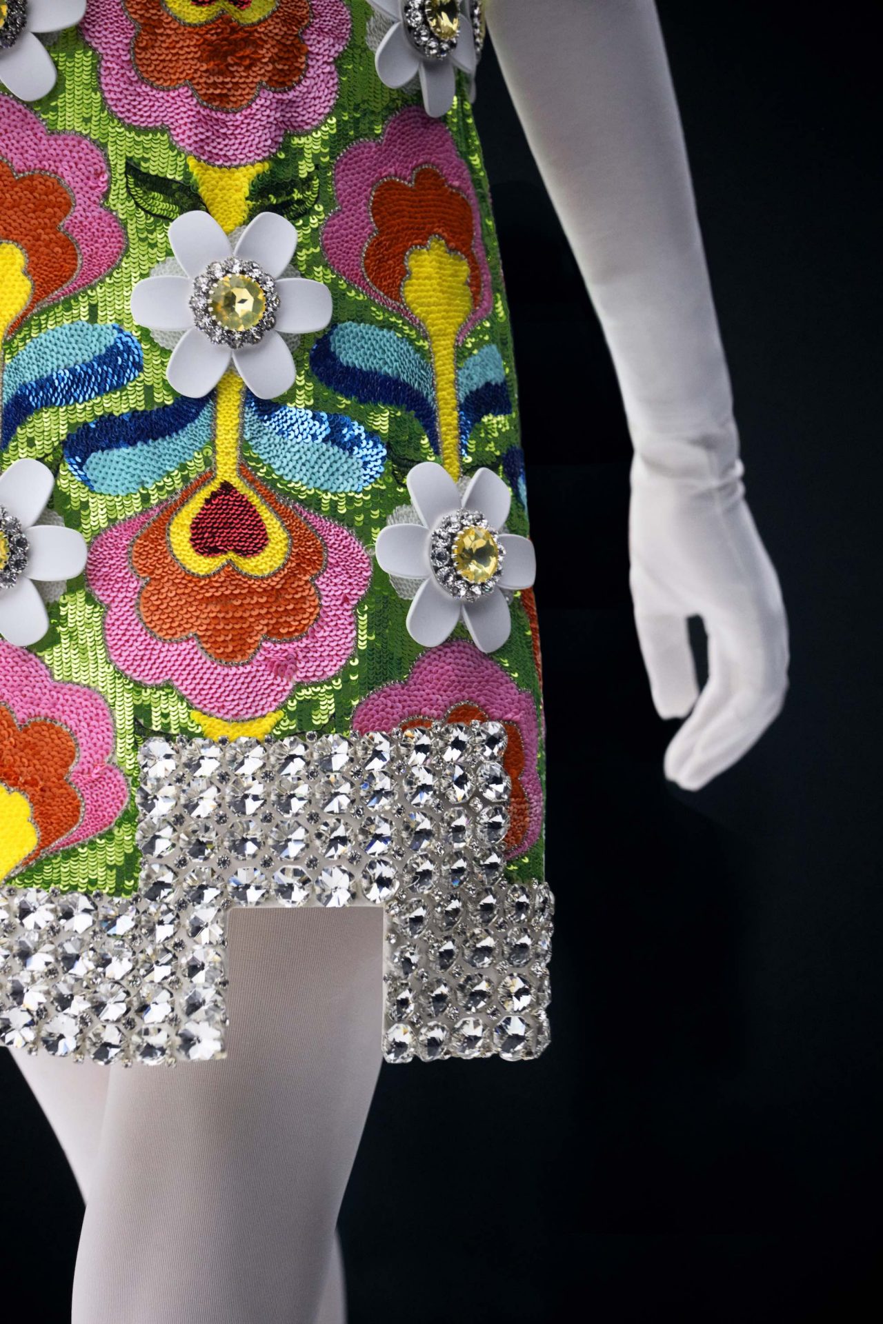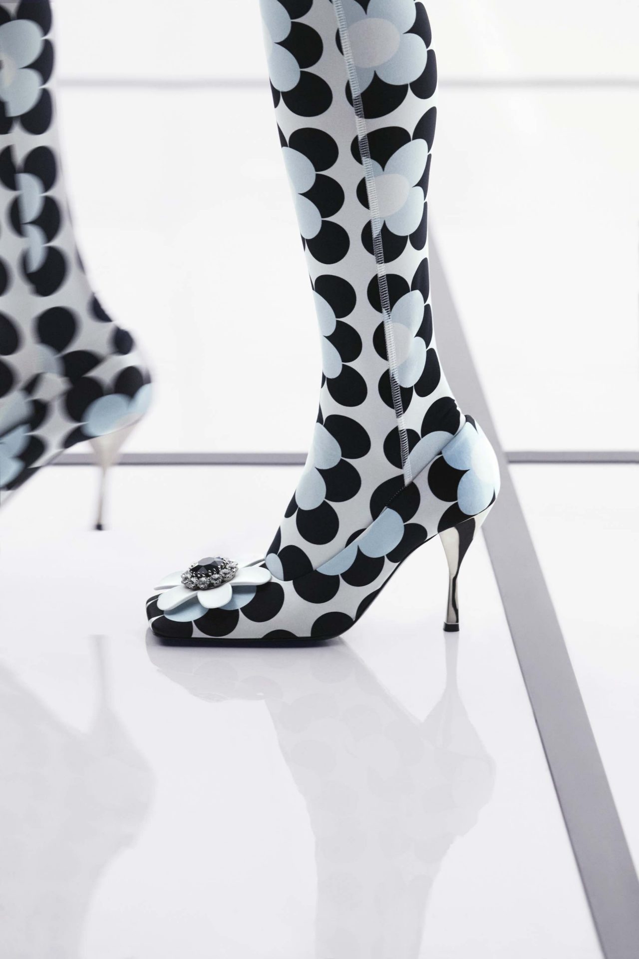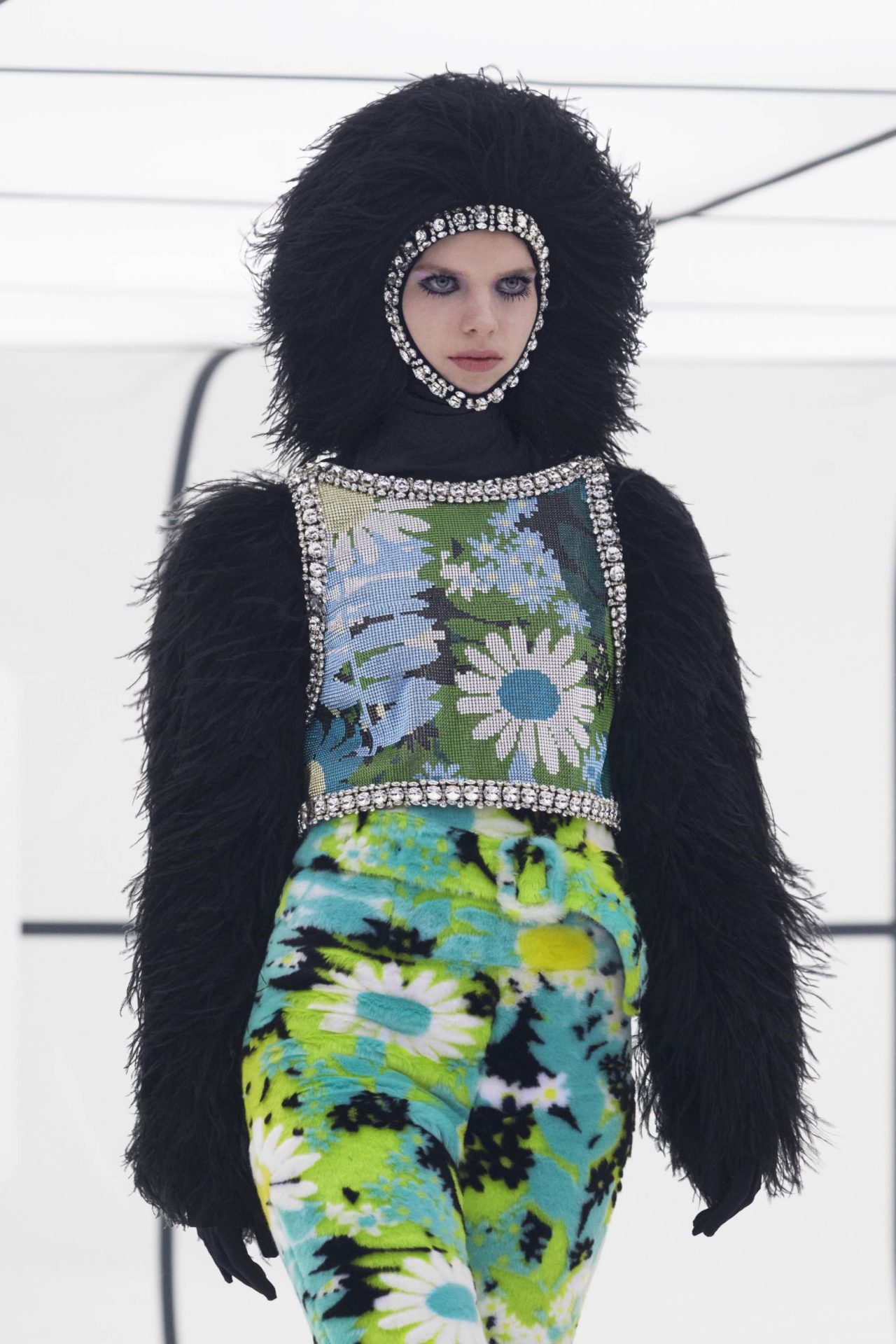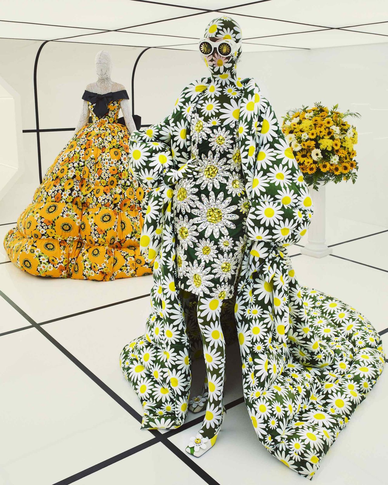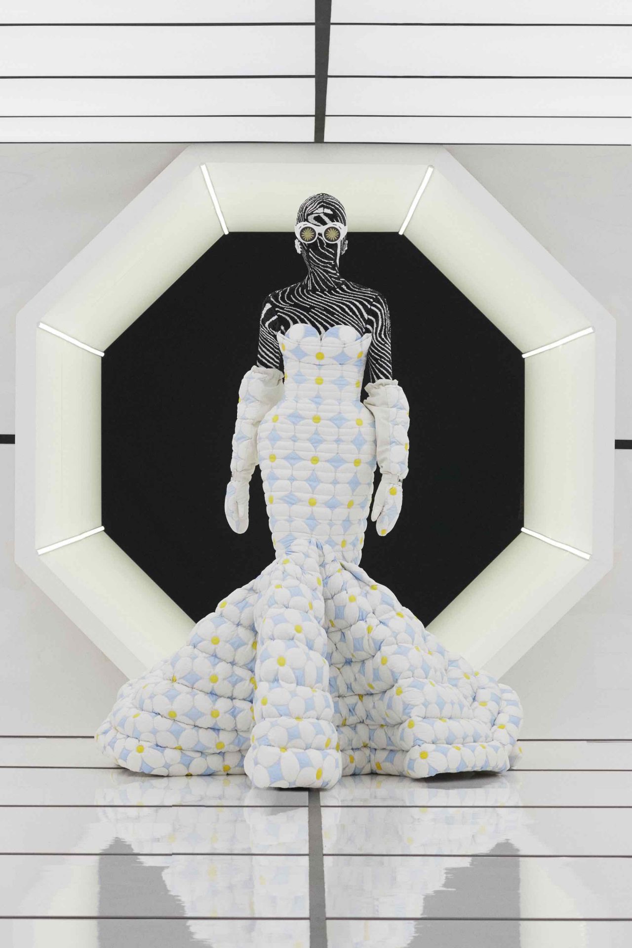 本コレクションでは、ショートでシャープなトラペーズドレスやジェムボタンのコートなど、ノン-ノスタルジックな1960年代のエレガンスへのオマージュを表現した。フラワーからゼブラモチーフ、レインボー、チェックなど、MONCLER (モンクレール) のためだけに考案された 12種類のエクスクルーシヴなプリントがコレクションを彩っている。