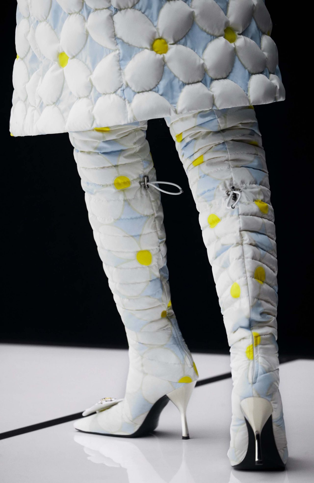 素材には、ナイロンラケやレジンコーティングを施したギャバジン、テクニカルナイロンツイルなどを用いて、MONCLER が誇る最新技術をふんだんに活用。また、フェザーを用いたバラクラバやダウン入りのハイヒールブーツなどユニークなアクセサリーもラインナップしている。