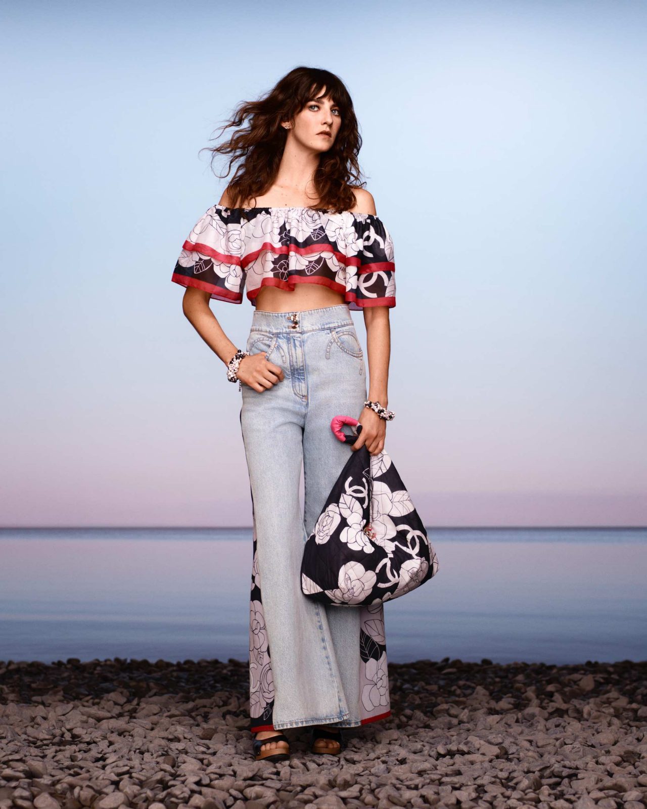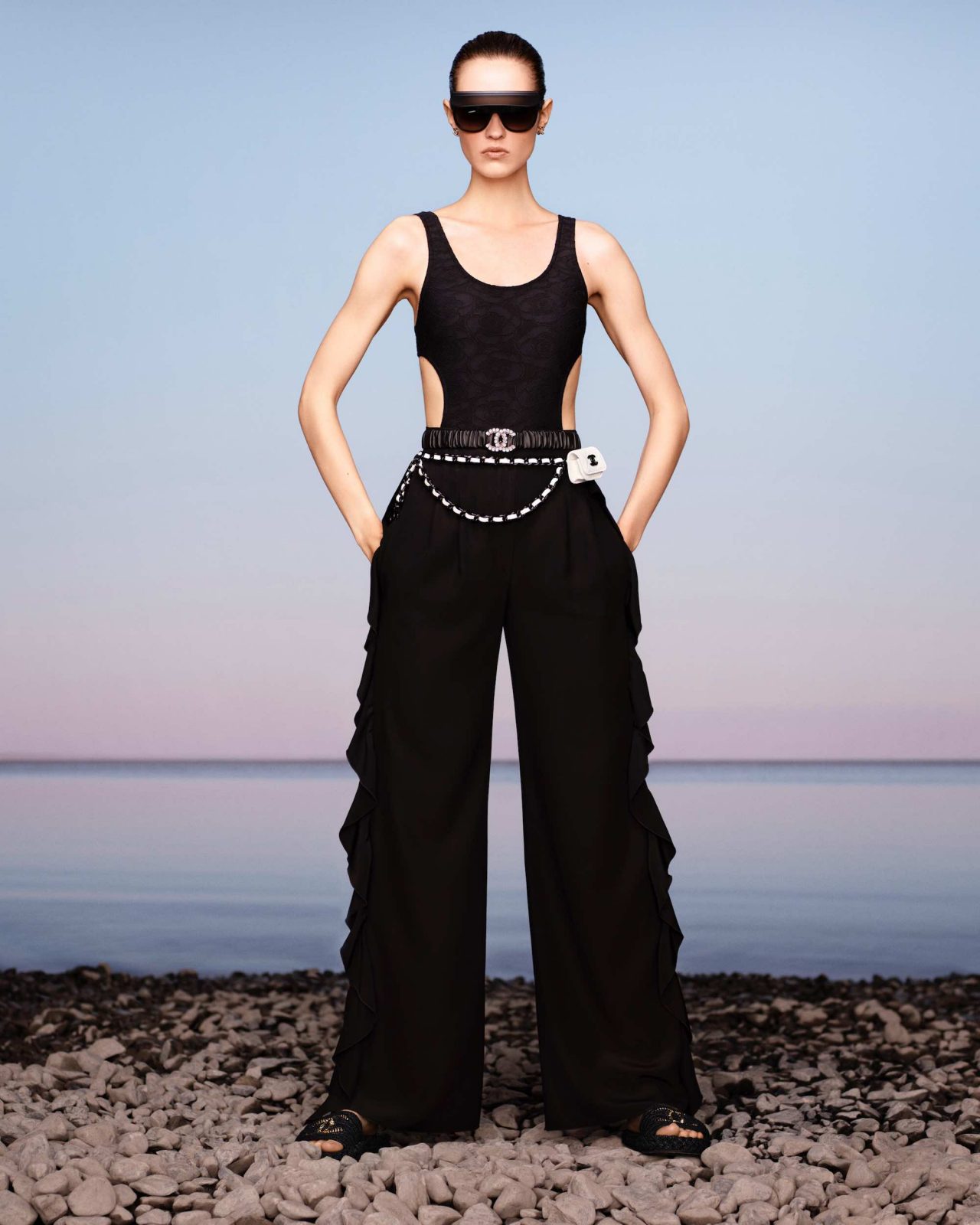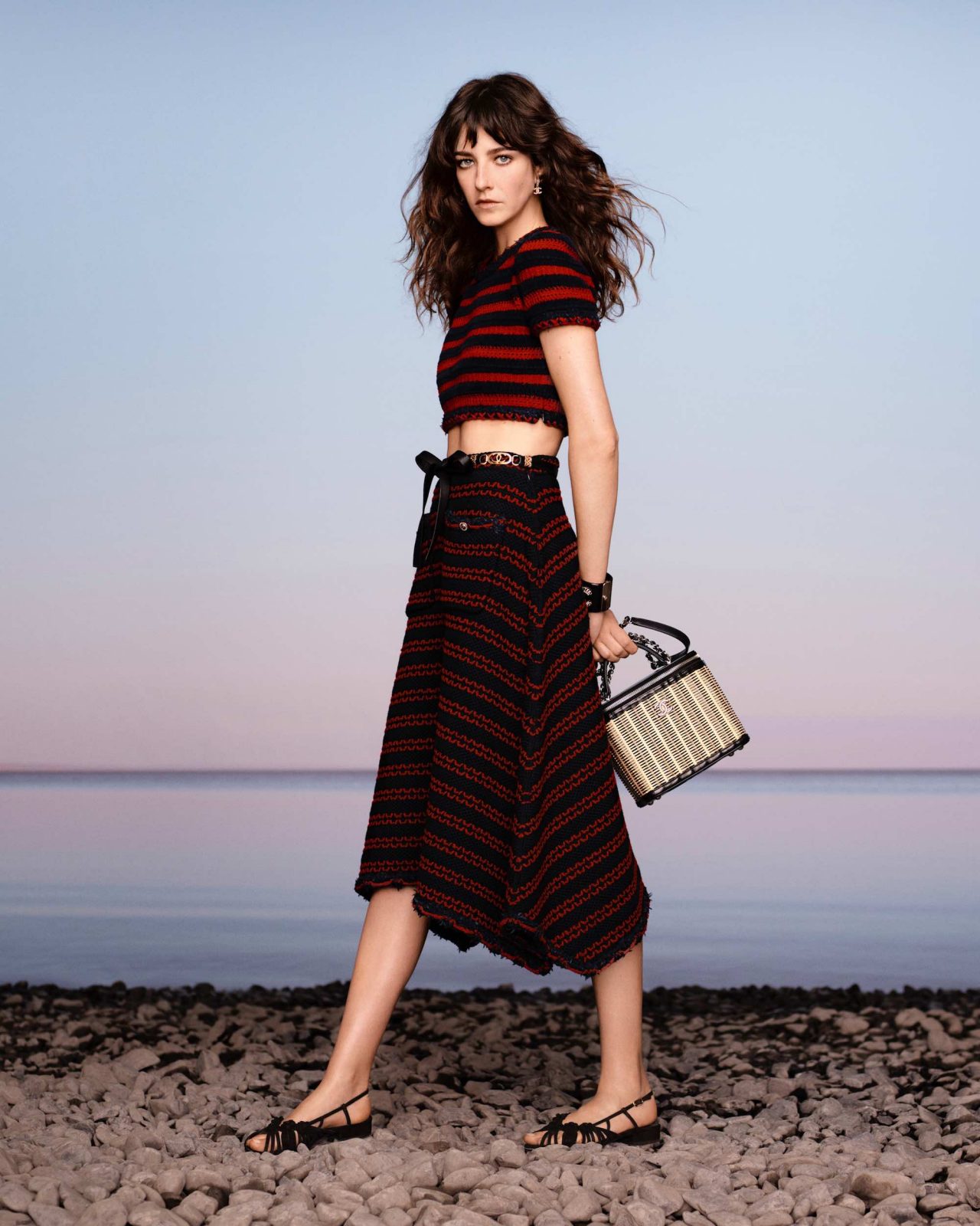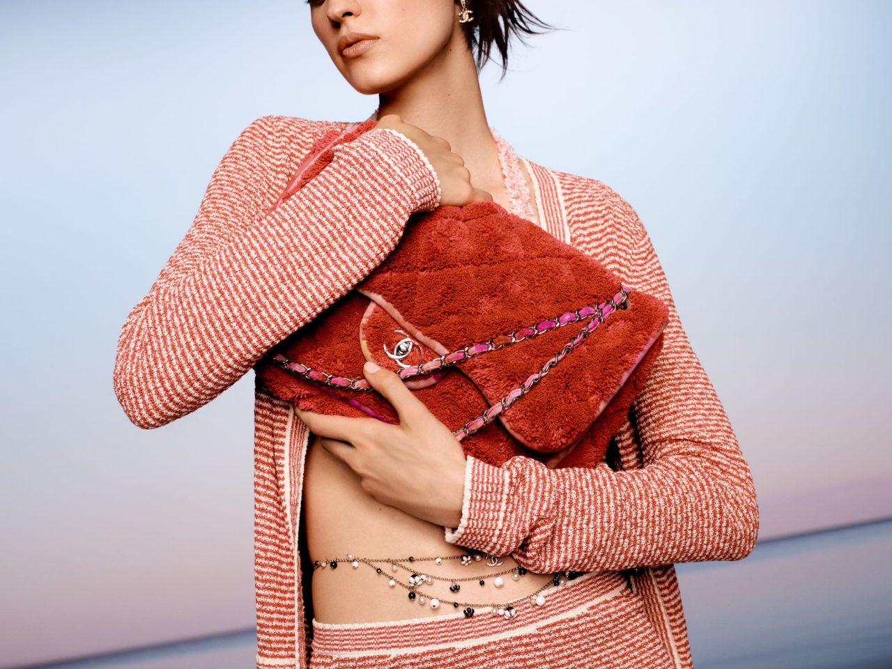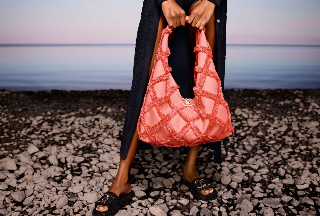 注目したいのが、ウエストでレイヤードされたベルト使いや存在感を放つネックレス、リゾートスタイルにぴったりのバングルといったアクセサリー。Virginie Viard らしい遊び心ある自由な感性が光る。また、スパンコールやビジューをまとったCHANEL のアイコニックなハンドバッグをはじめ、リゾートにぴったりなストロー素材や巾着型、ミニサイズなど様々なバッグが展開されている点も見逃せない。