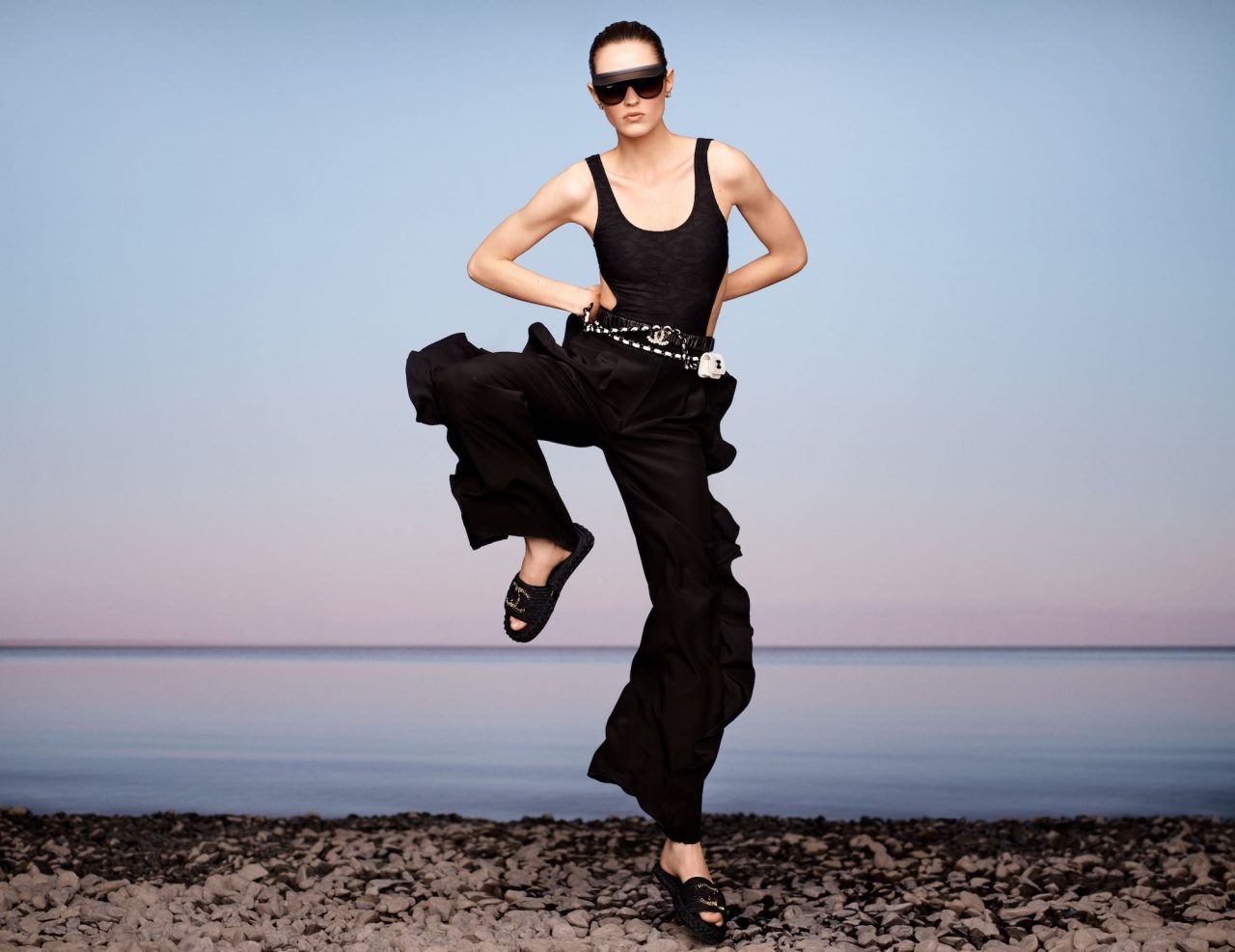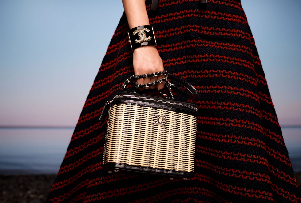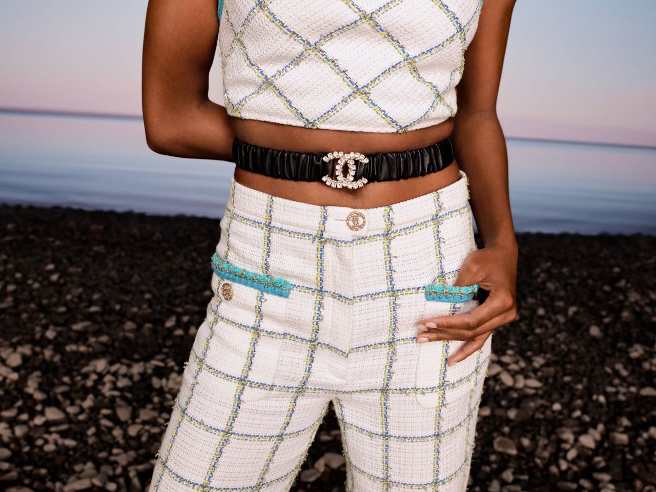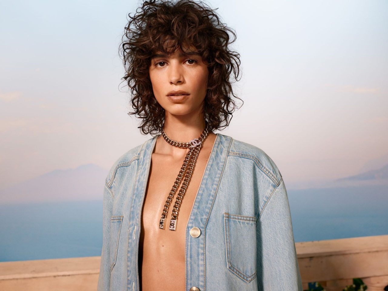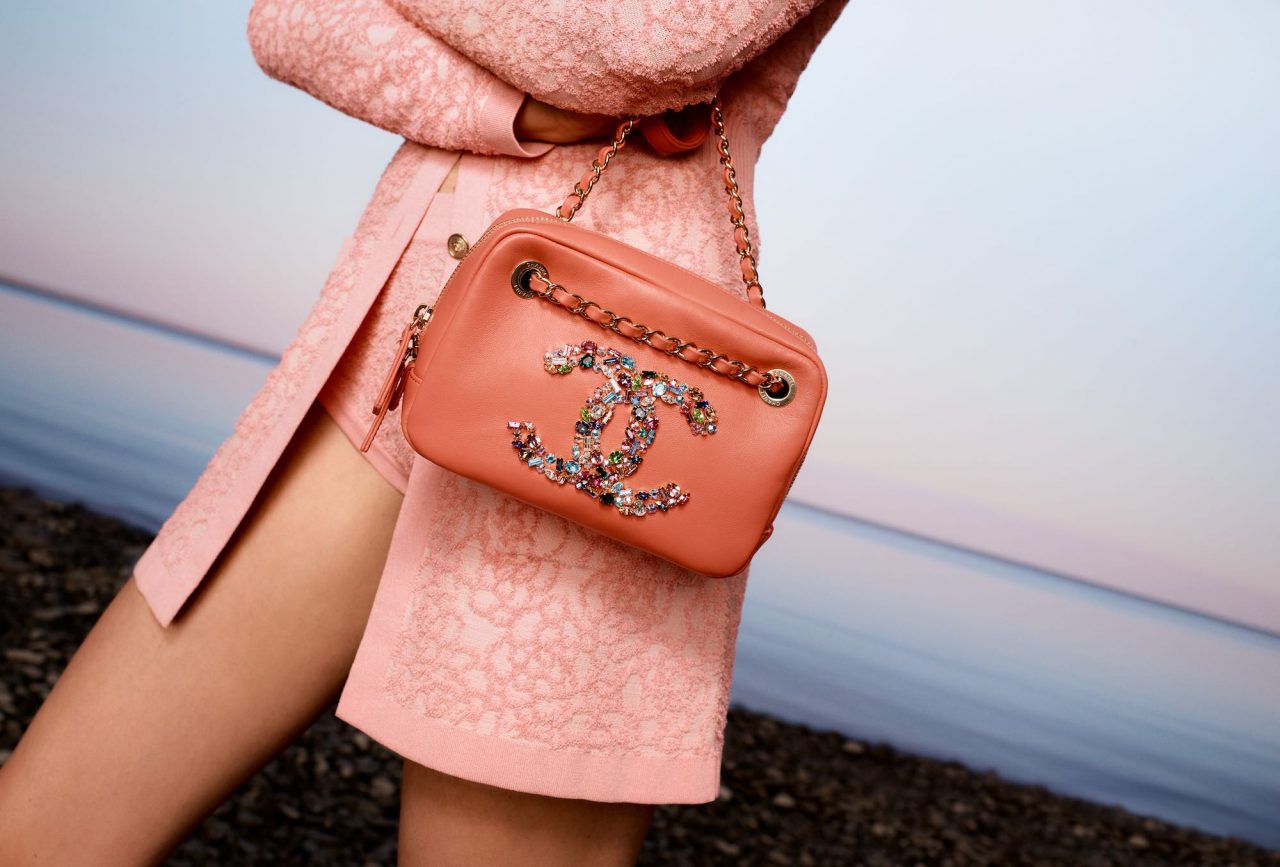 注目したいのが、ウエストでレイヤードされたベルト使いや存在感を放つネックレス、リゾートスタイルにぴったりのバングルといったアクセサリー。Virginie Viard らしい遊び心ある自由な感性が光る。また、スパンコールやビジューをまとったCHANEL のアイコニックなハンドバッグをはじめ、リゾートにぴったりなストロー素材や巾着型、ミニサイズなど様々なバッグが展開されている点も見逃せない。