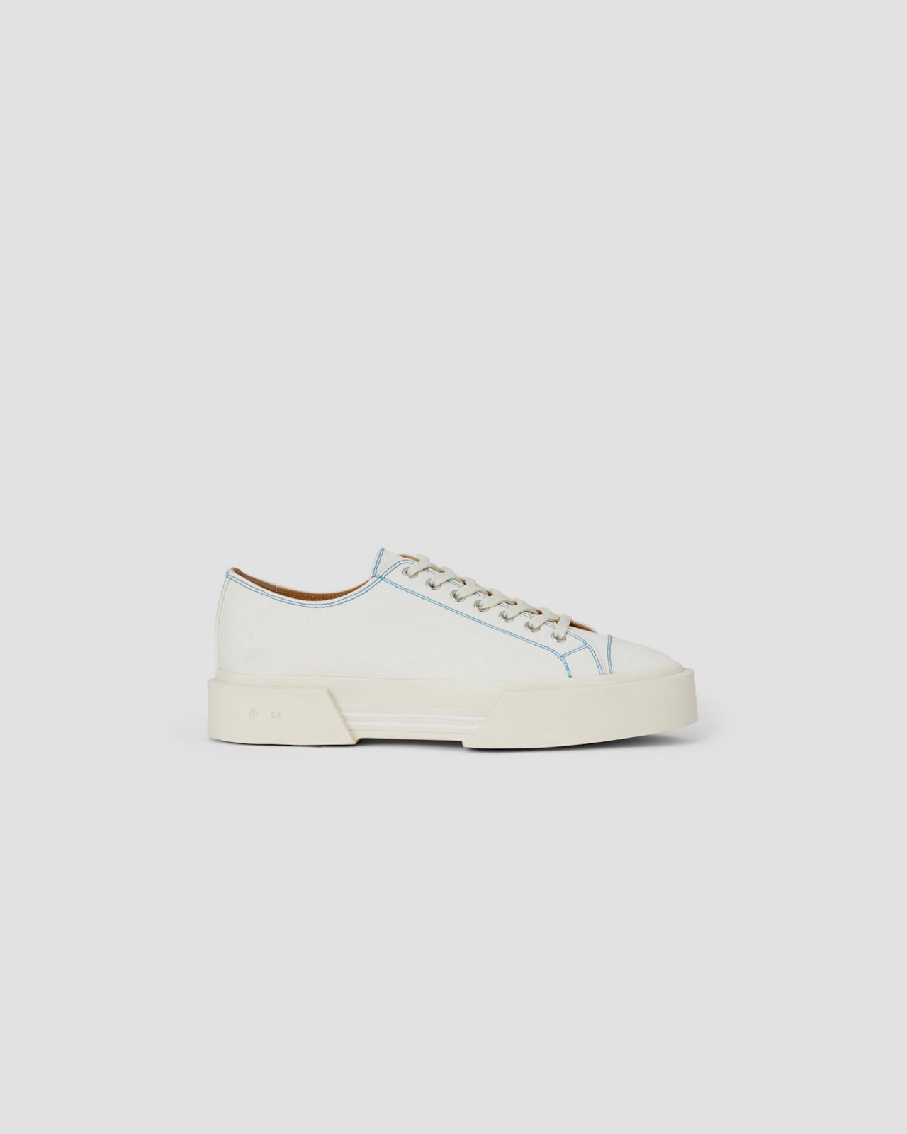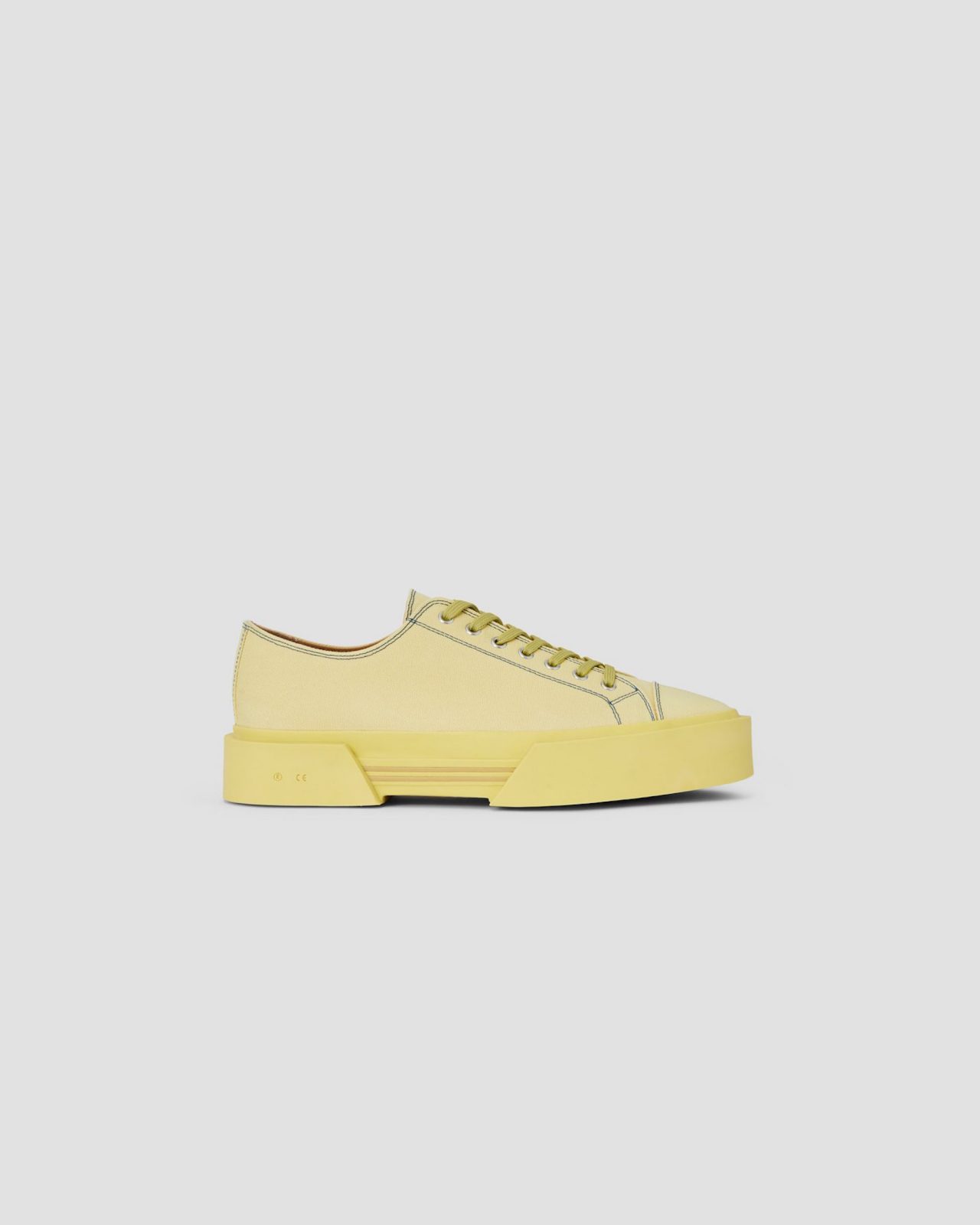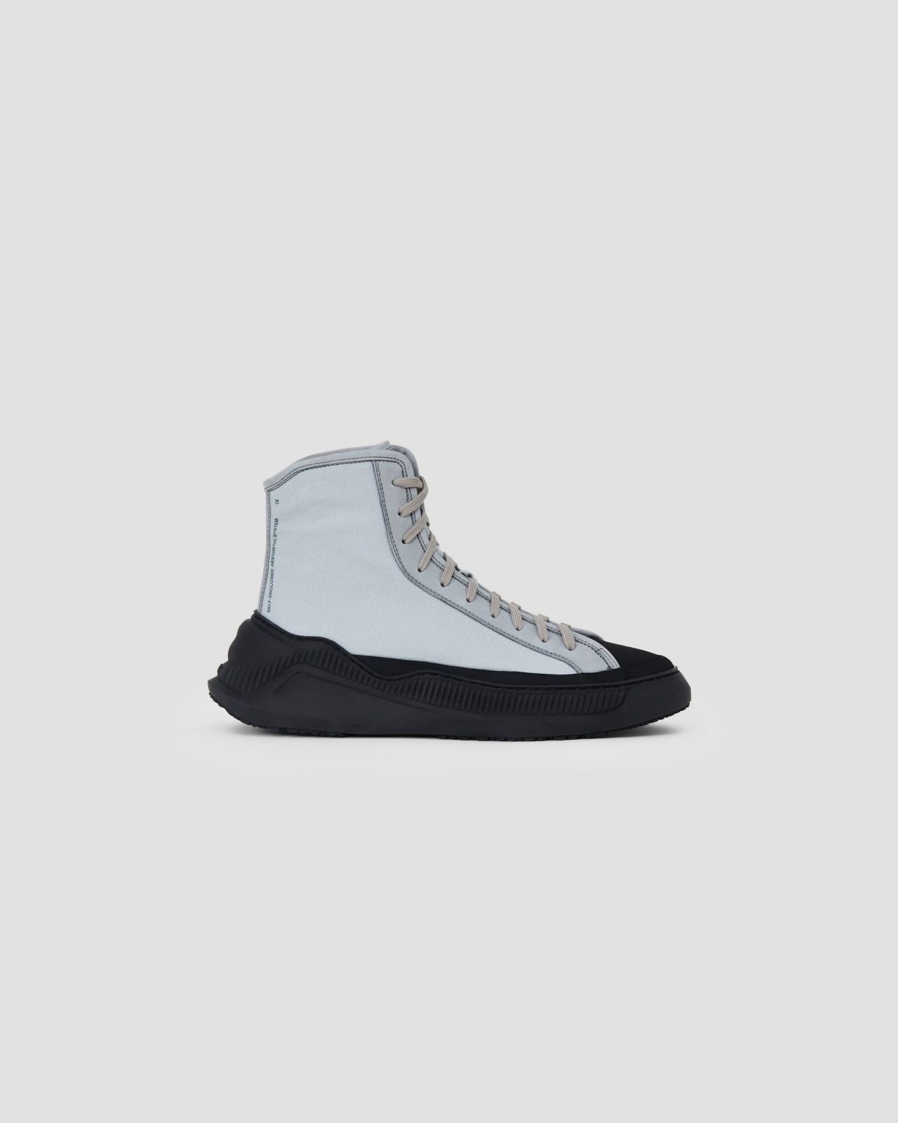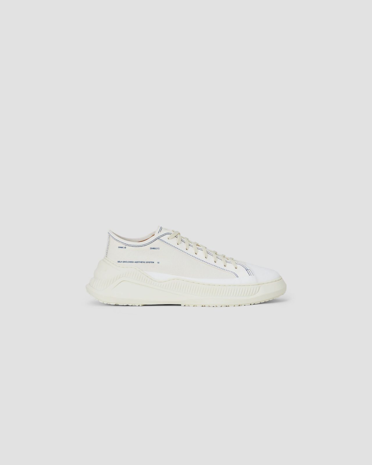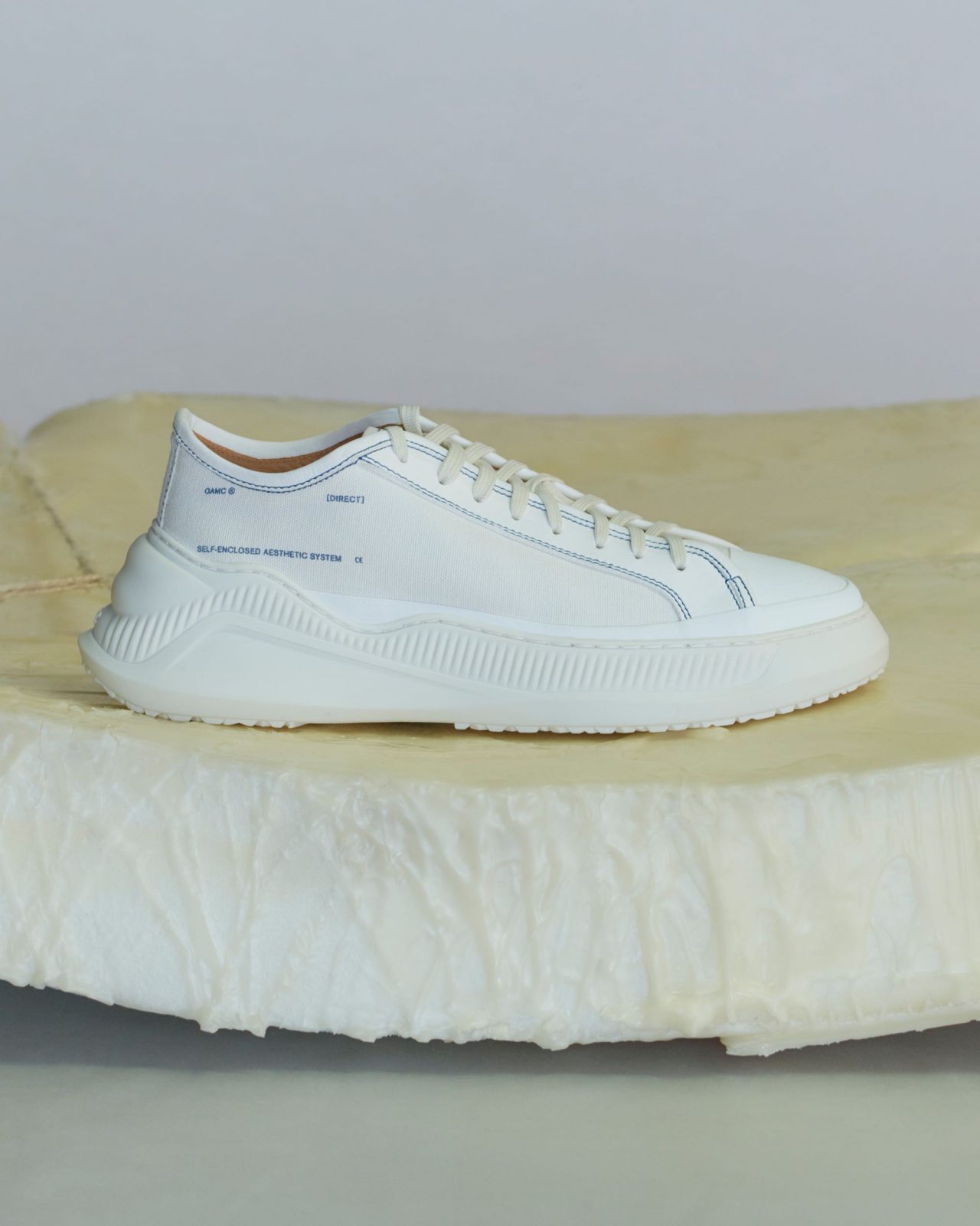 キャンバススニーカーをモダンに再解釈した「Inflate Plimsoll (インフレート・プリムソル)」は、オリジナルのバルカナイズドソールが特徴的な一足。カラーバリエーションは、オフホワイト、ブラック、ペールイエロー、ダークグレー、OAMC 公式ウェブサイト限定色であるミストの5色。コントラストカラーのステッチングが施されたプレミアムキャンバスのアッパーを合わせることで、絶妙なバランスを実現している。